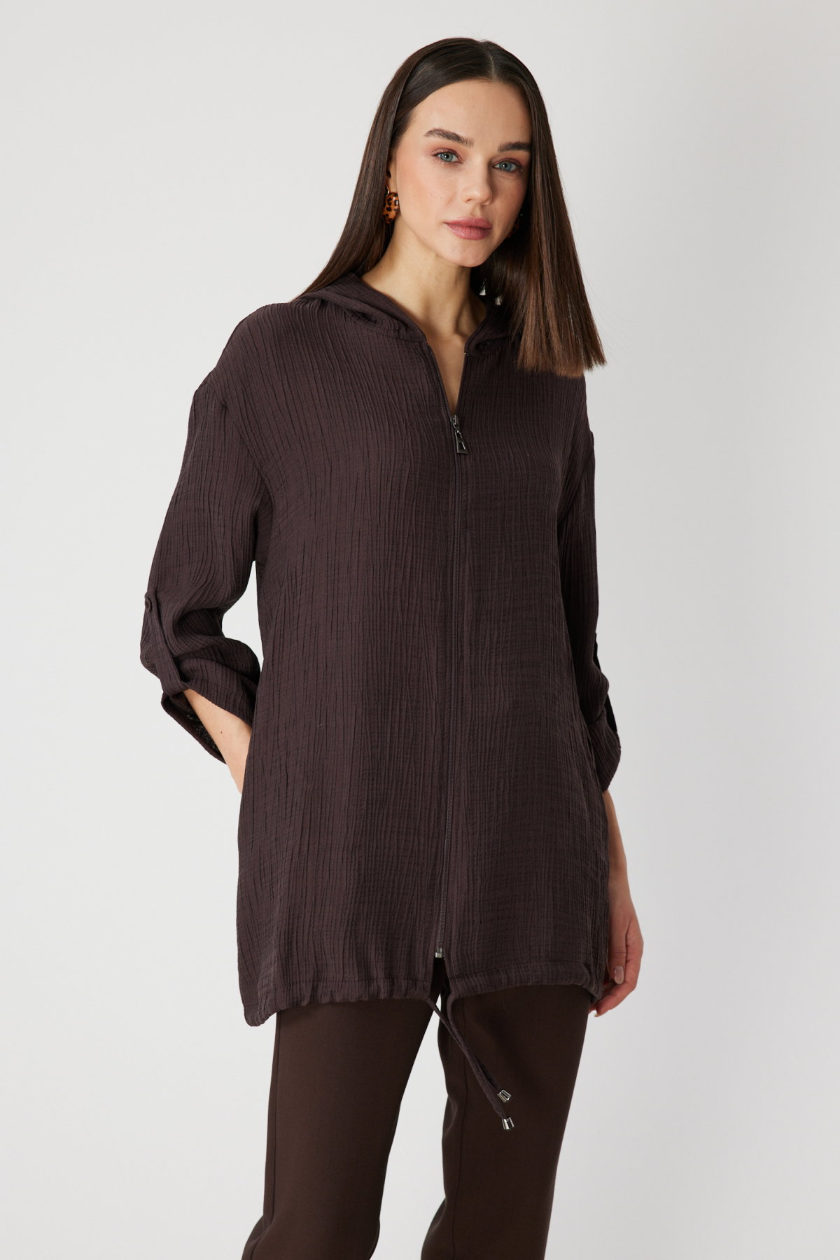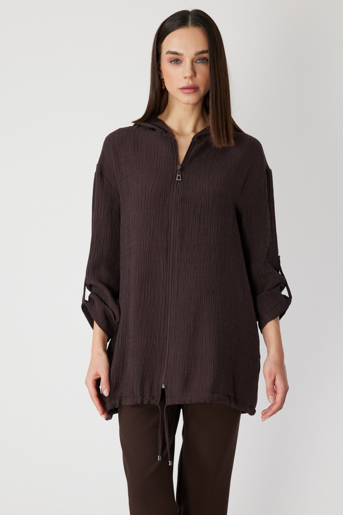 Detay: Polyester kumaştan üretilen bu hırka, astarsız yapısıyla hafif ve rahat bir kullanım sunar. Kapüşonlu yaka detayı sportif bir görünüm kazandırırken uzun kol tasarımı serin havalarda konfor sağlar. Fermuarlı kapama şekli pratiklik sağlarken yan cepler işlevsellik ve modern bir şıklık katar. Günlük kombinlerden hafta sonu gezilerine kadar stilinizi tamamlayacak dinamik ve kullanışlı bir parça olarak öne çıkar;