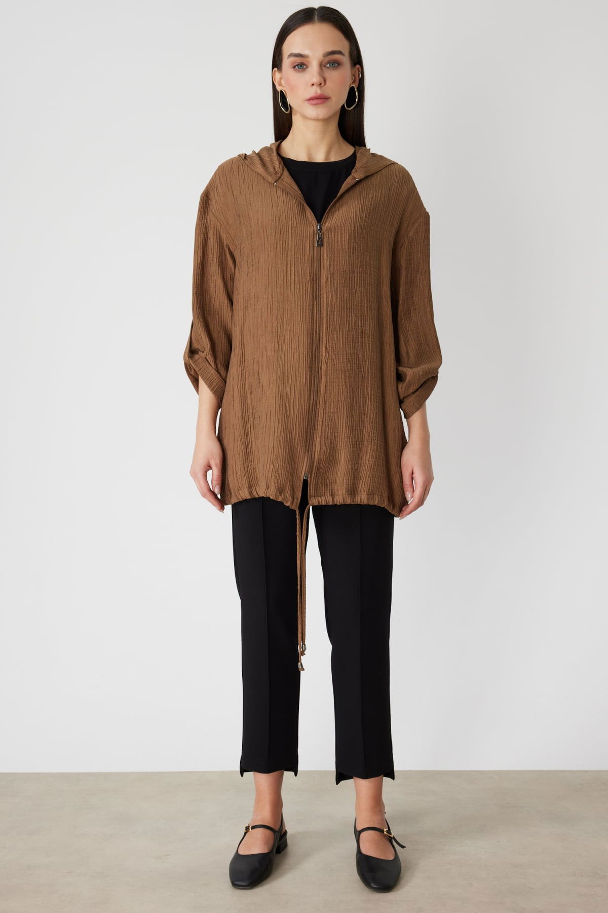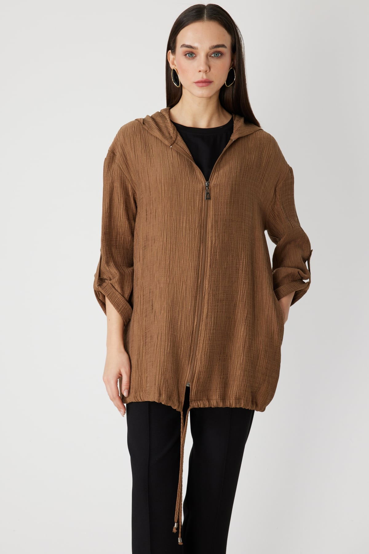 Detay: Polyester kumaştan üretilen bu hırka, astarsız yapısıyla hafif ve rahat bir kullanım sunar. Kapüşonlu yaka detayı sportif bir görünüm kazandırırken uzun kol tasarımı serin havalarda konfor sağlar. Fermuarlı kapama şekli pratiklik sağlarken yan cepler işlevsellik ve modern bir şıklık katar. Günlük kombinlerden hafta sonu gezilerine kadar stilinizi tamamlayacak dinamik ve kullanışlı bir parça olarak öne çıkar;