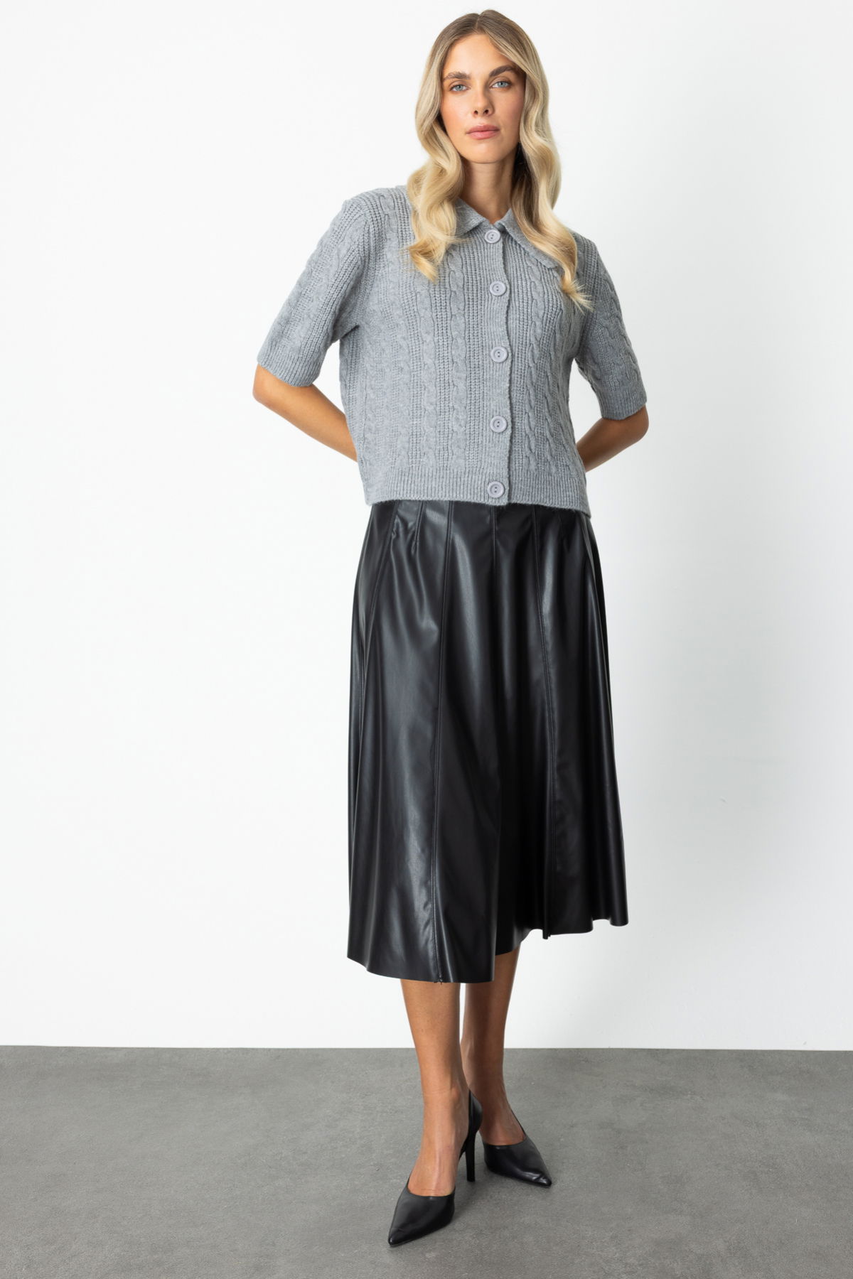 Detay: Gömlek yaka tasarımıyla klasik bir görünüm sunan örme hırka, astarsız yapısıyla hafif ve konforlu bir kullanım sağlar. Kısa kol detayıyla sıcak havalarda ideal bir tercih olan bu cepsiz model, düğmeli kapama özelliğiyle pratikliği şıklıkla buluşturur. Yumuşak örme dokusuyla günlük stilinize sade ve zarif bir dokunuş katar;
