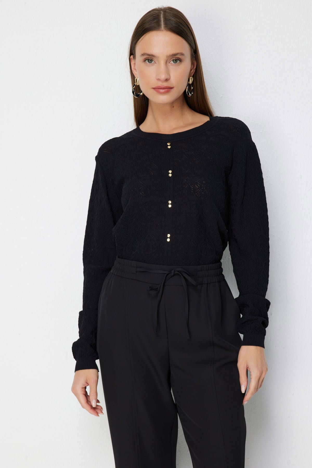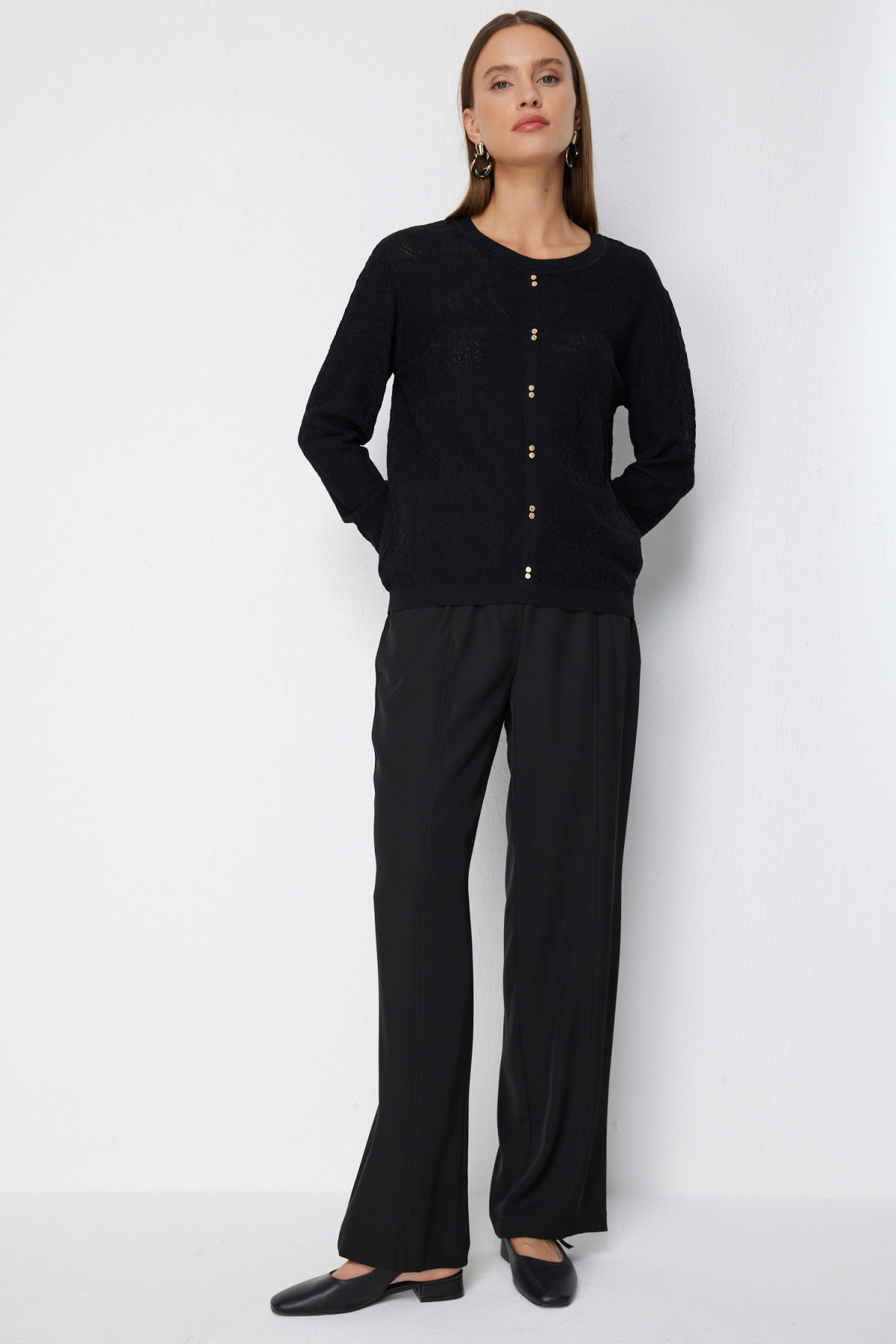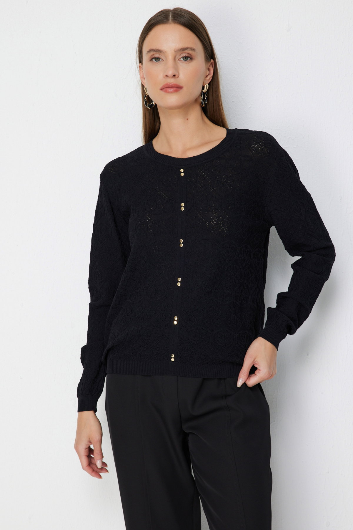 Detay: Triko kumaştan üretilen, astarsız yapıya sahip, sıfır yaka ve uzun kollu bu bluz modern ve zarif bir tasarıma sahiptir; astarsız oluşu hafiflik ve rahatlık sağlarken triko kumaşın esnek dokusu konforlu bir kullanım sunar, sıfır yaka detayı minimal ve şık bir görünüm kazandırır, uzun kollu form ise günlük kombinlerde hem sofistike bir duruş hem de pratik bir şıklık ortaya koyar;