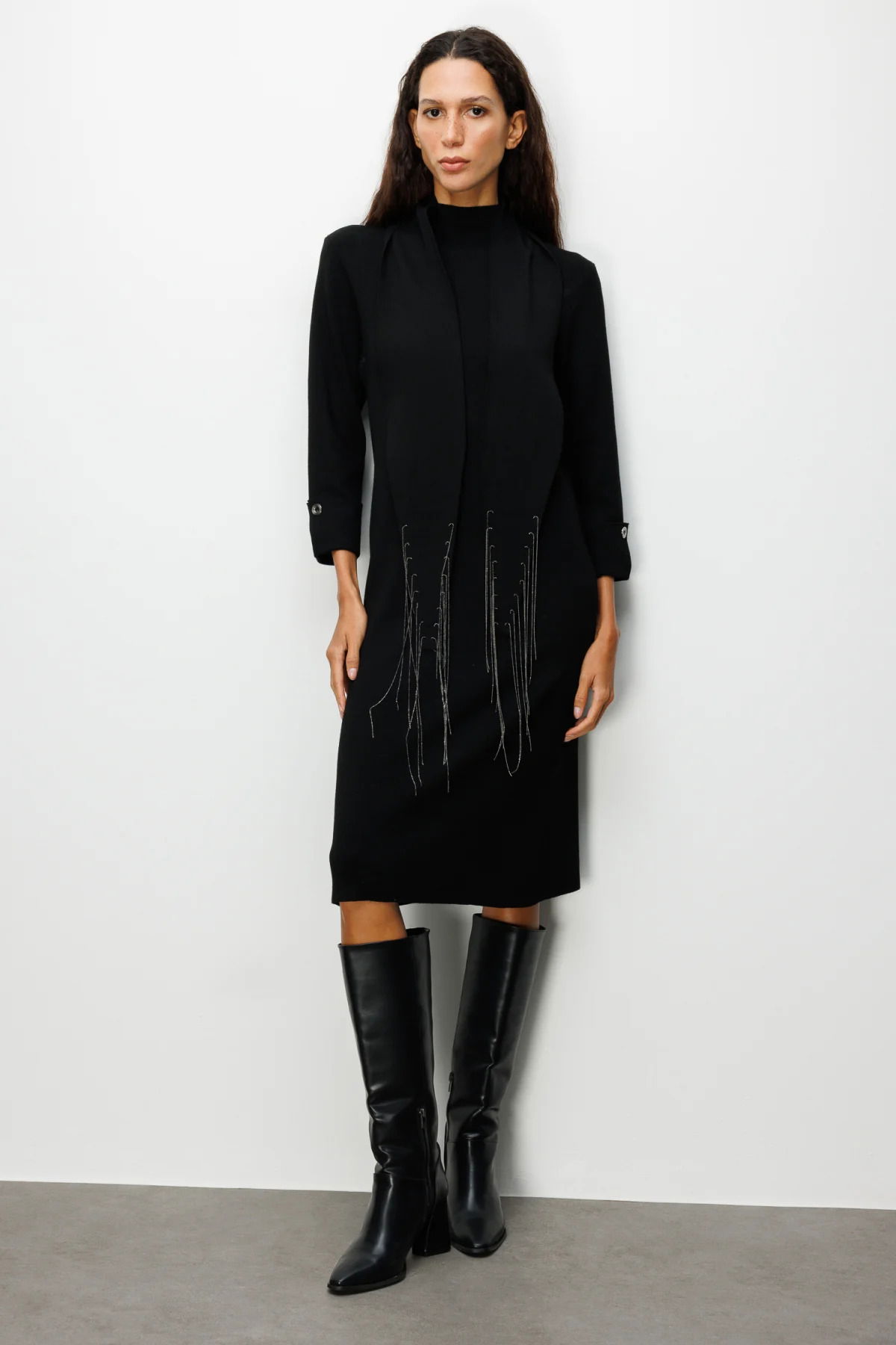 Detay: Triko kumaşlı, astarsız ve dik yaka tasarımıyla öne çıkan yarım kollu truvakar kuşaklı elbise, modern ve zarif bir görünüm sunar. Bel hattını vurgulayan kuşak detayı feminen bir siluet oluştururken, triko dokusu konforlu bir kullanım sağlar. Günlük kombinlerden özel davetlere kadar her ortamda şıklığınızı tamamlayan kuşaklı triko elbise, stil sahibi kadınların favorisi olur;