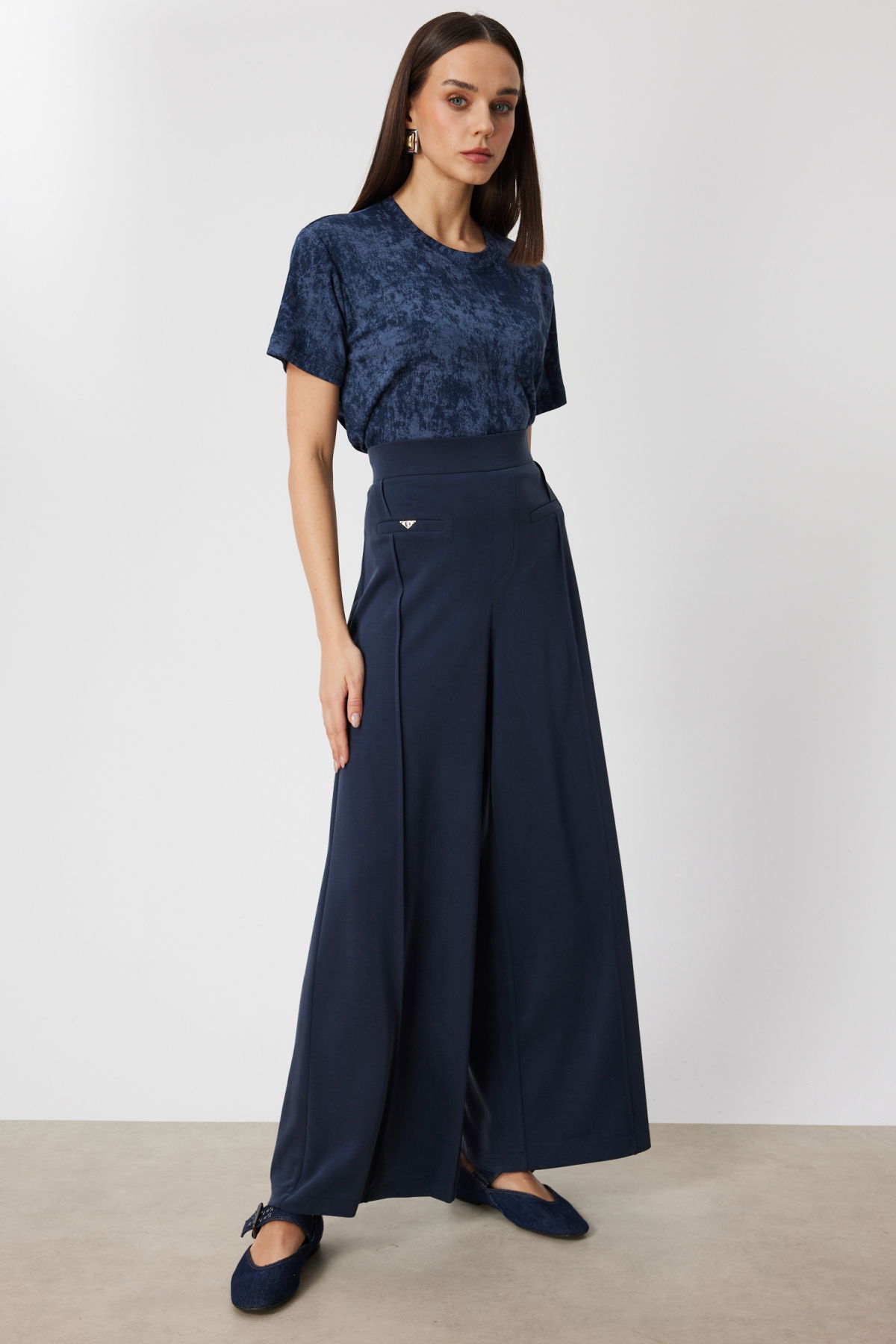 On Kadın Metal Aksesuarlı Bol Paça Eşofman Altı 74125 Lacivert