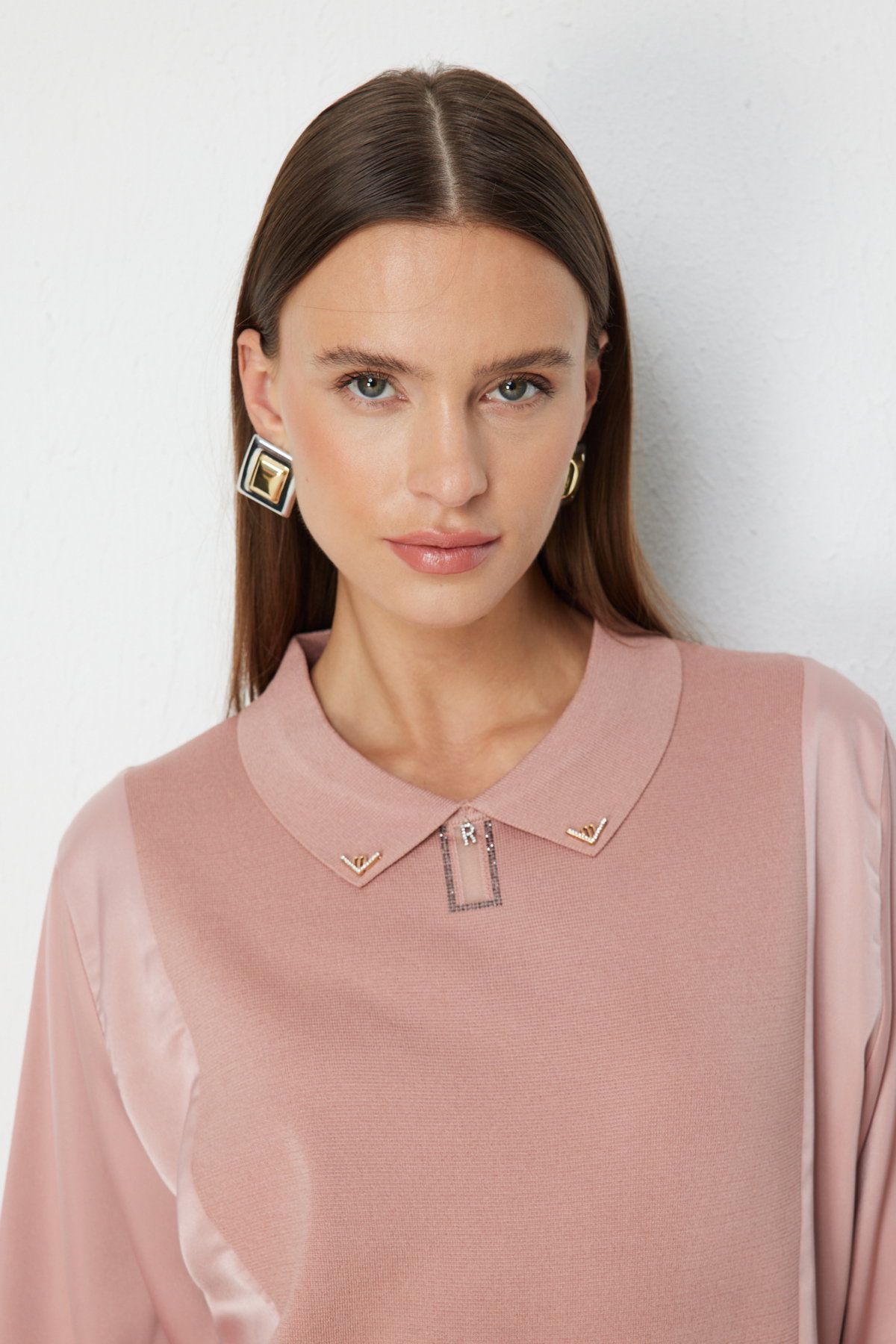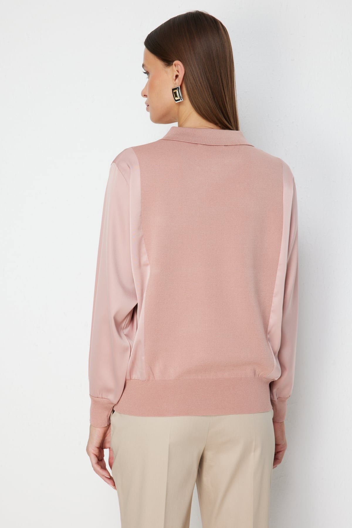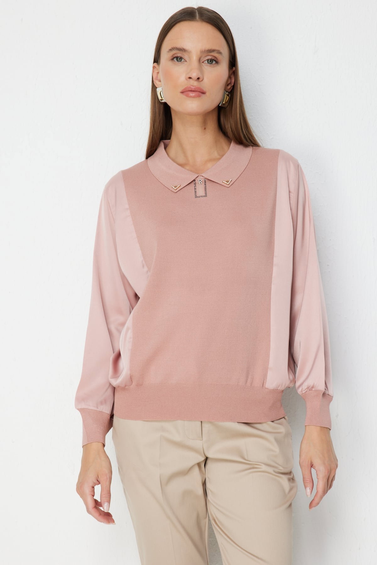 On Kadın Mix Kumaş Yakalı Bluz 70510 Pudra