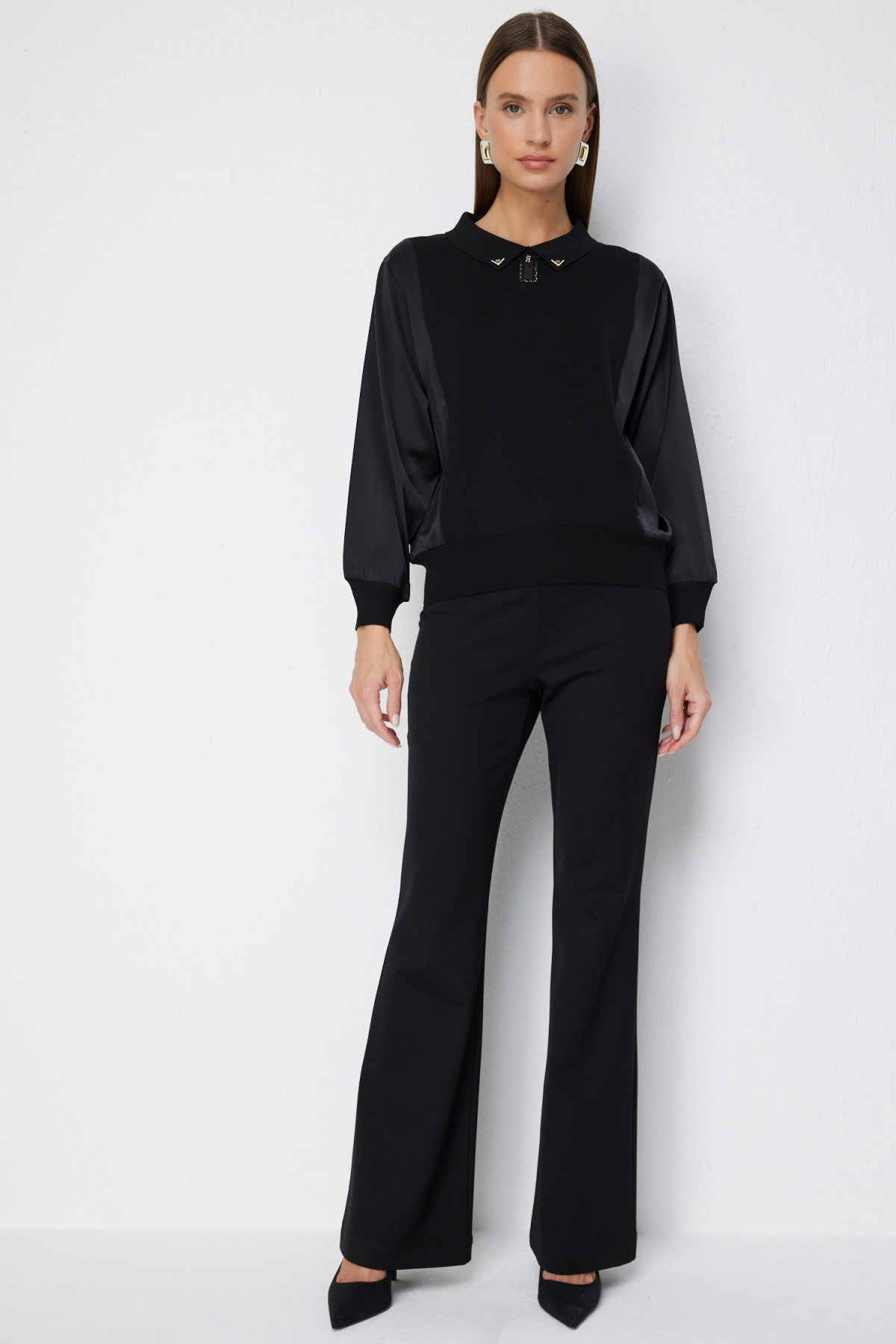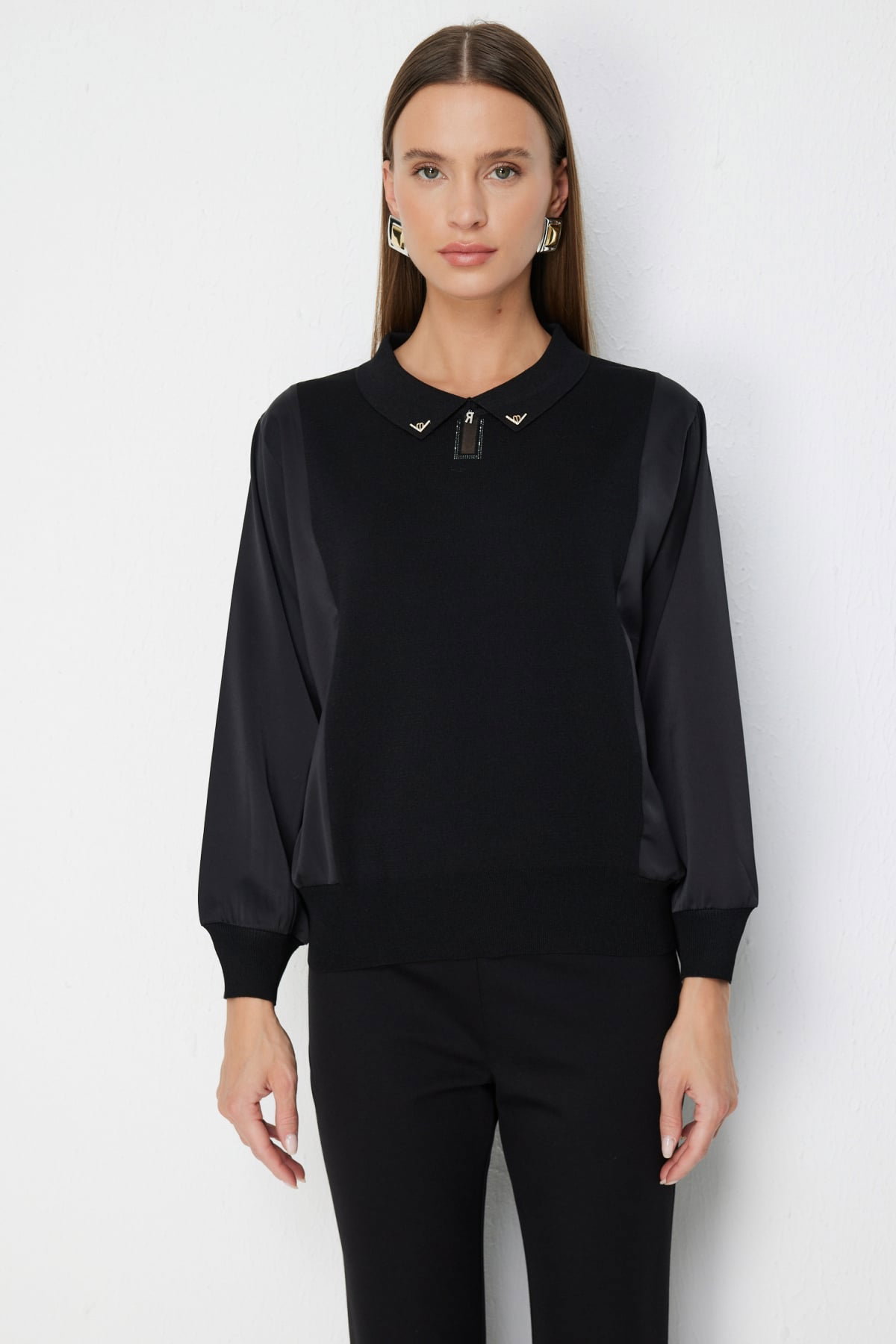 Detay:Dokuma kumaştan üretilen, astarsız yapıya sahip, gömlek yaka ve uzun kollu bu bluz zarif ve şık bir tasarıma sahiptir; astarsız oluşu hafiflik ve rahatlık sağlarken dokuma kumaşın kaliteli dokusu modern bir duruş kazandırır, gömlek yaka detayı klasik bir şıklık sunar, uzun kollu form ise günlük kullanımda hem konfor hem de sofistike bir görünüm ortaya koyar;