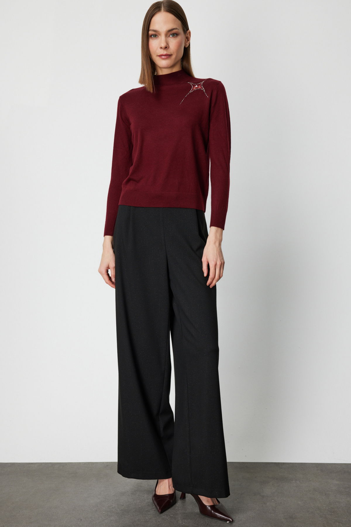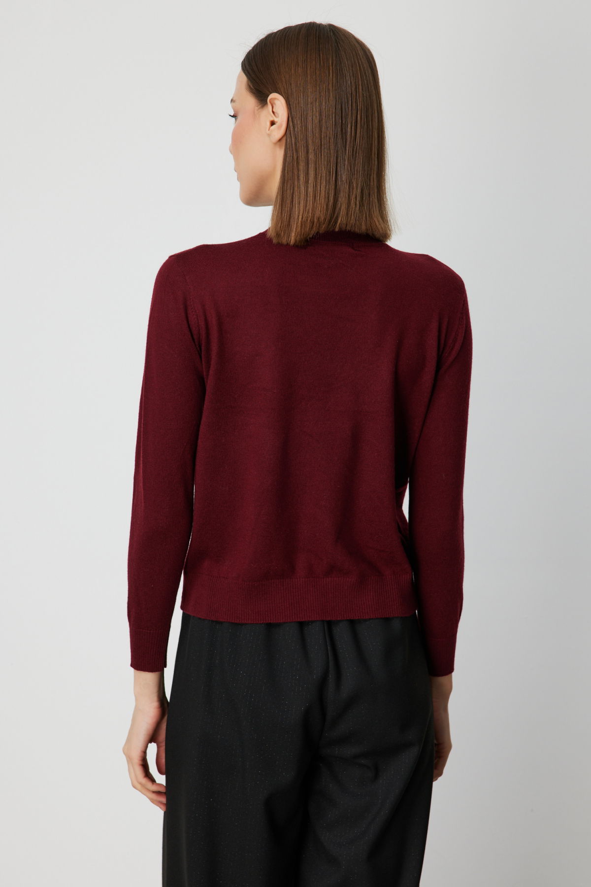 On Kadın Omzu Taş Detaylı Triko Kazak 60453 Bordo