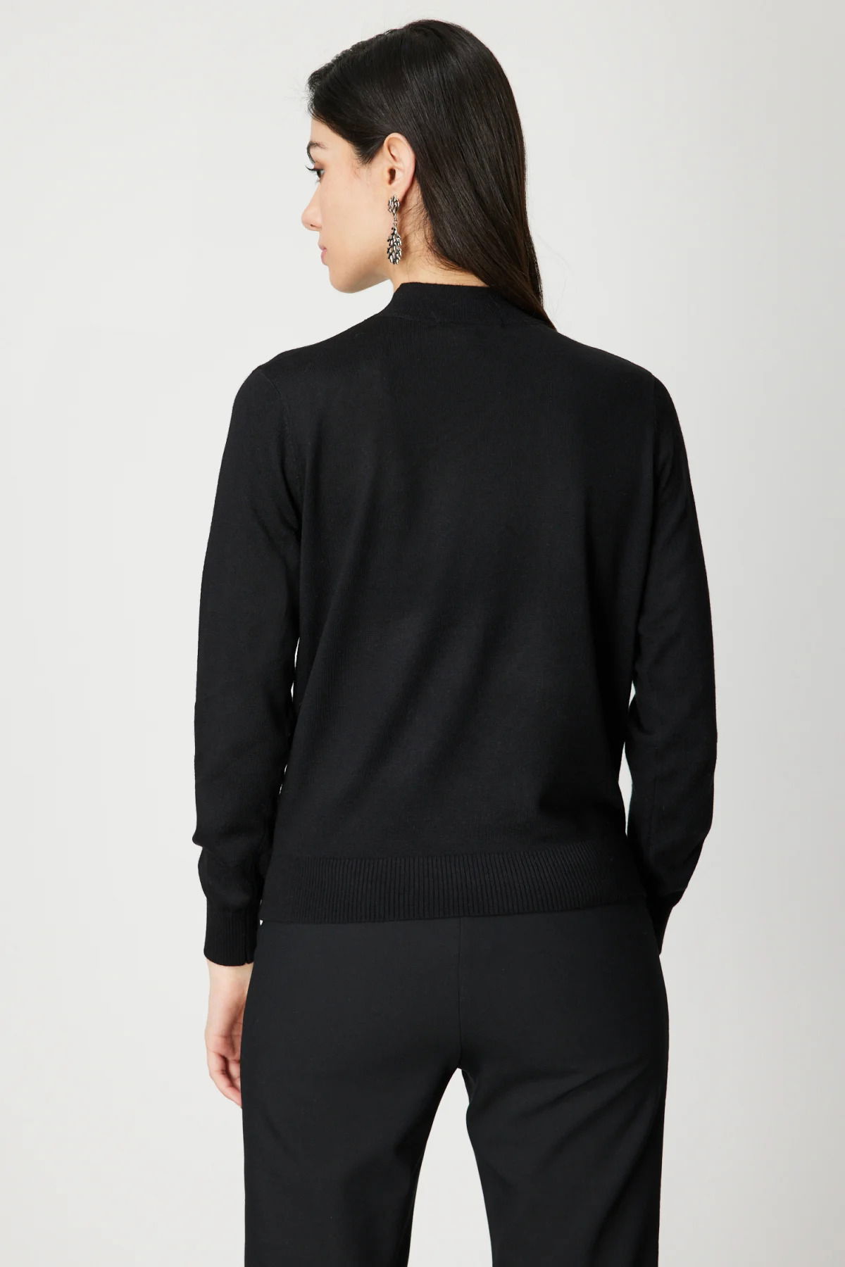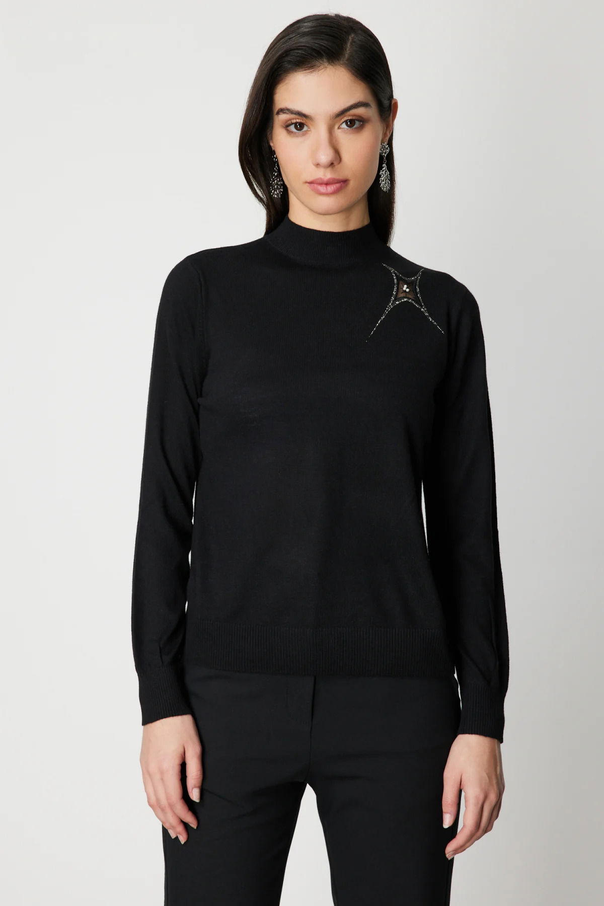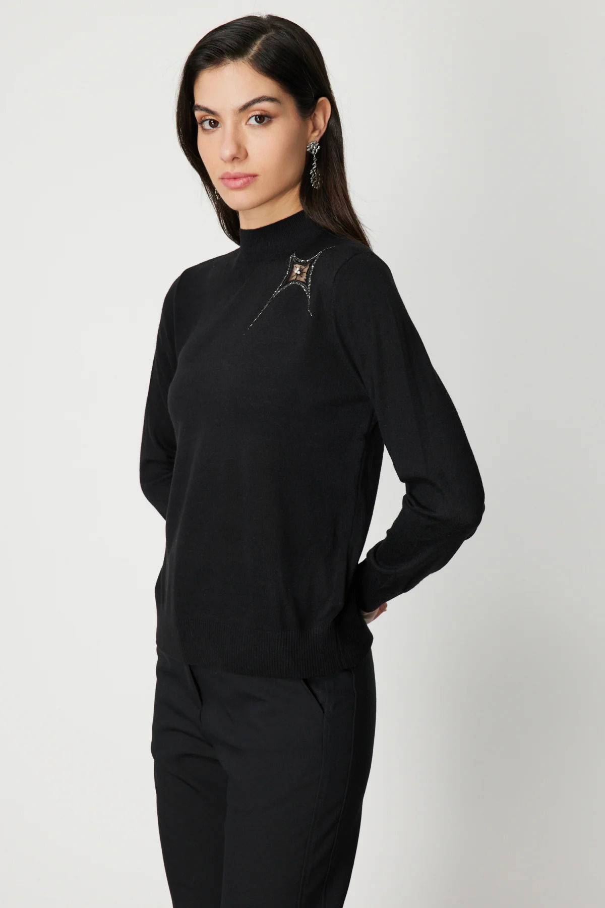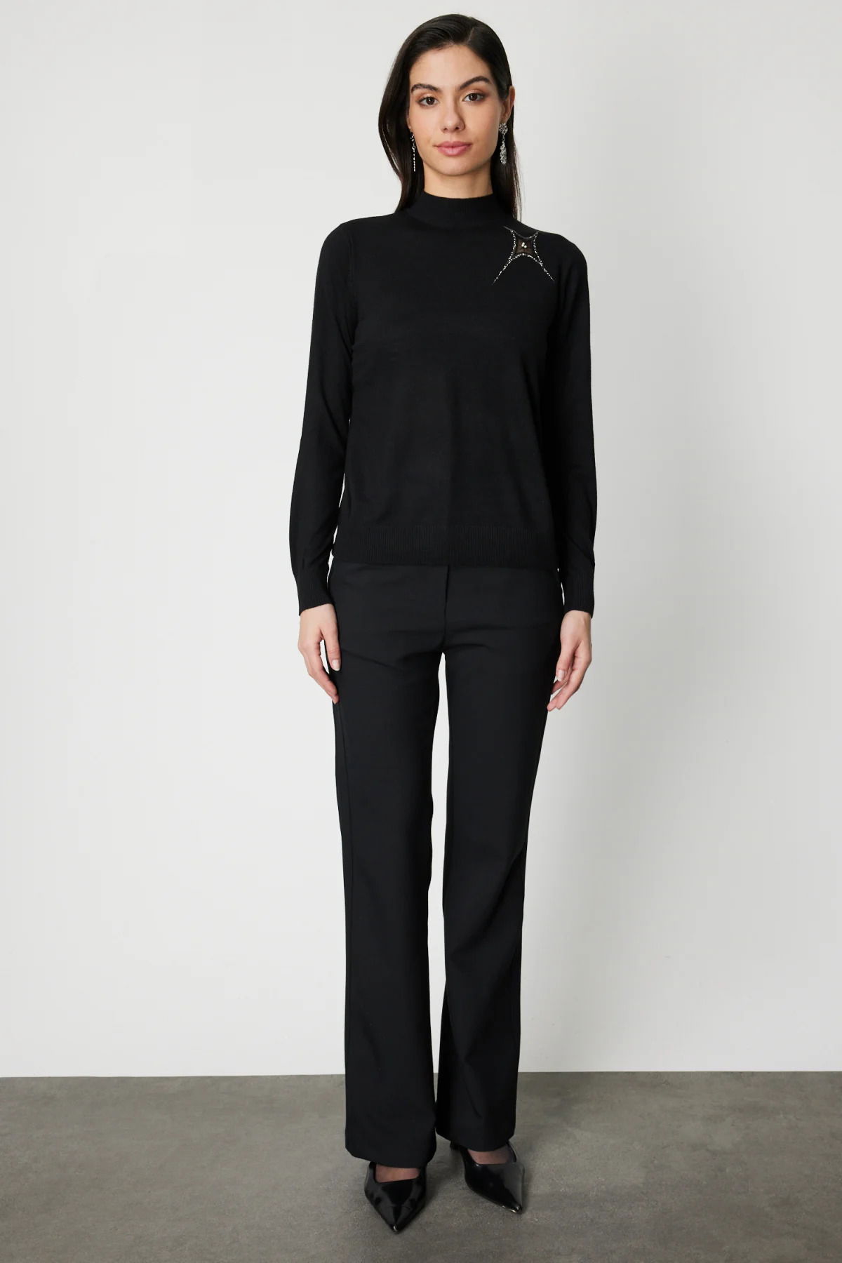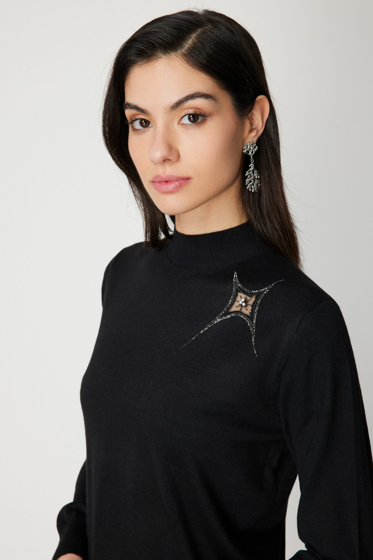 On Kadın Omzu Taş Detaylı Triko Kazak 60453 Siyah