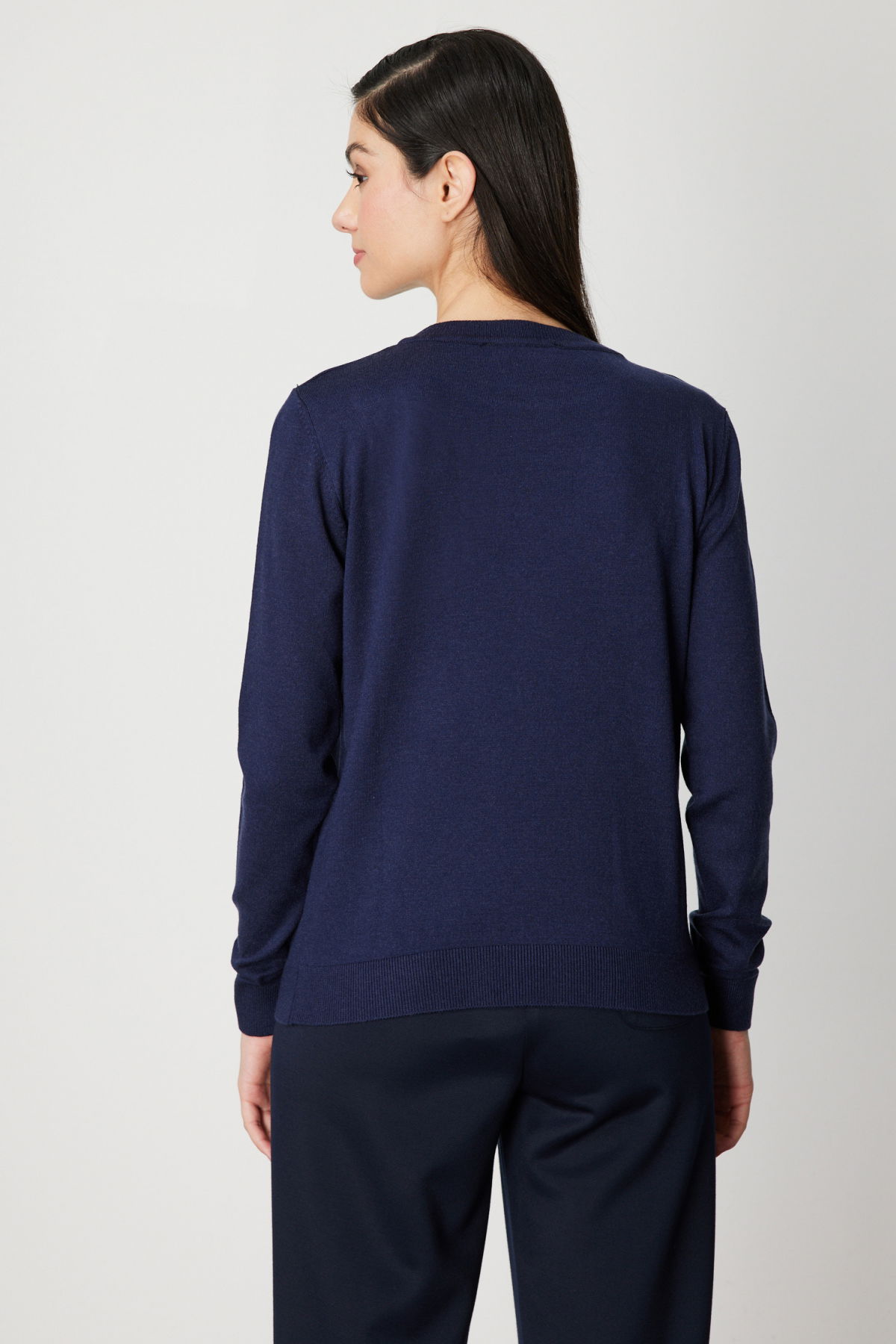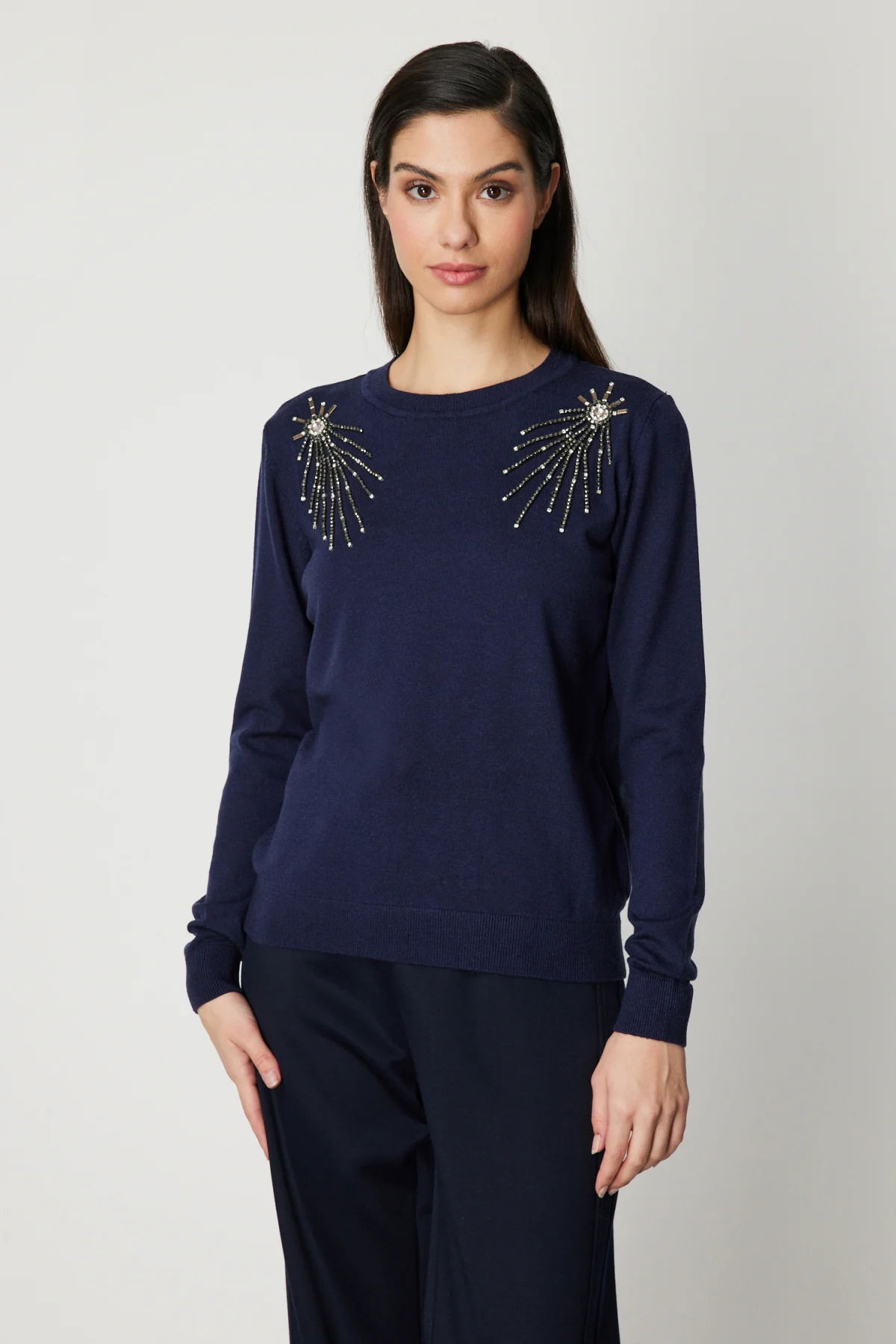 On Kadın Omzu Taş Detaylı Triko Kazak 63314 Lacivert