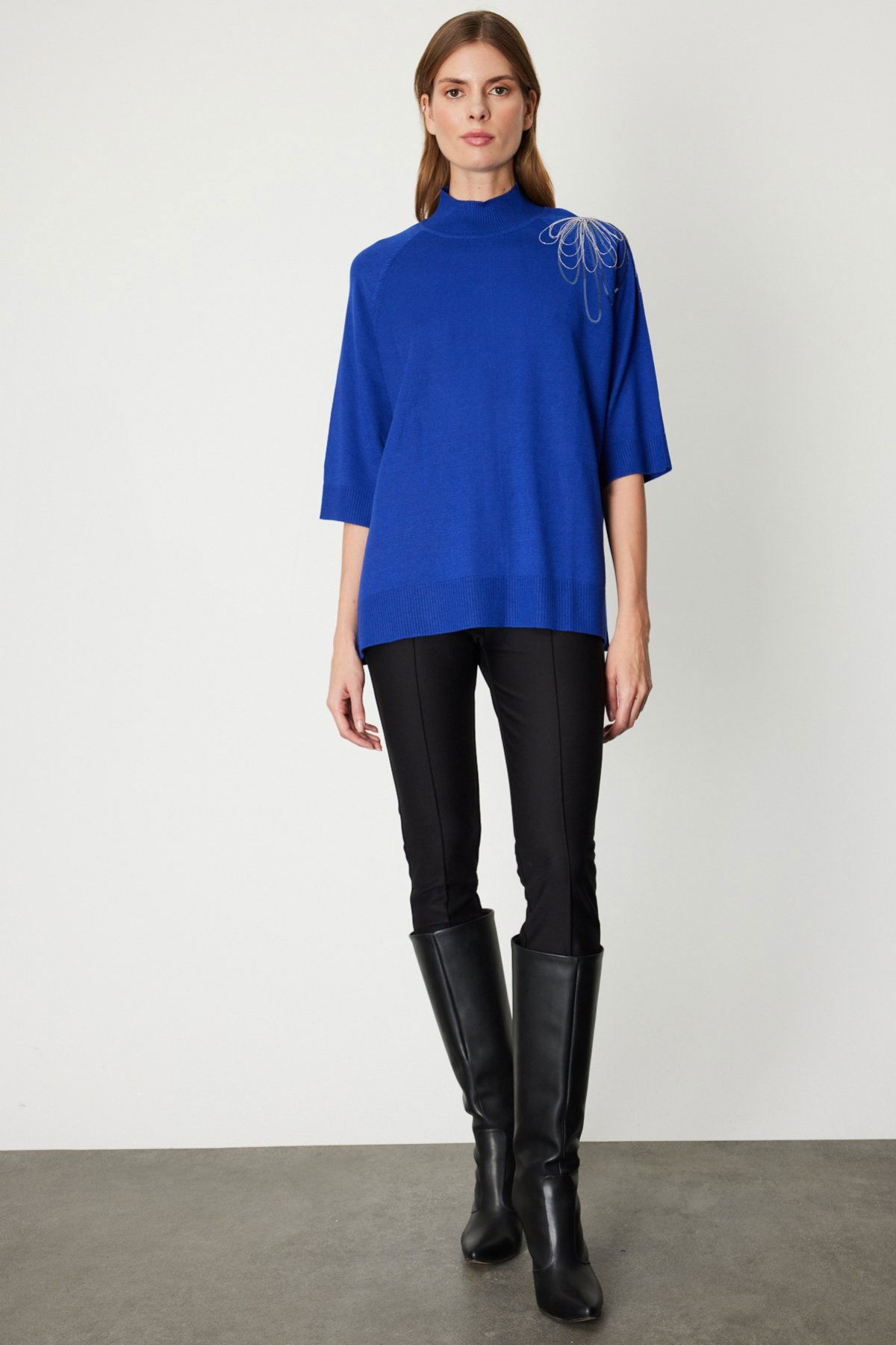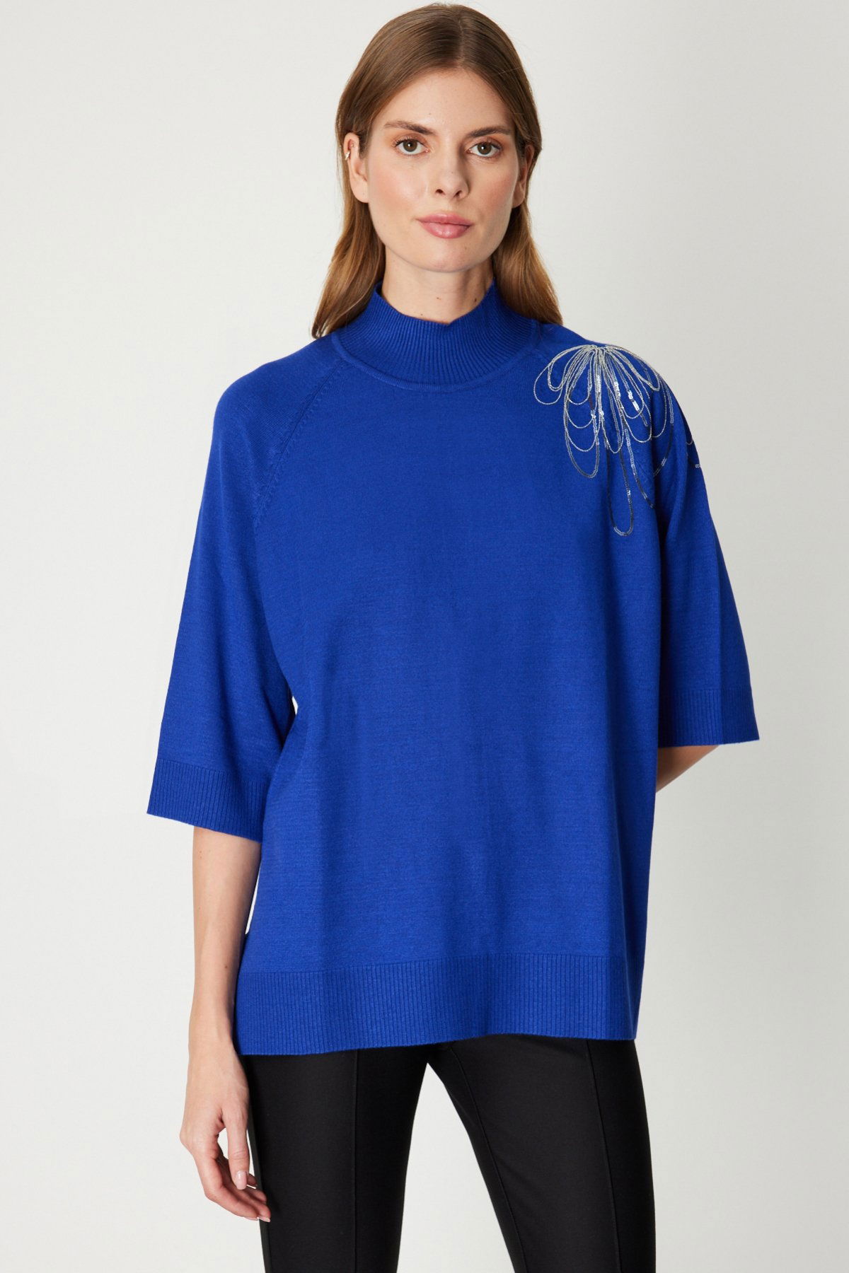 Detay: Bu astarsız triko kazak, dik yaka tasarımıyla modern ve sofistike bir görünüm sunarken, truvakar uzunluğundaki yarım kol detayıyla mevsim geçişleri için ideal bir seçenek oluşturur. Triko kumaşın yumuşak ve esnek dokusu sayesinde gün boyu konforlu bir kullanım sağlar. Minimal ve zarif çizgileriyle hem günlük kombinlere hem de ofis stiline kolayca uyum sağlayan bu kazak, sade şıklığı sevenler için vazgeçilmez bir parça olmaya aday;