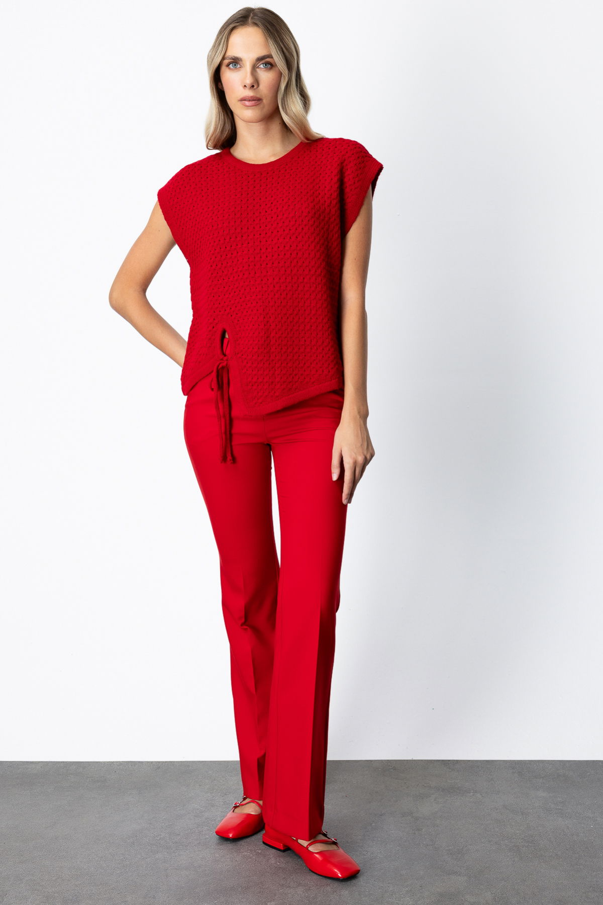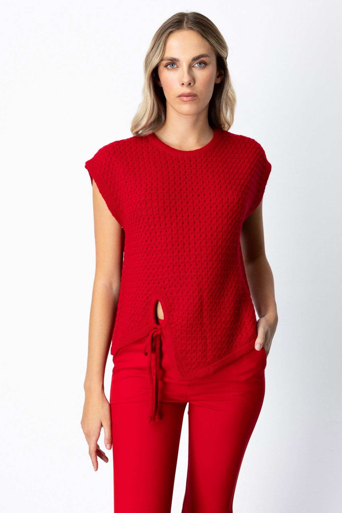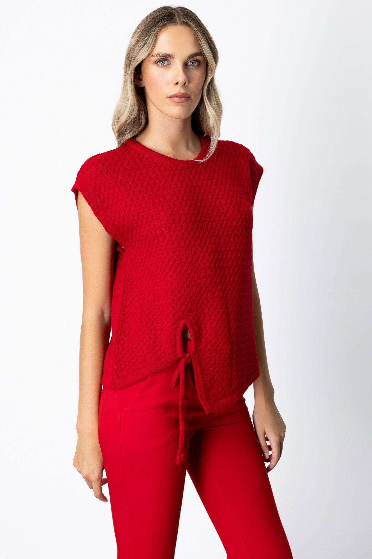 On Kadın Önü Bağlamalı Süveter 65337 Kırmızı