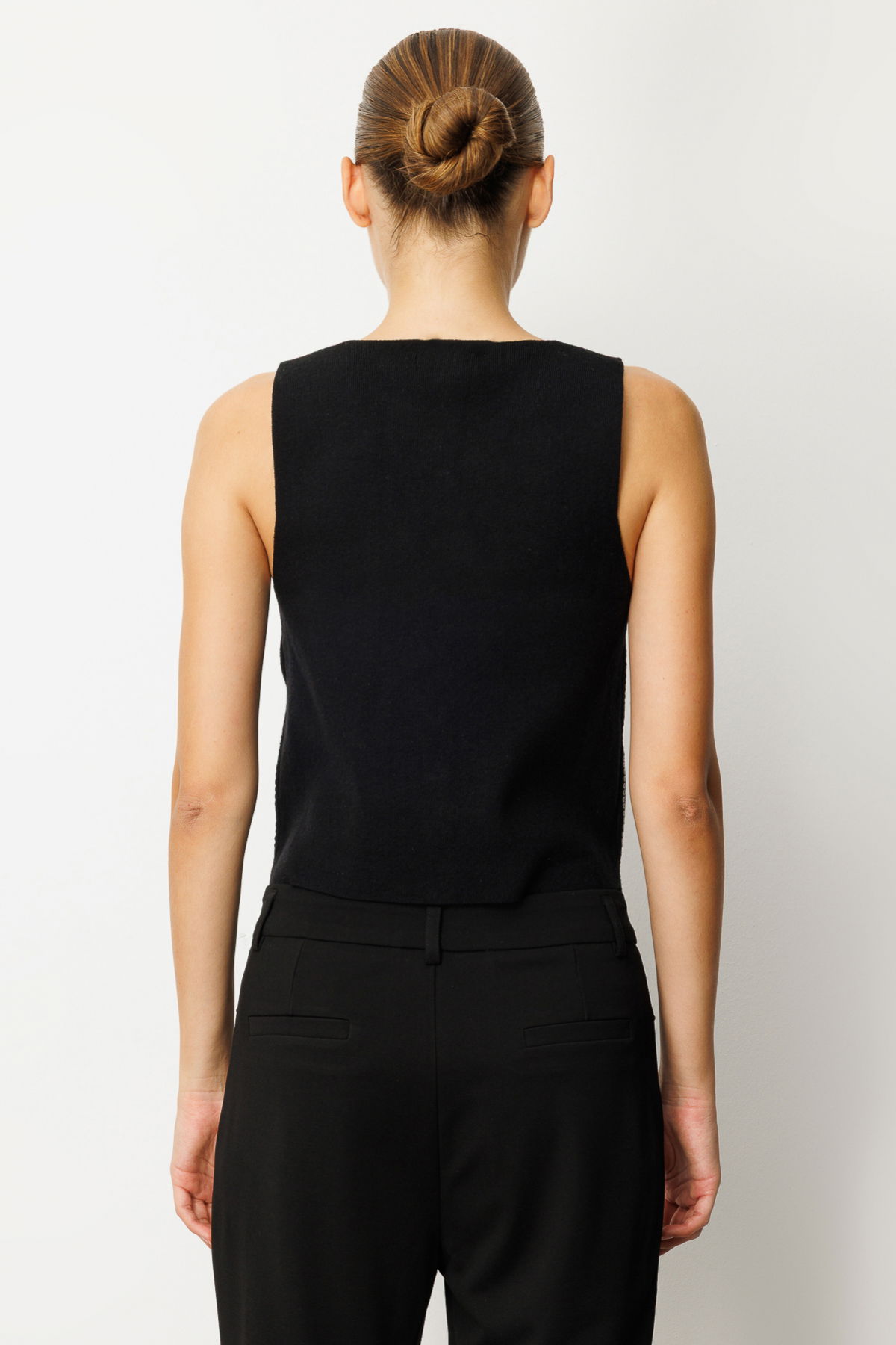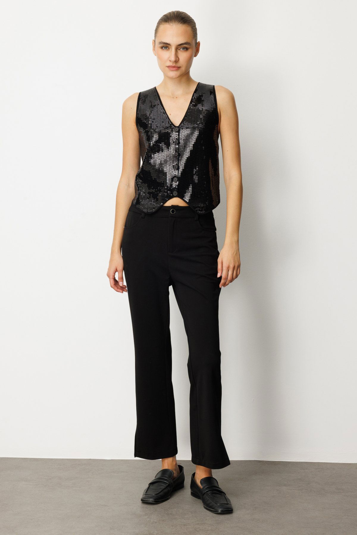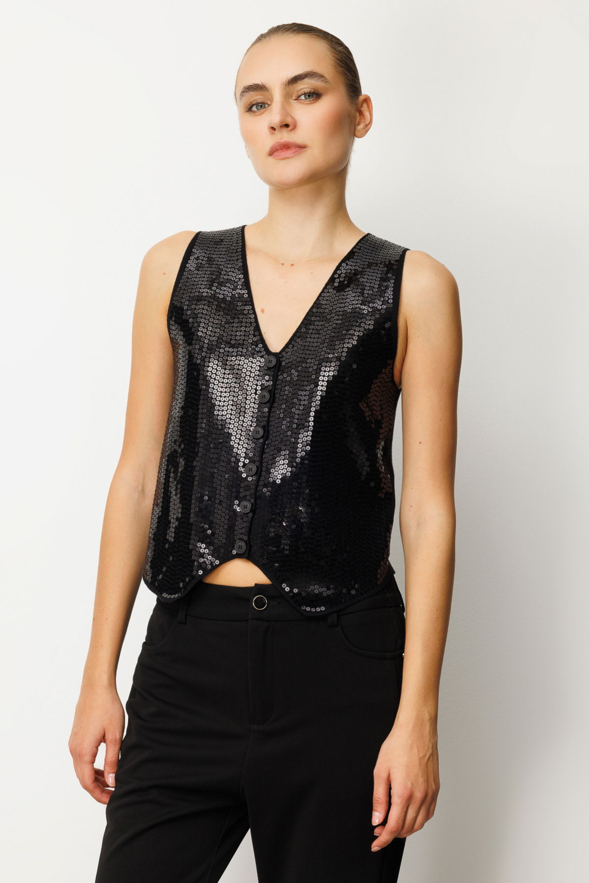 Detay: Astarsız triko kumaşıyla hafif ve konforlu bir kullanım sunan bu düğmeli yelek, sade şıklığın modern bir yansımasıdır. V yaka kesimi ve kolsuz tasarımı sayesinde hem tek başına hem de katmanlı kombinlerde rahatlıkla tercih edilebilir. Günlük stilinize zarif ve tamamlayıcı bir dokunuş katmak isteyenler için ideal bir parçadır;