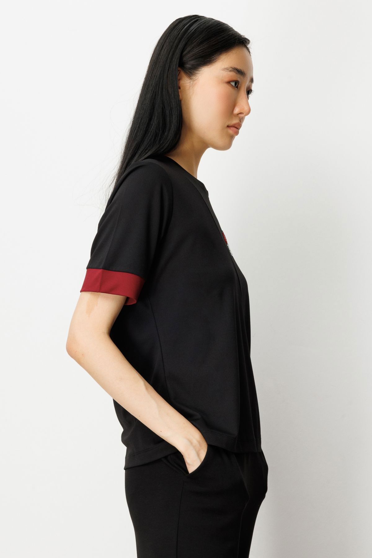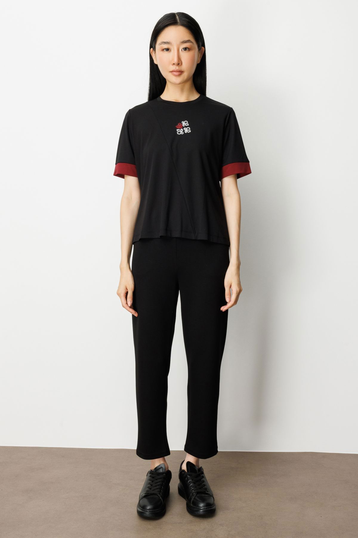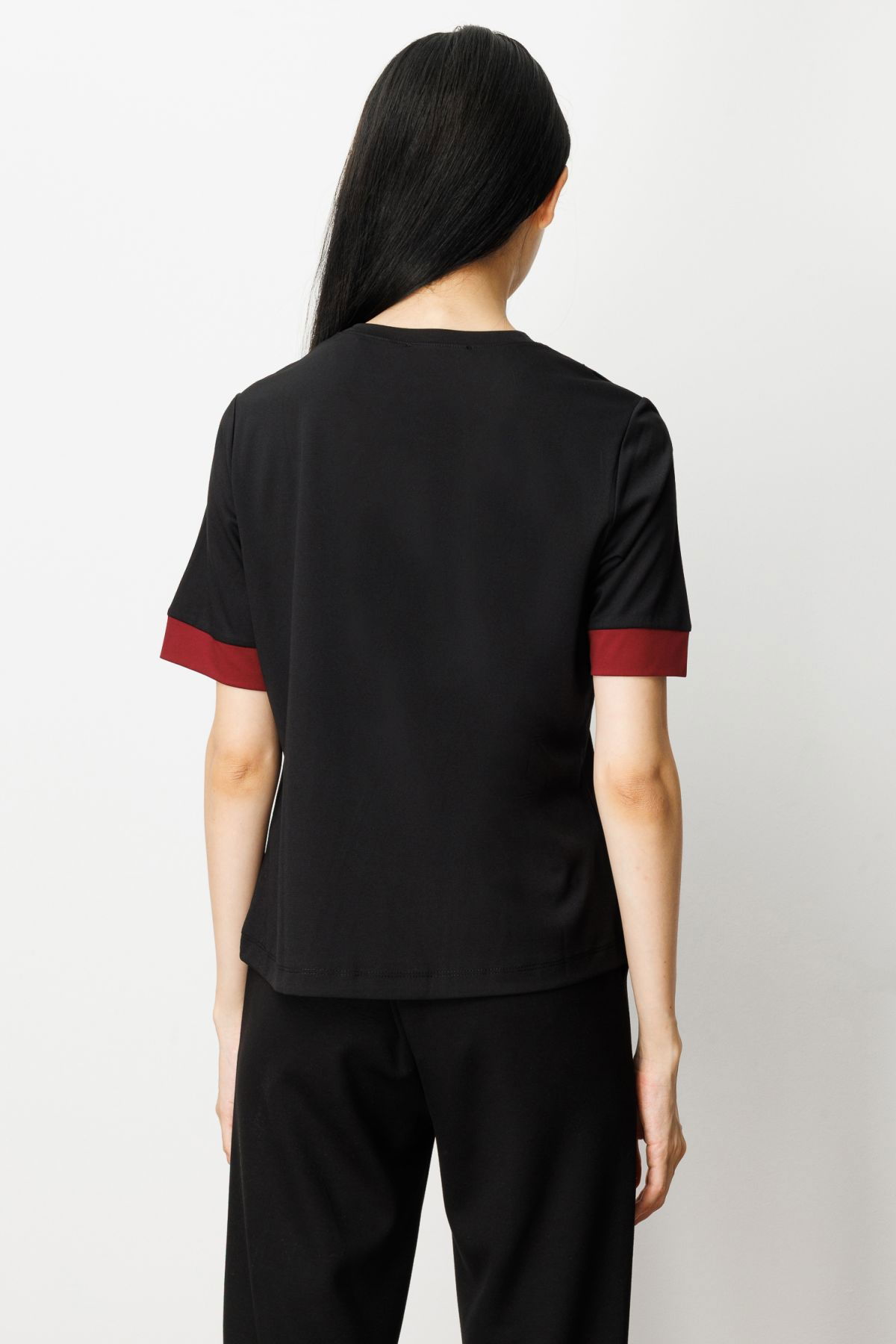 On Kadın Önü Taşlı Sıfır Yaka Bluz 61331 Siyah-Bordo