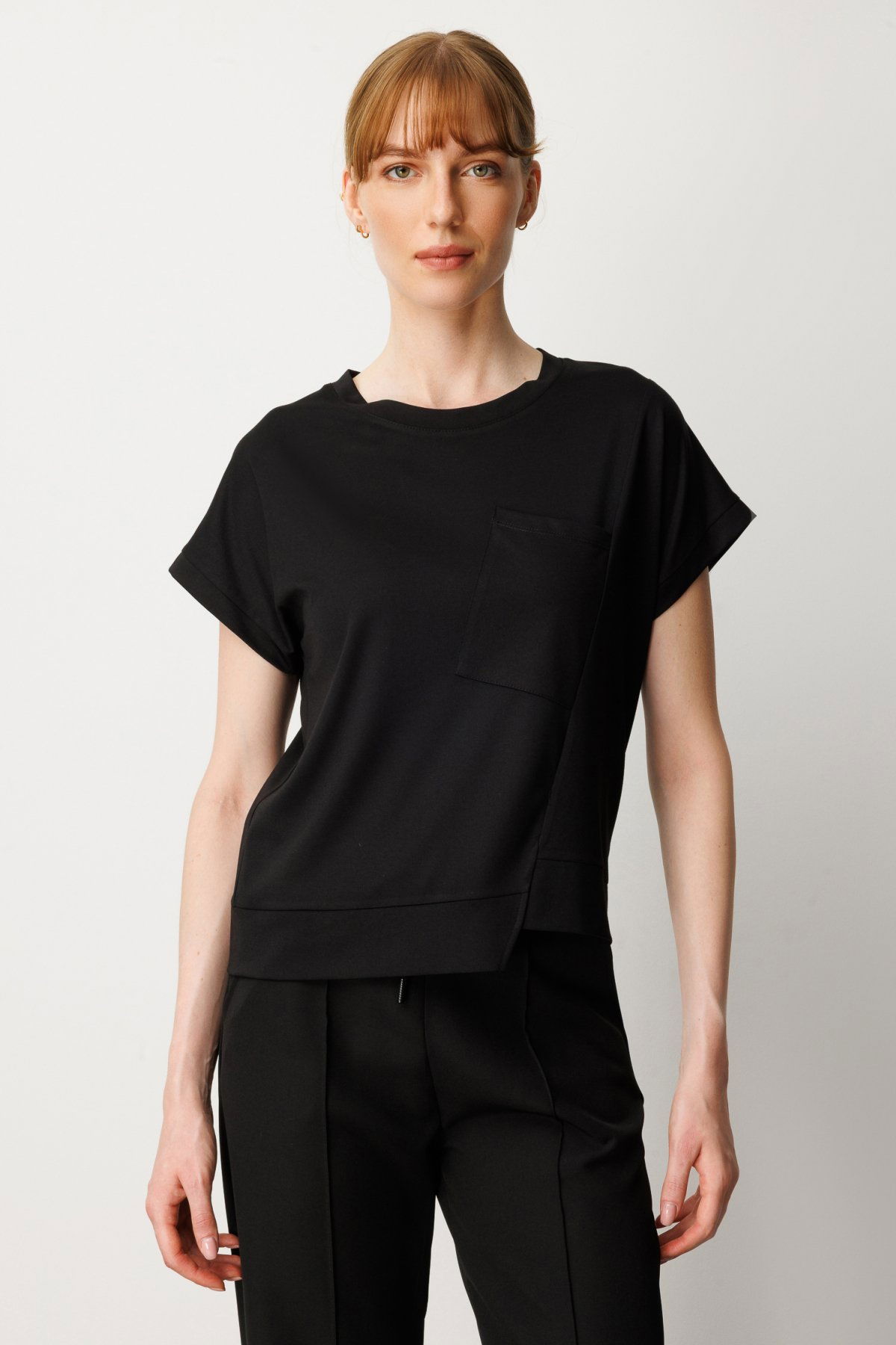 On Kadın Önü Verev Sıfır Yaka Bluz 61584 Siyah