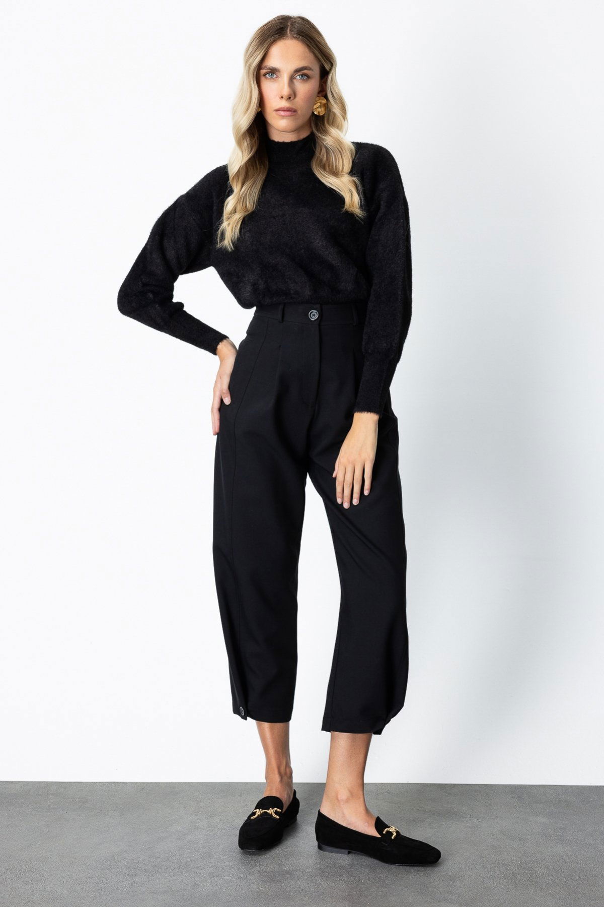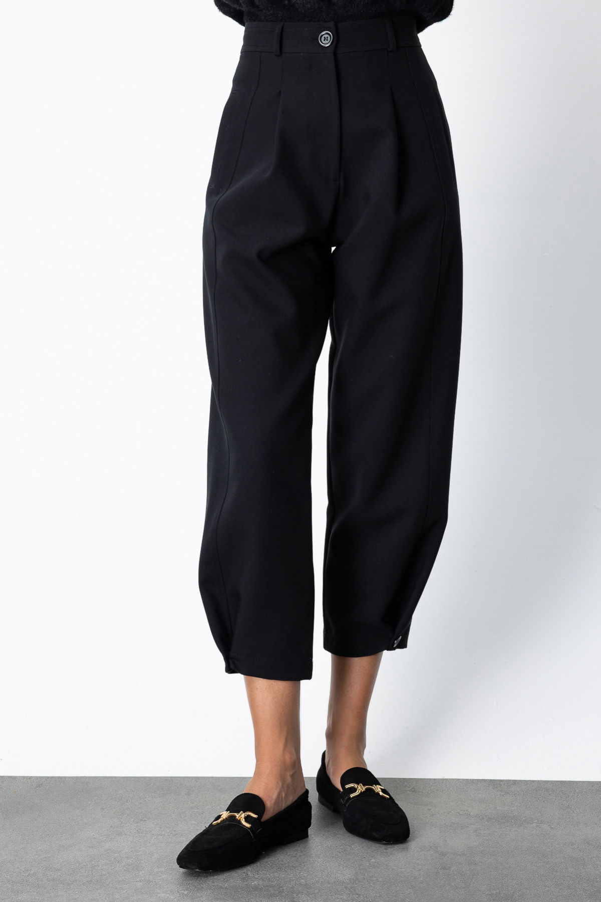 On Kadın Paçası Düğmeli Fleto Cepli Pantolon 64137 Siyah