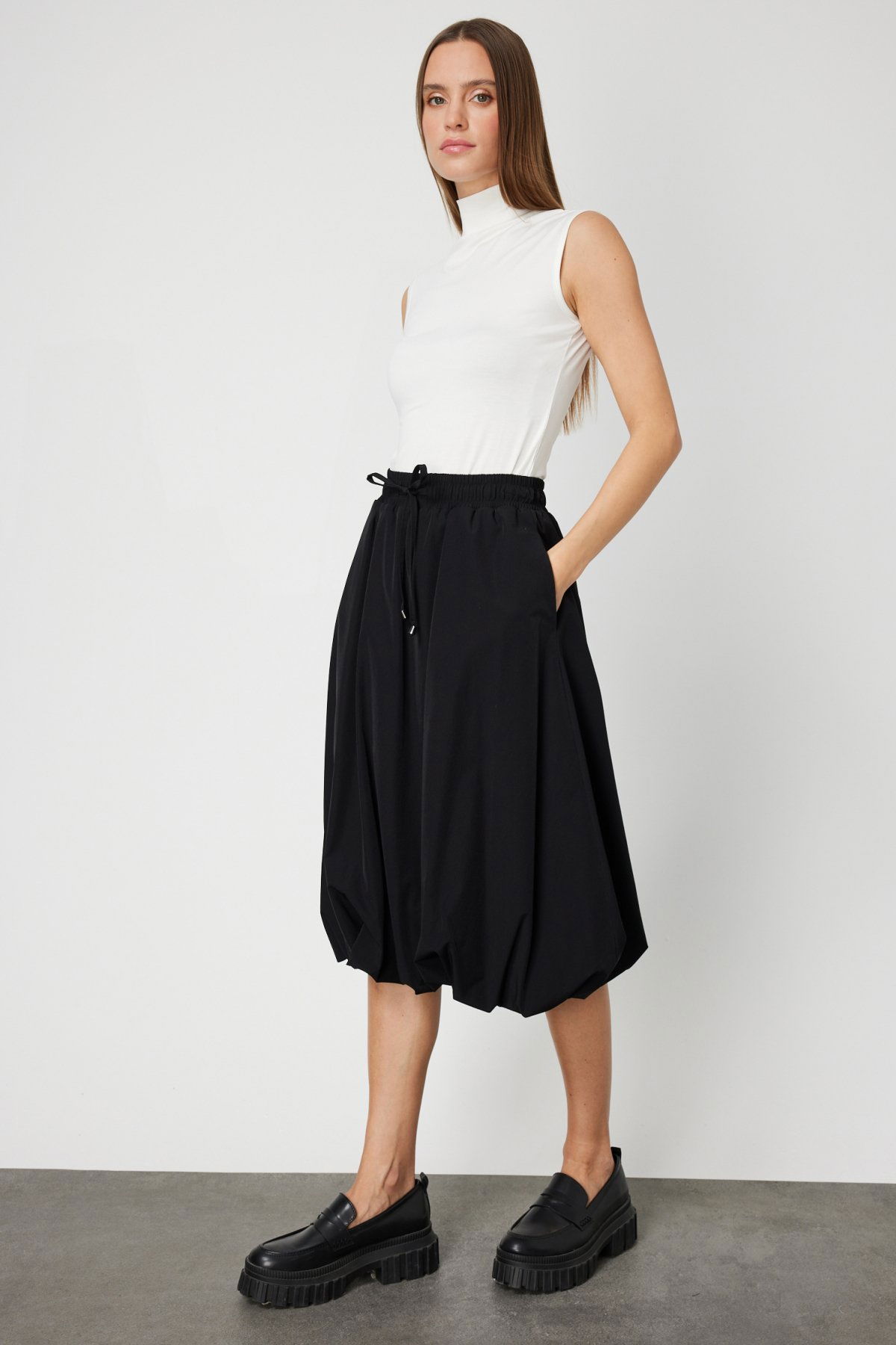 Detay: Dayanıklı paraşüt kumaşıyla sportif ve fonksiyonel bir stil sunan bu astarlı etek, lastikli beli ve bağcıklı tasarımıyla vücuda uyum sağlayarak rahat bir kullanım sağlar. Yan cep detayları hem işlevsellik hem de dinamik bir görünüm kazandırırken, astarlı yapısı sayesinde ekstra konfor sunar. Günlük giyimde aktif ve modern bir tarz arayanlar için ideal bir tercihtir;