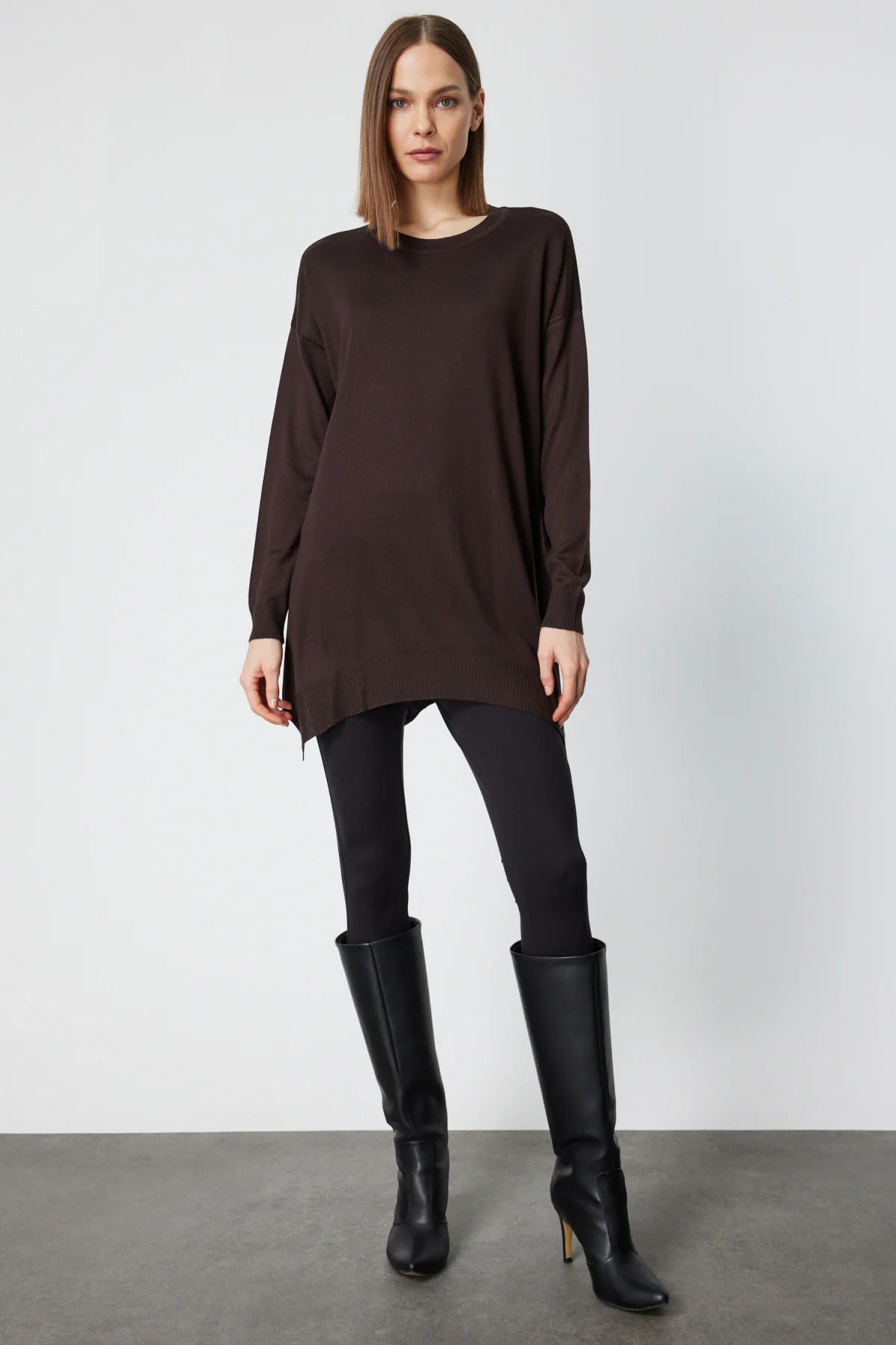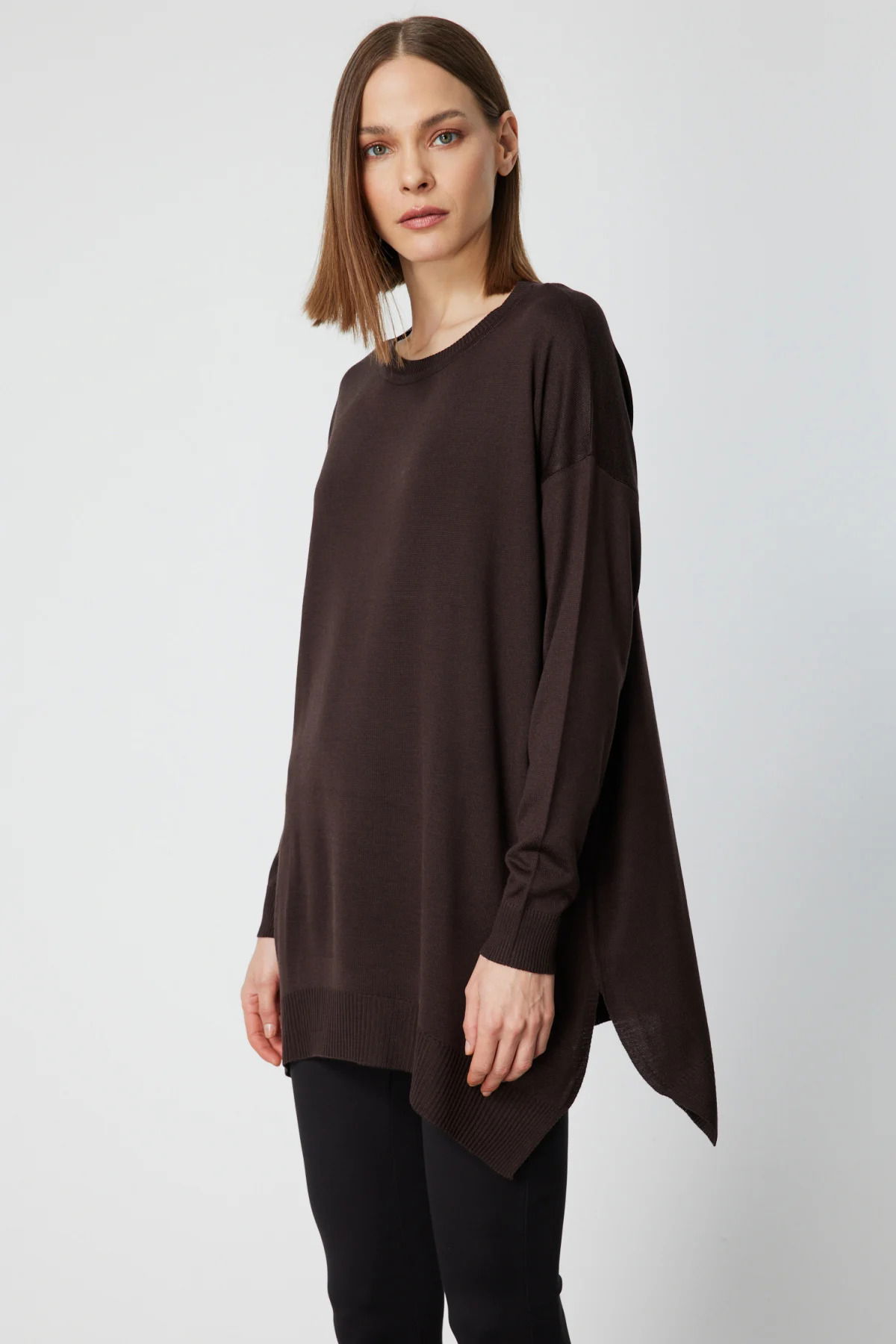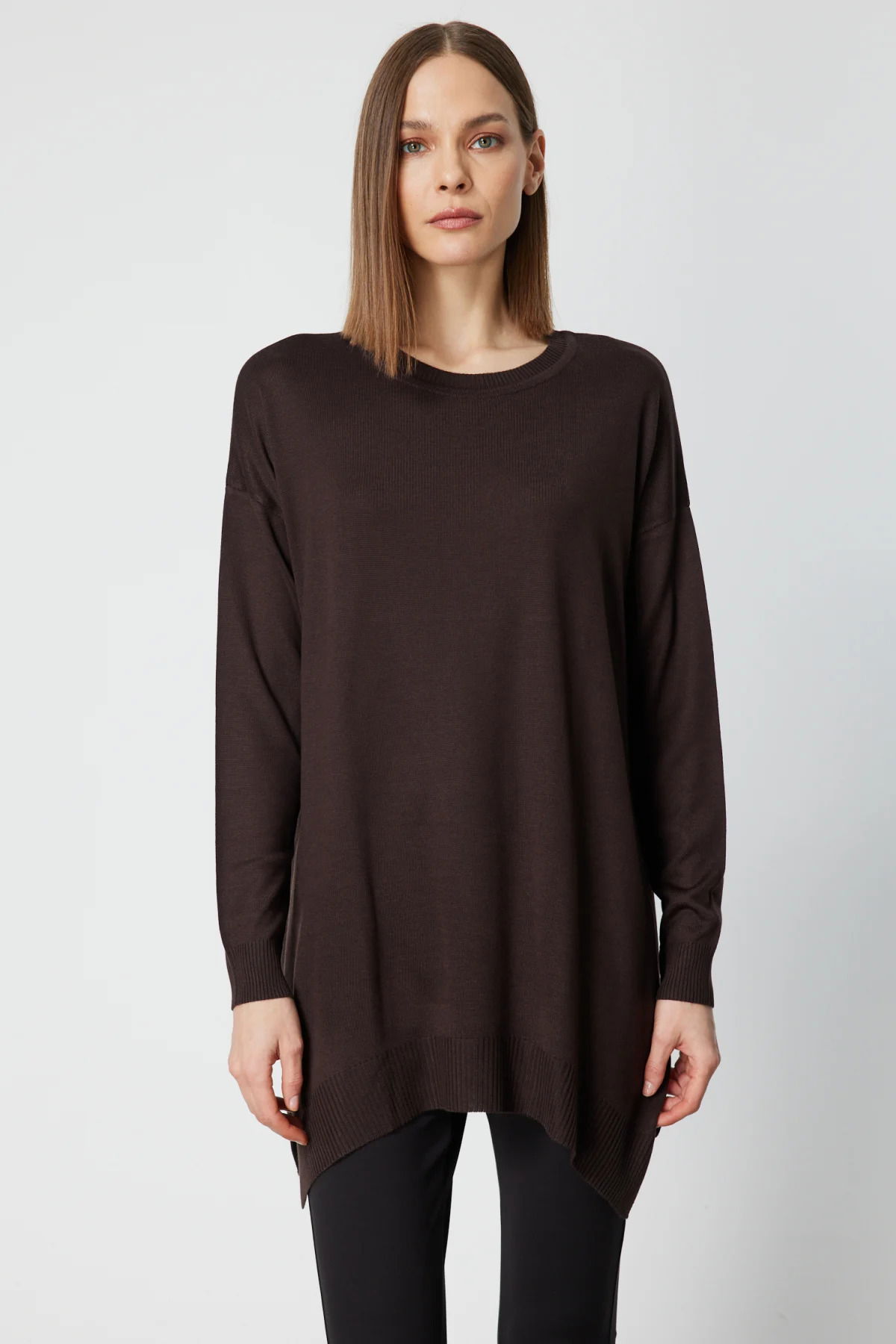 On Kadın Salaş Verev Tunik 65316 Kahverengi
