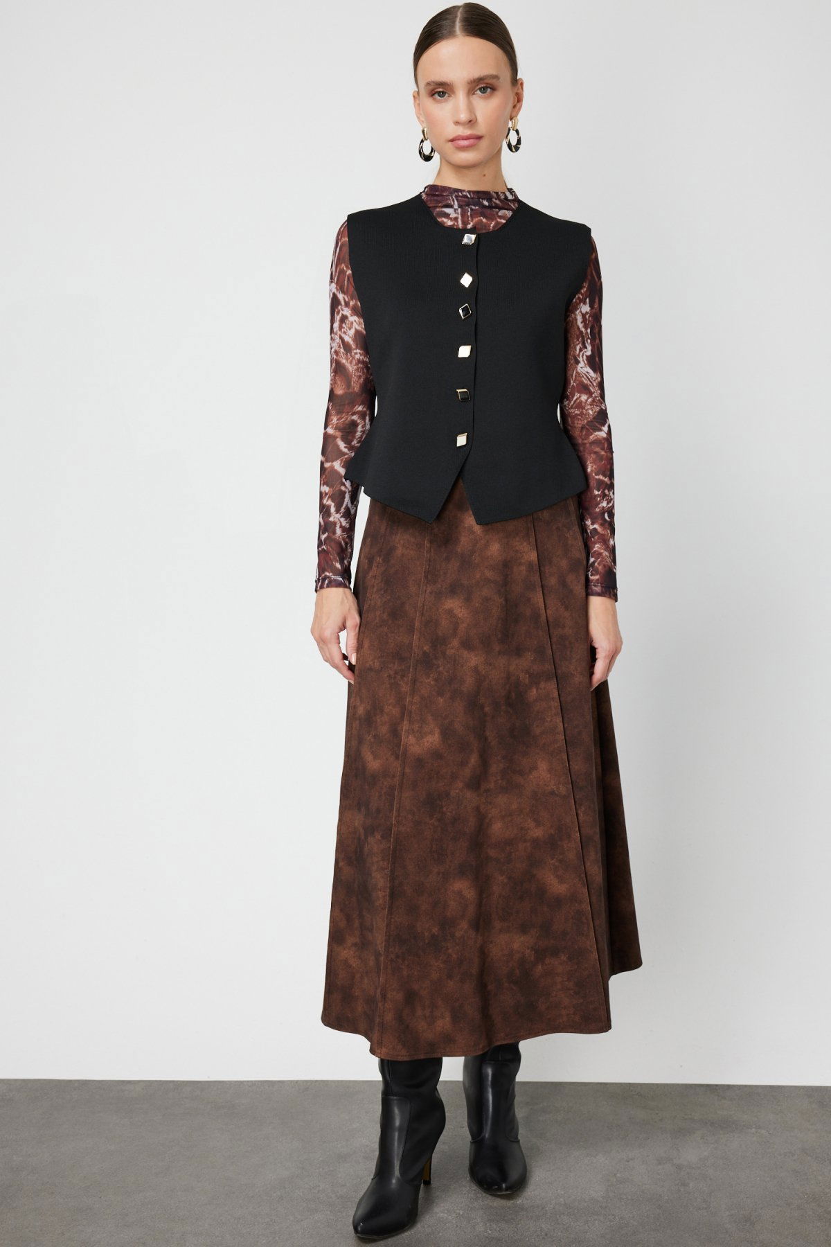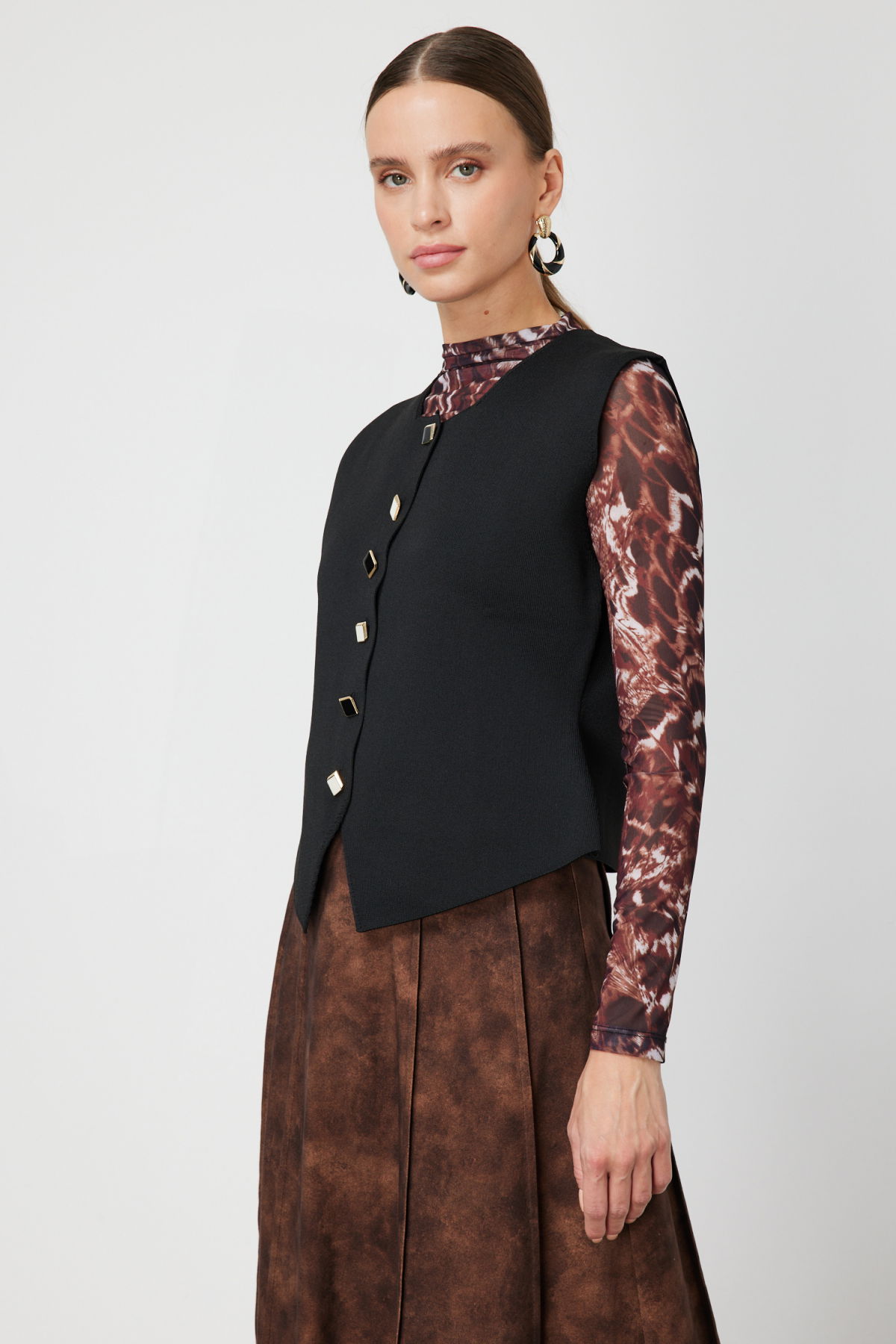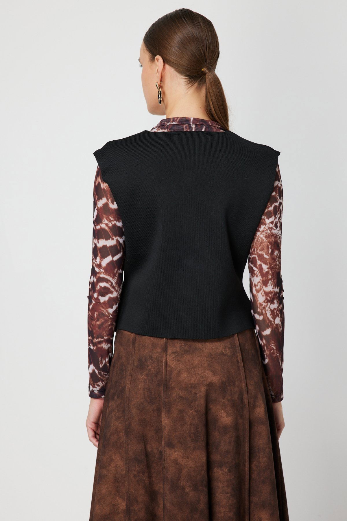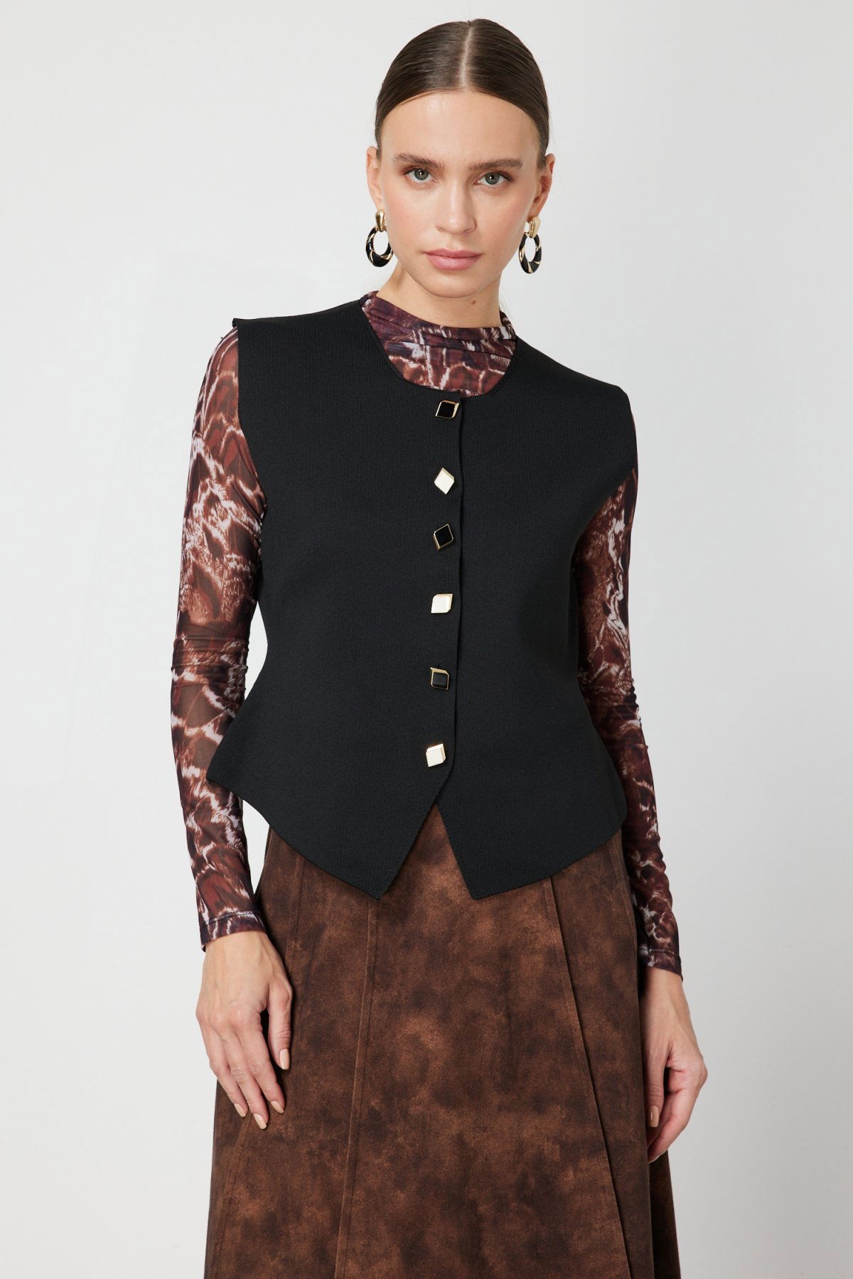 On Kadın Sıfır Yaka Düğmeli Triko Yelek 66947 Siyah