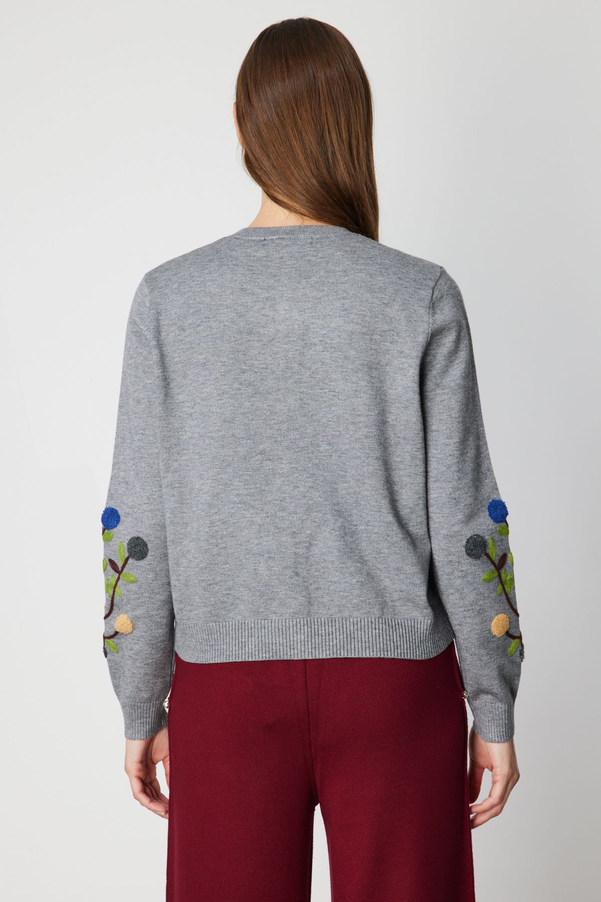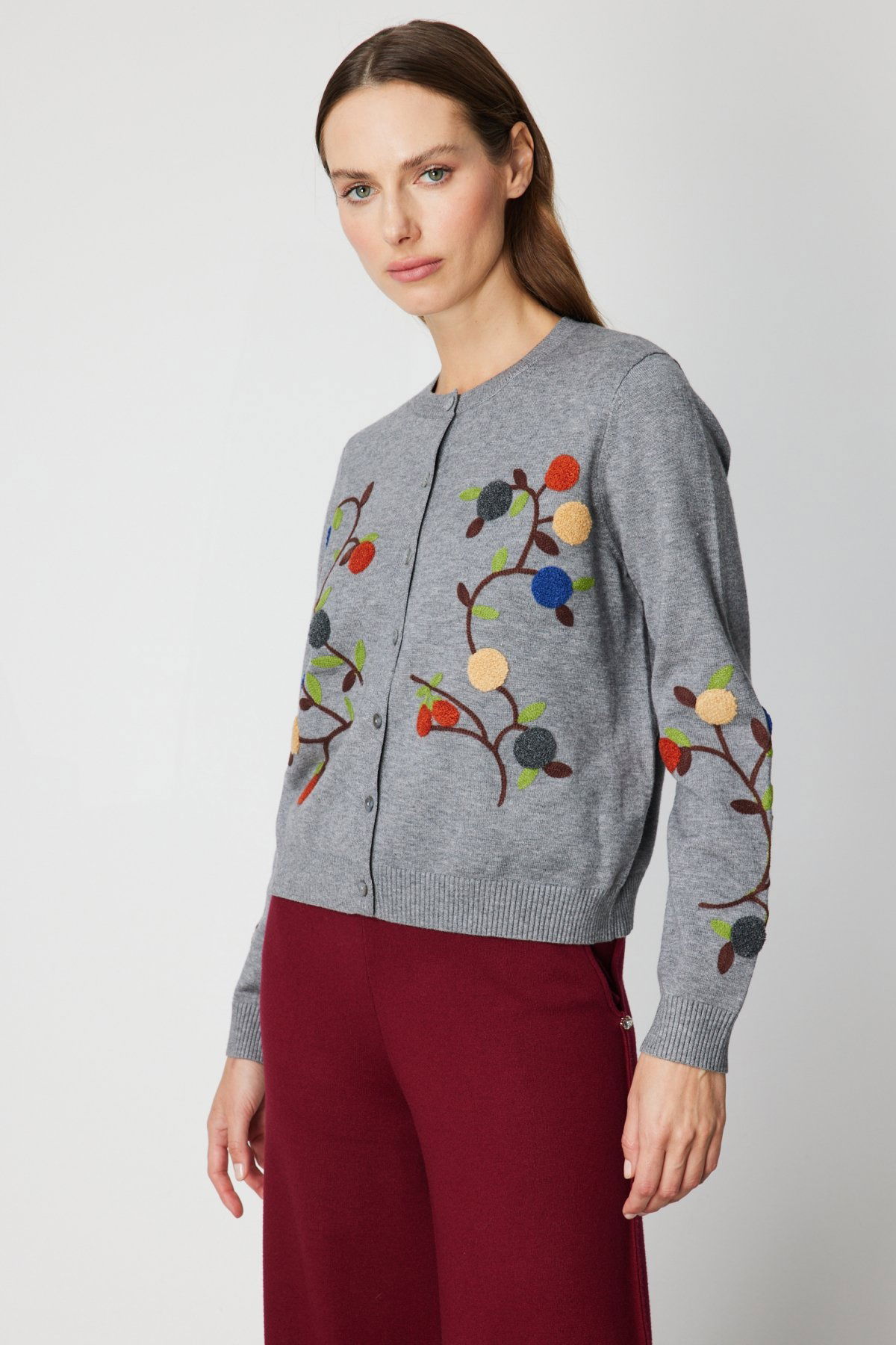 On Kadın Sıfır Yaka İşlemeli Triko Hırka 60940 Gri