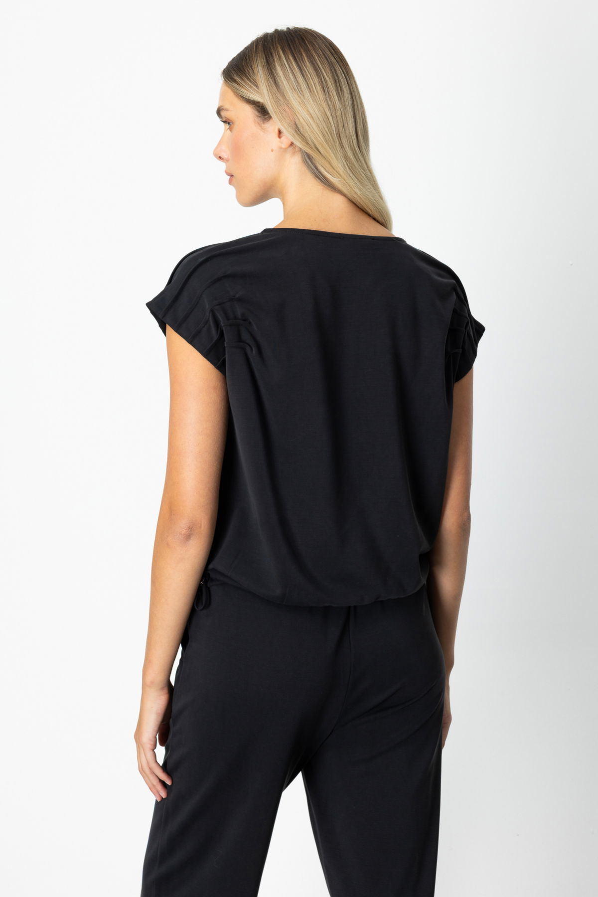 On Kadın Sıfır Yaka Kolları Dikişli Bluz 66355 Siyah