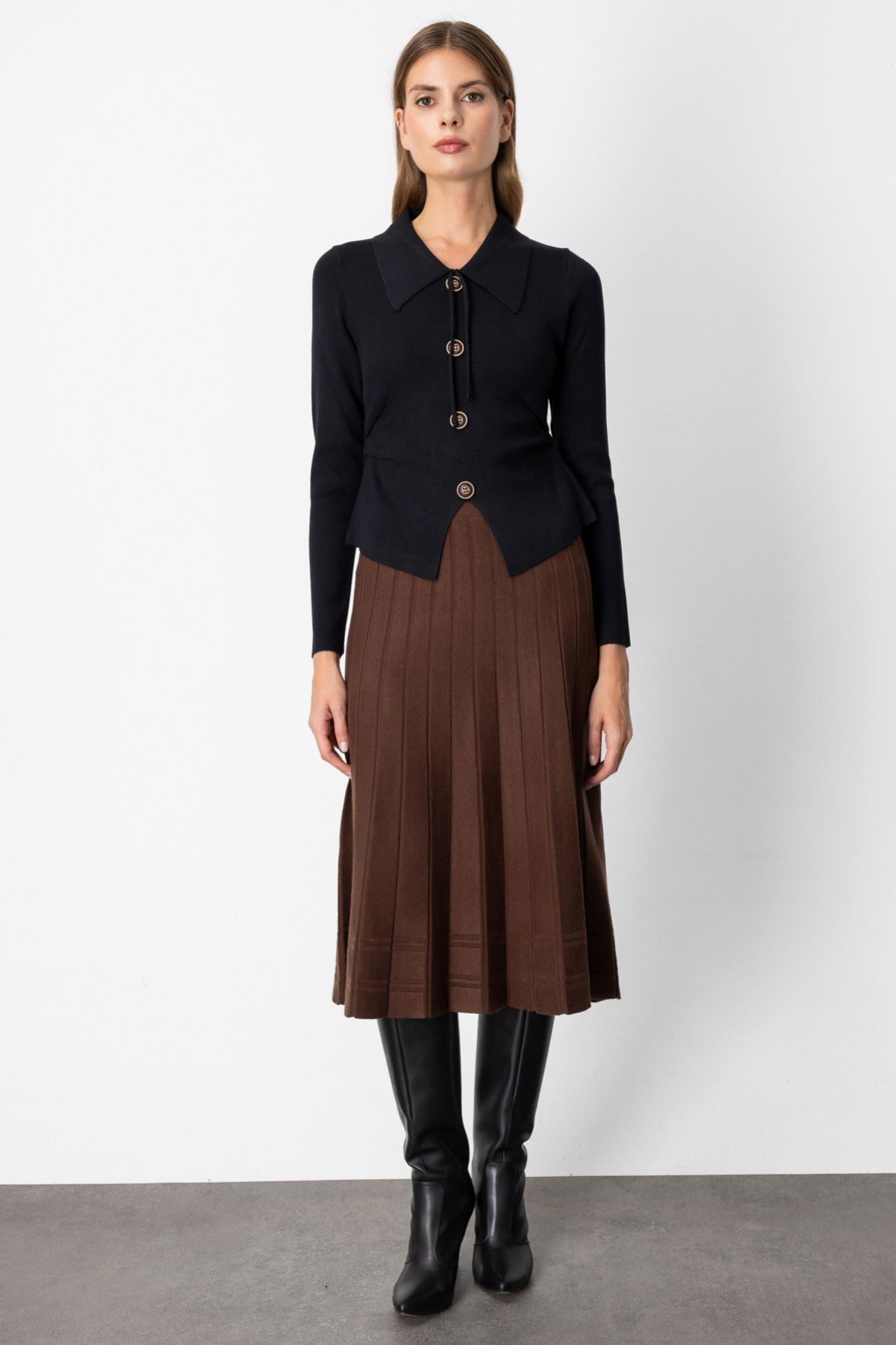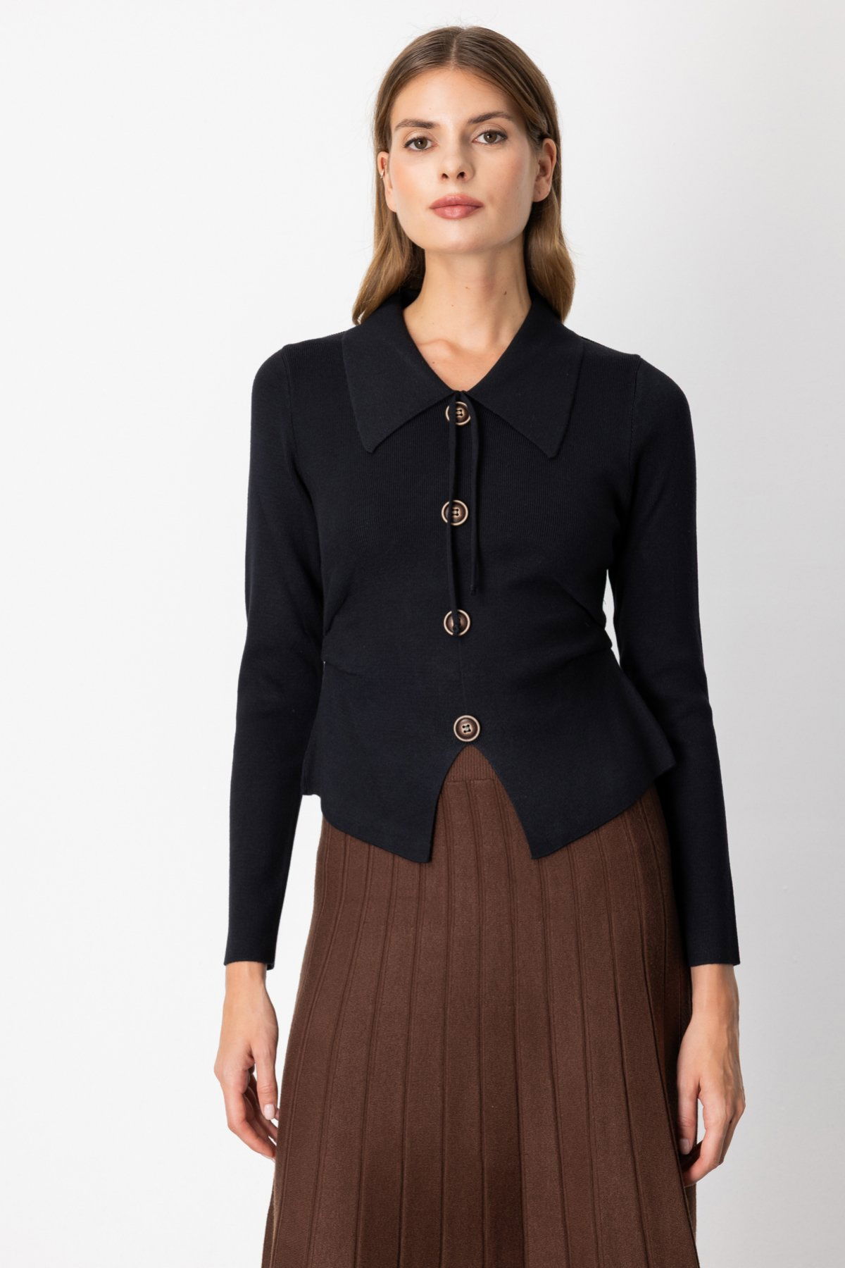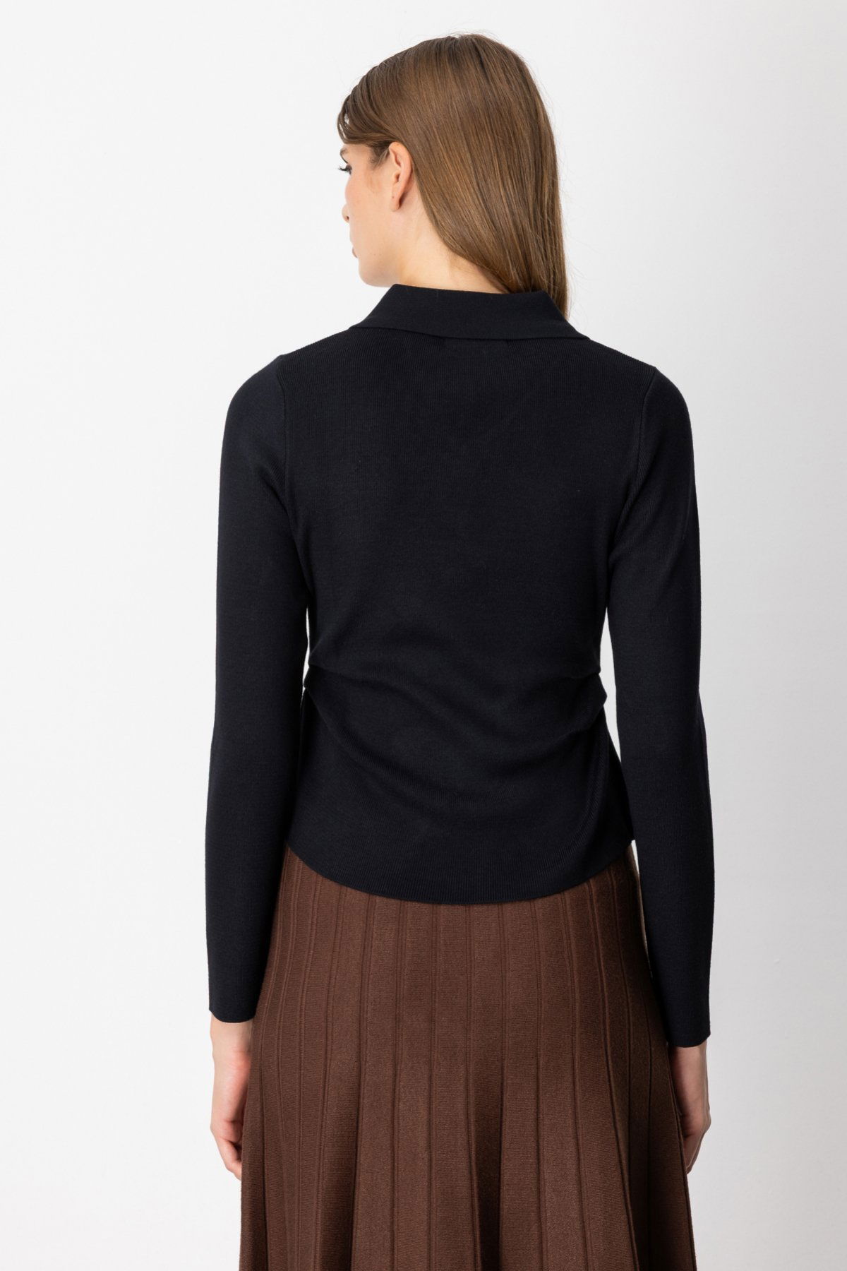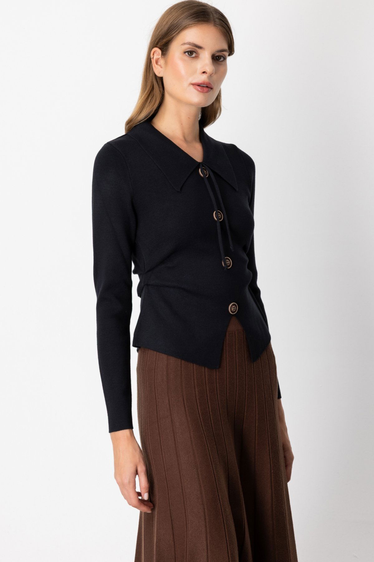 On Kadın Süs Düğmeli Büzgü Detaylı Triko Kazak 65353 Siyah