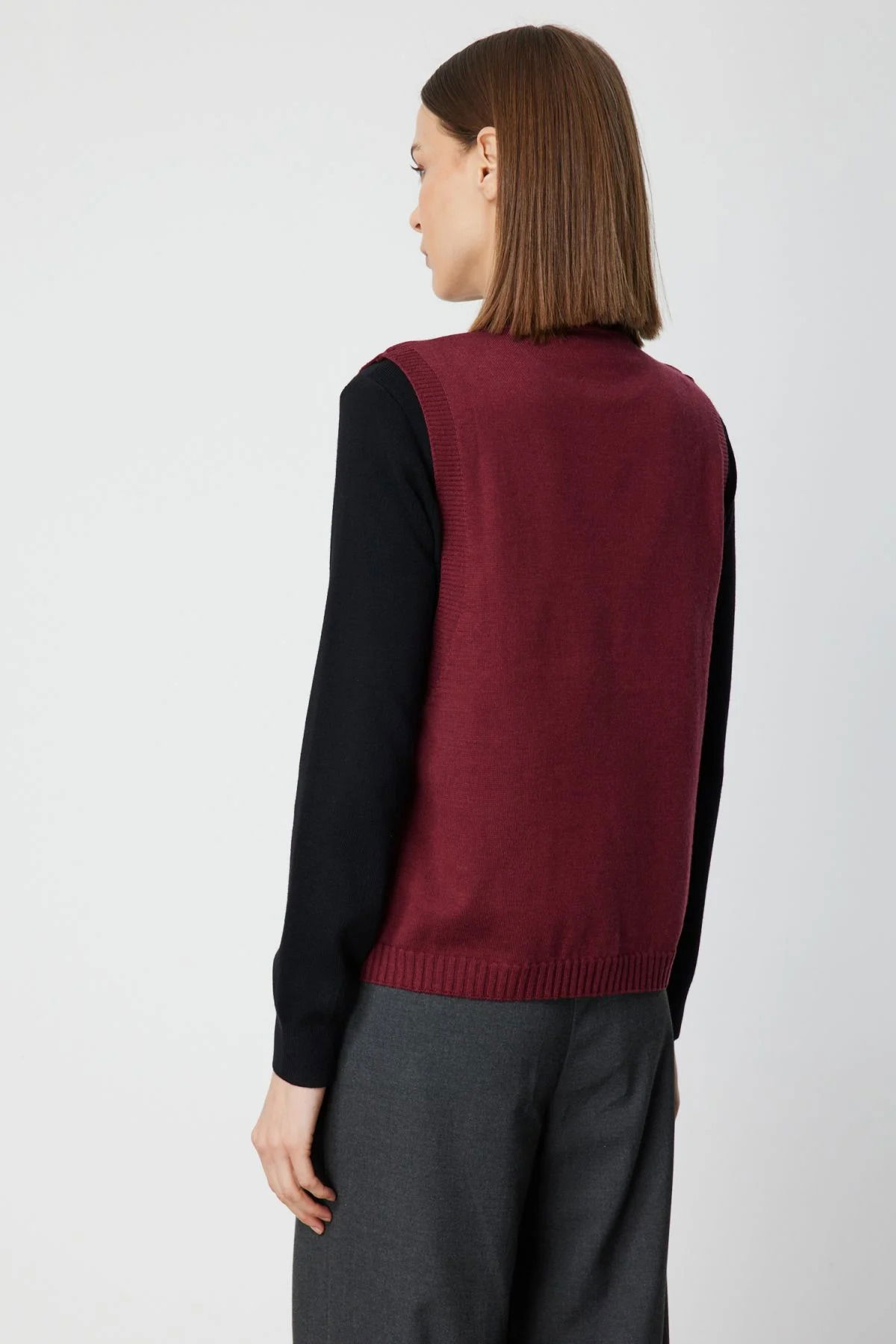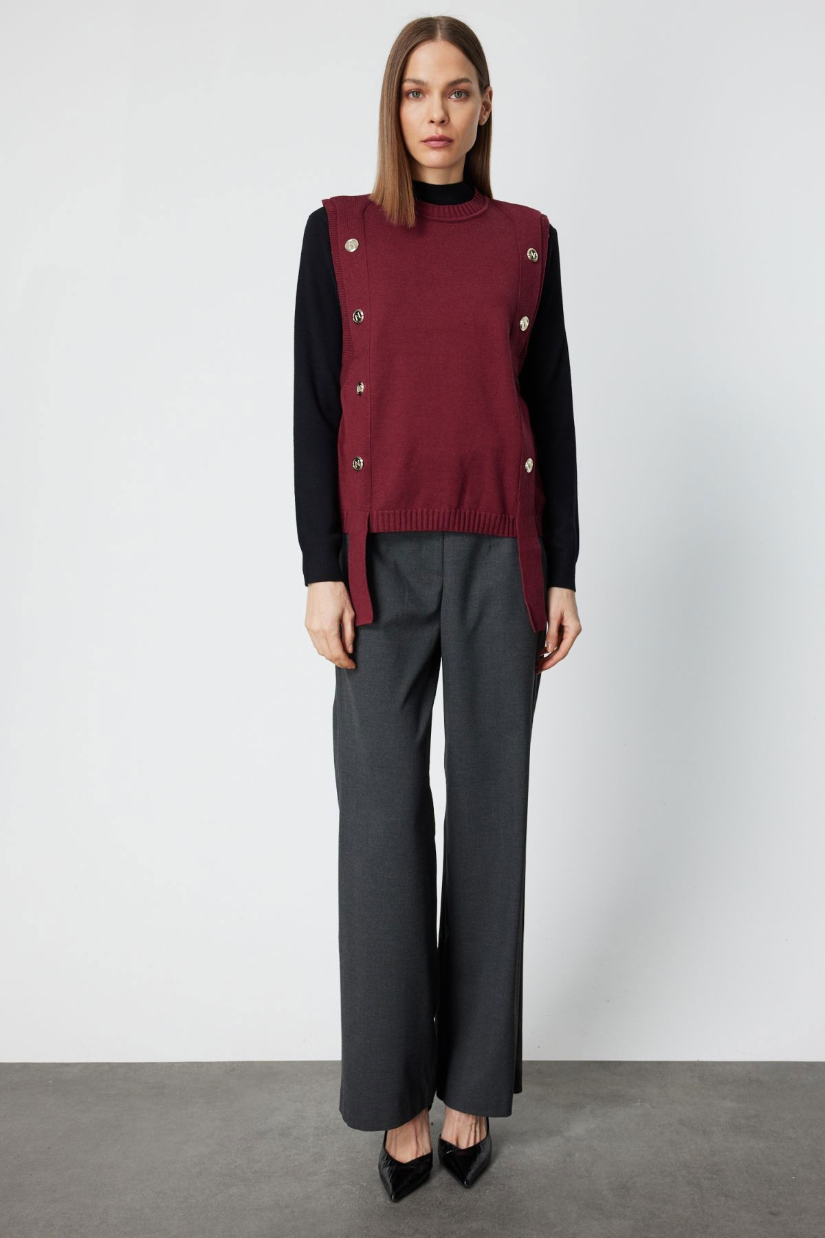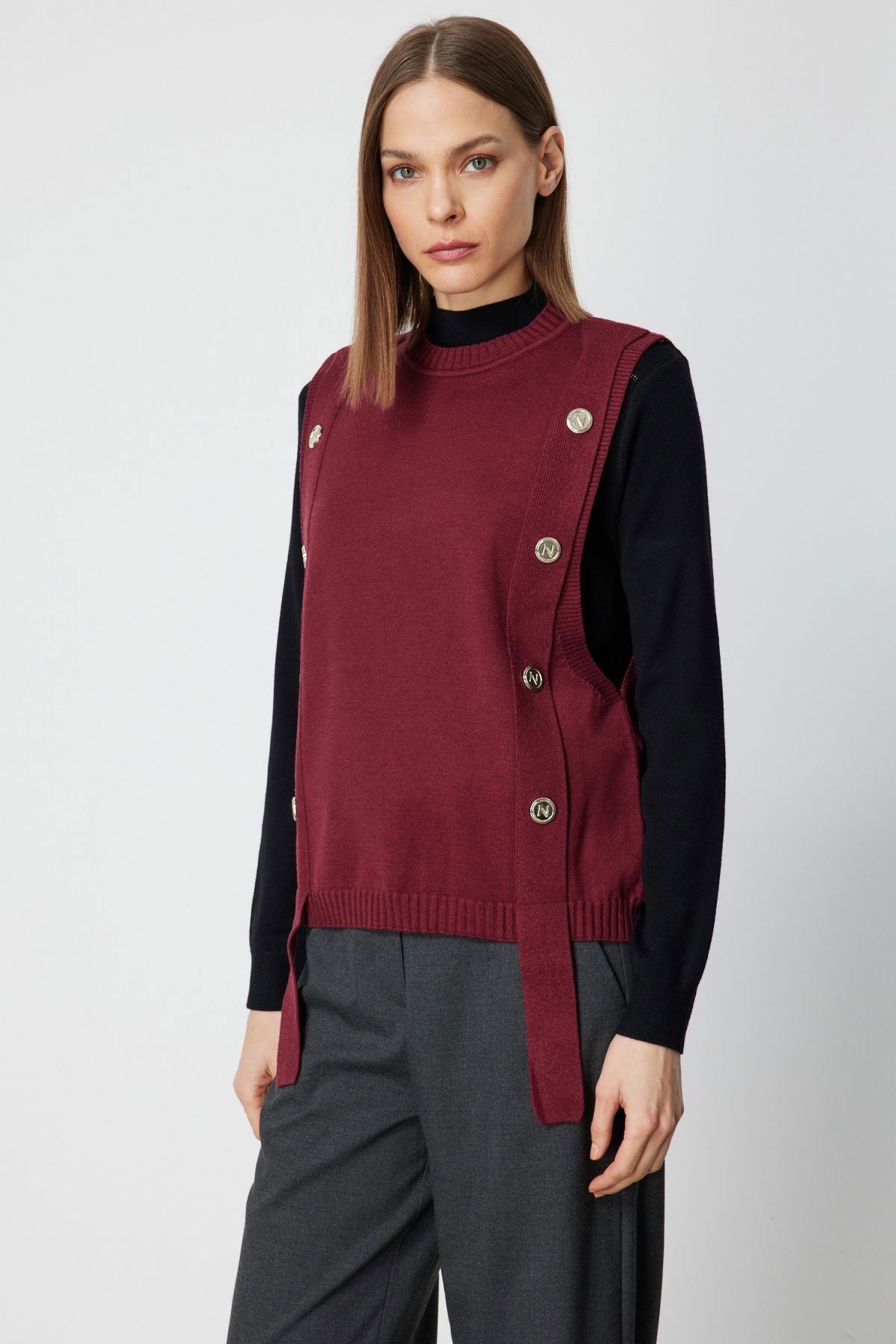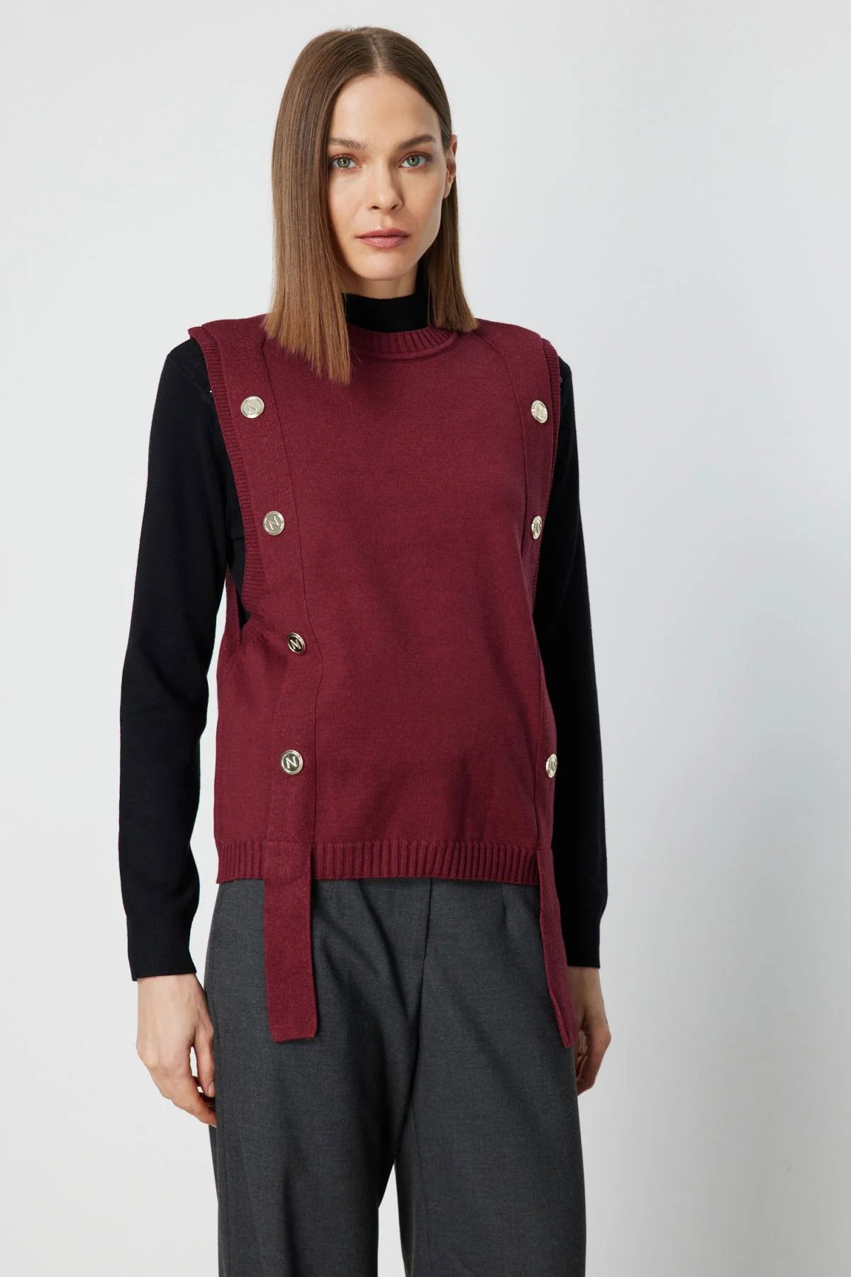 On Kadın Süs Düğmeli Sıfır Yaka Süveter 69310 Bordo