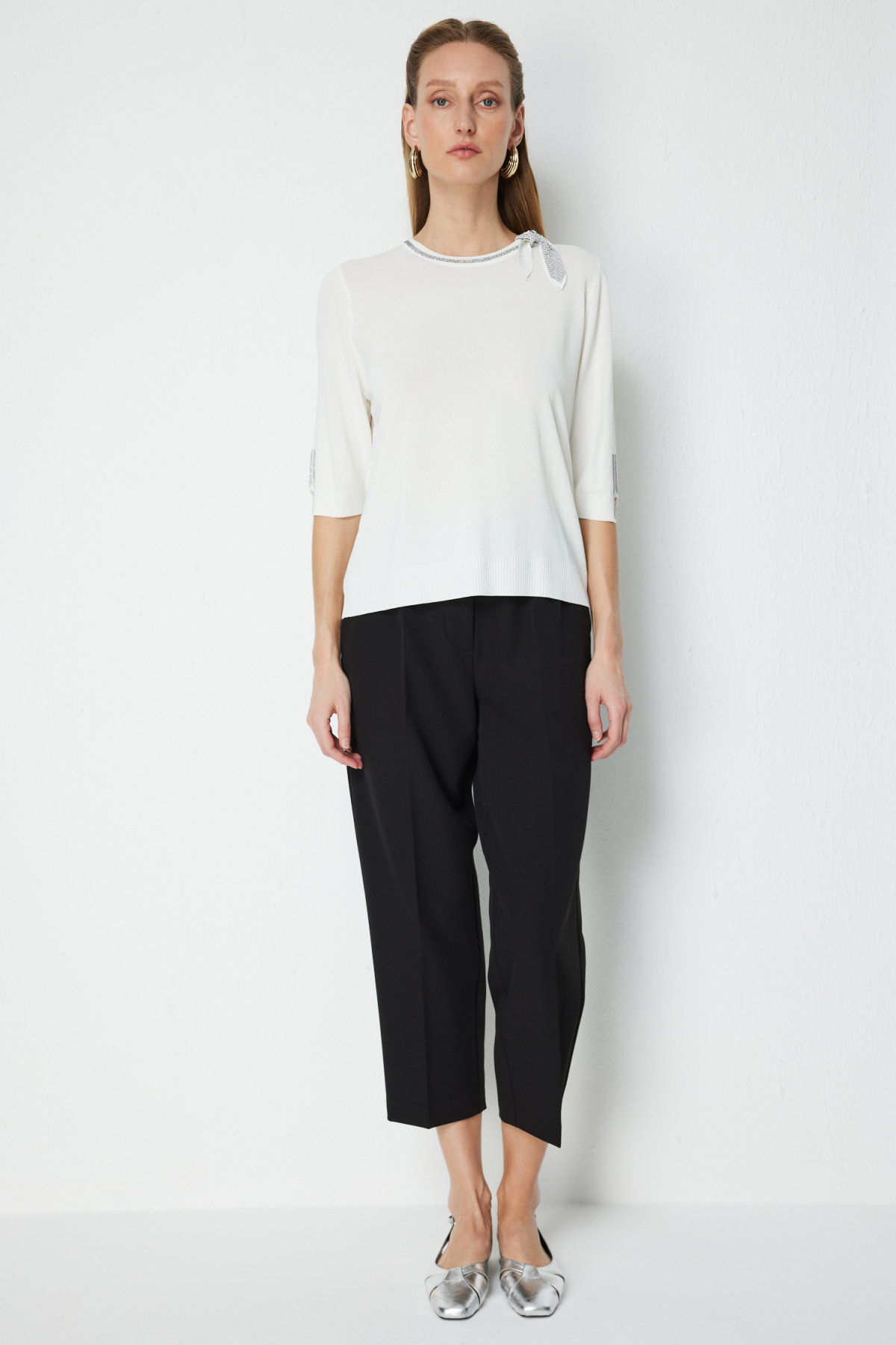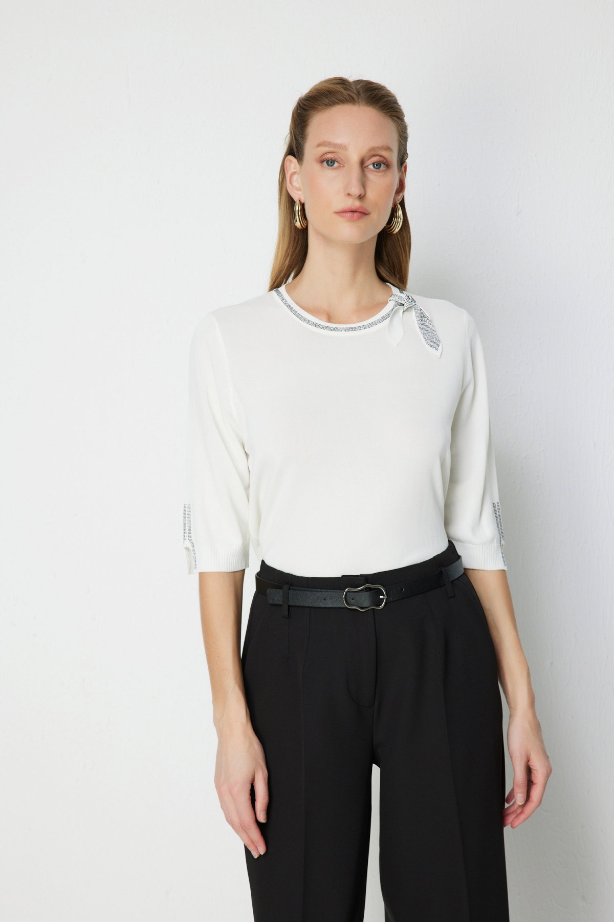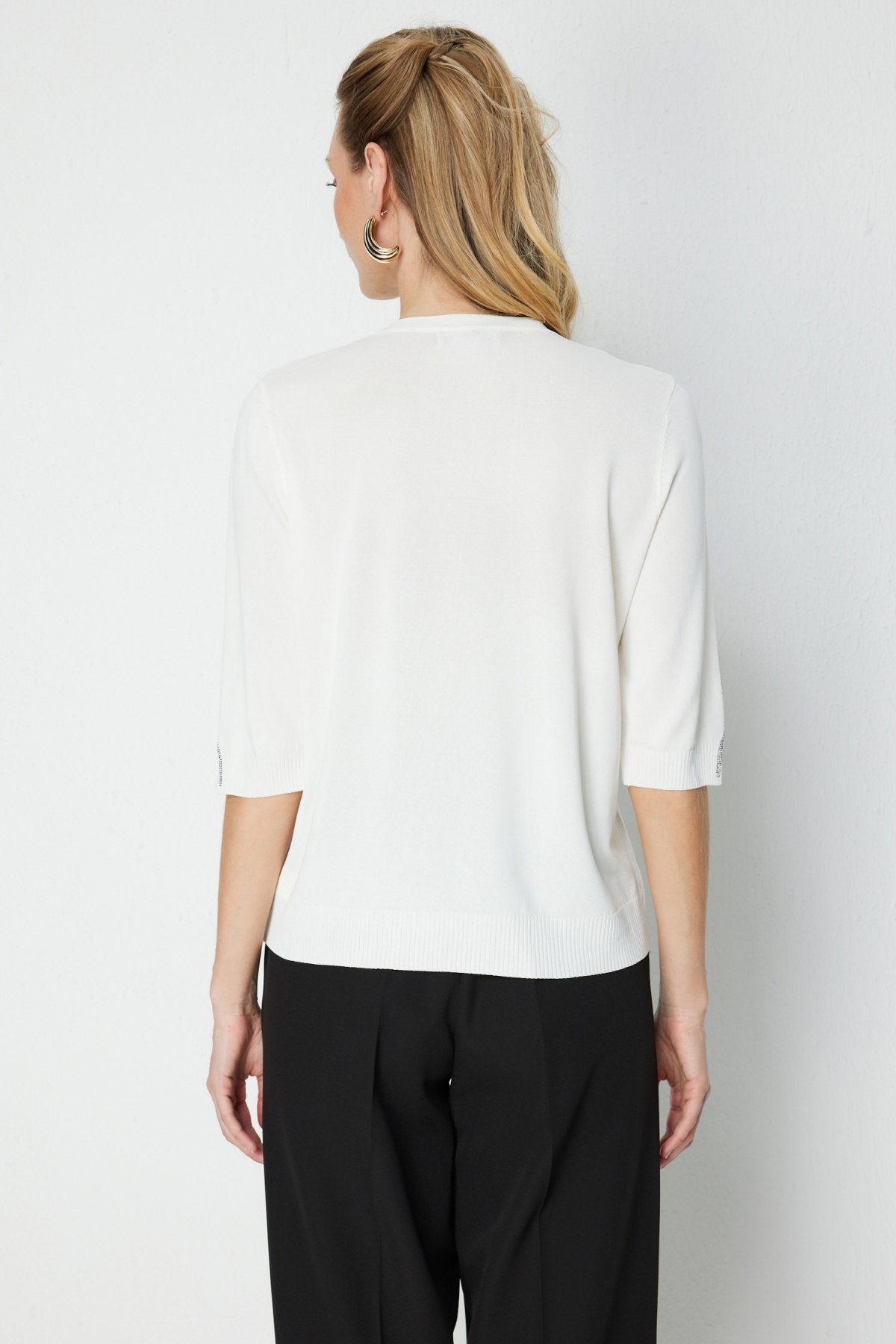 Detay: Sıfır yaka tasarımlı, kısa kollu, dokuma kumaştan ve astarsız bu bluz sade ve modern bir görünüm sunar. Hafif yapısı sayesinde gün boyu konforlu bir kullanım sağlarken sıfır yaka detayı minimalist bir şıklık kazandırır. Kısa kollu formu ise yaz aylarında serin ve rahat bir tercih olarak öne çıkar;