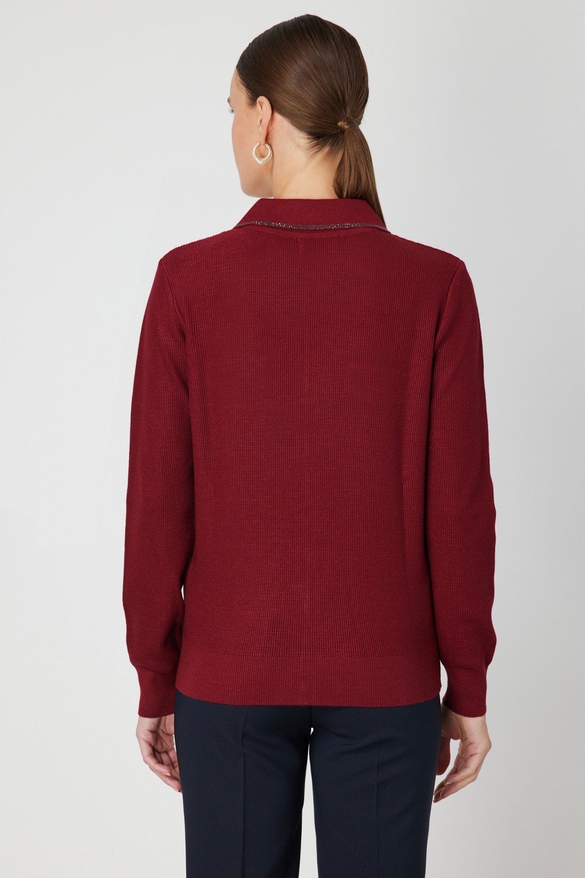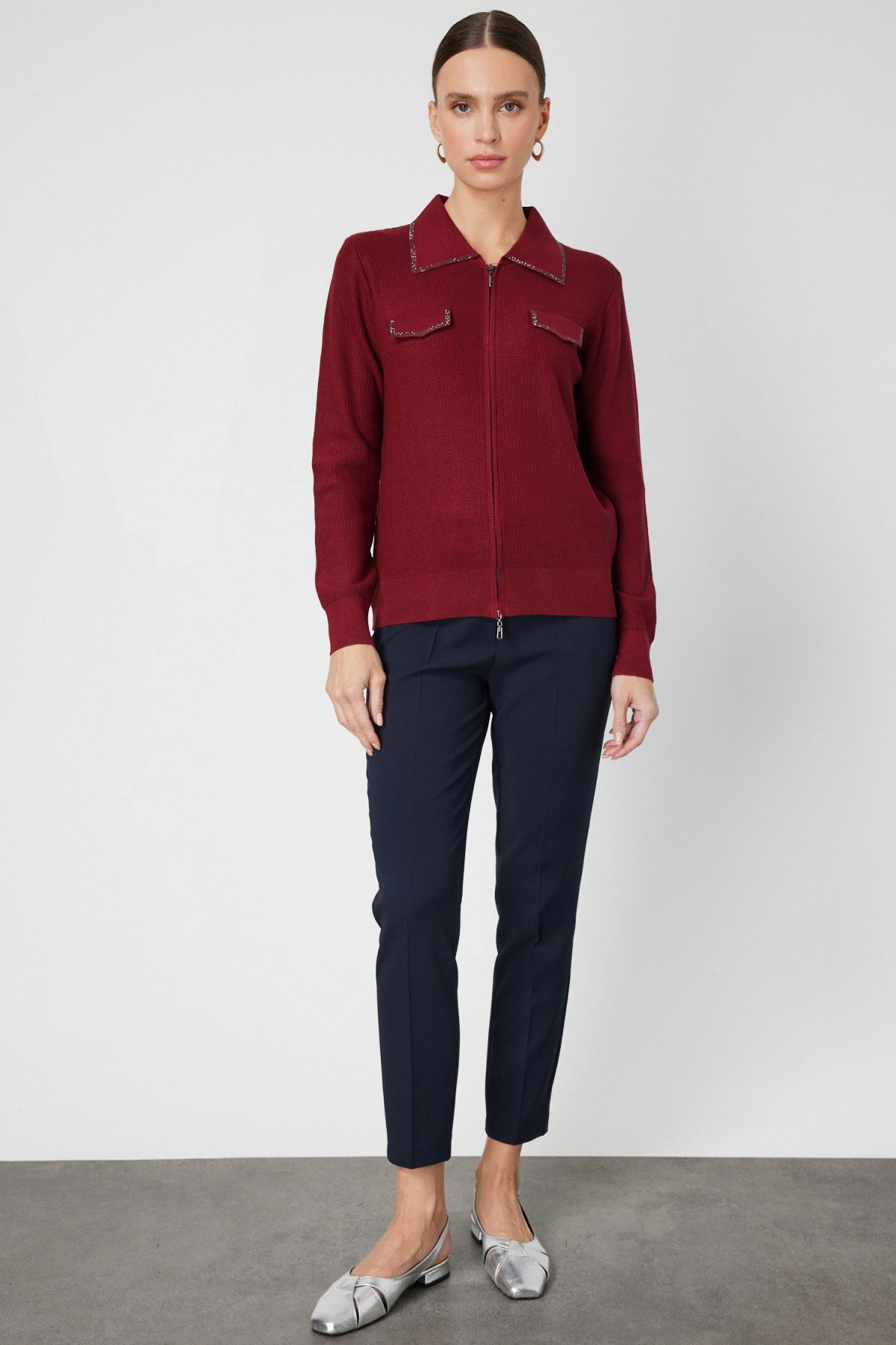 Detay: Polo yaka tasarımıyla klasik şıklığı modern bir çizgiyle buluşturan bu triko hırka, astarsız yapısıyla hafif ve konforlu bir kullanım sunar. Uzun kollu formu sayesinde serin havalarda ideal koruma sağlarken, fermuarlı kapama detayı pratiklik ve stil kazandırır. Günlük kombinlerden ofis stiline kadar geniş bir kullanım alanı sunan bu hırka, gardırobunuzun vazgeçilmez parçalarından biri olmaya adaydır;