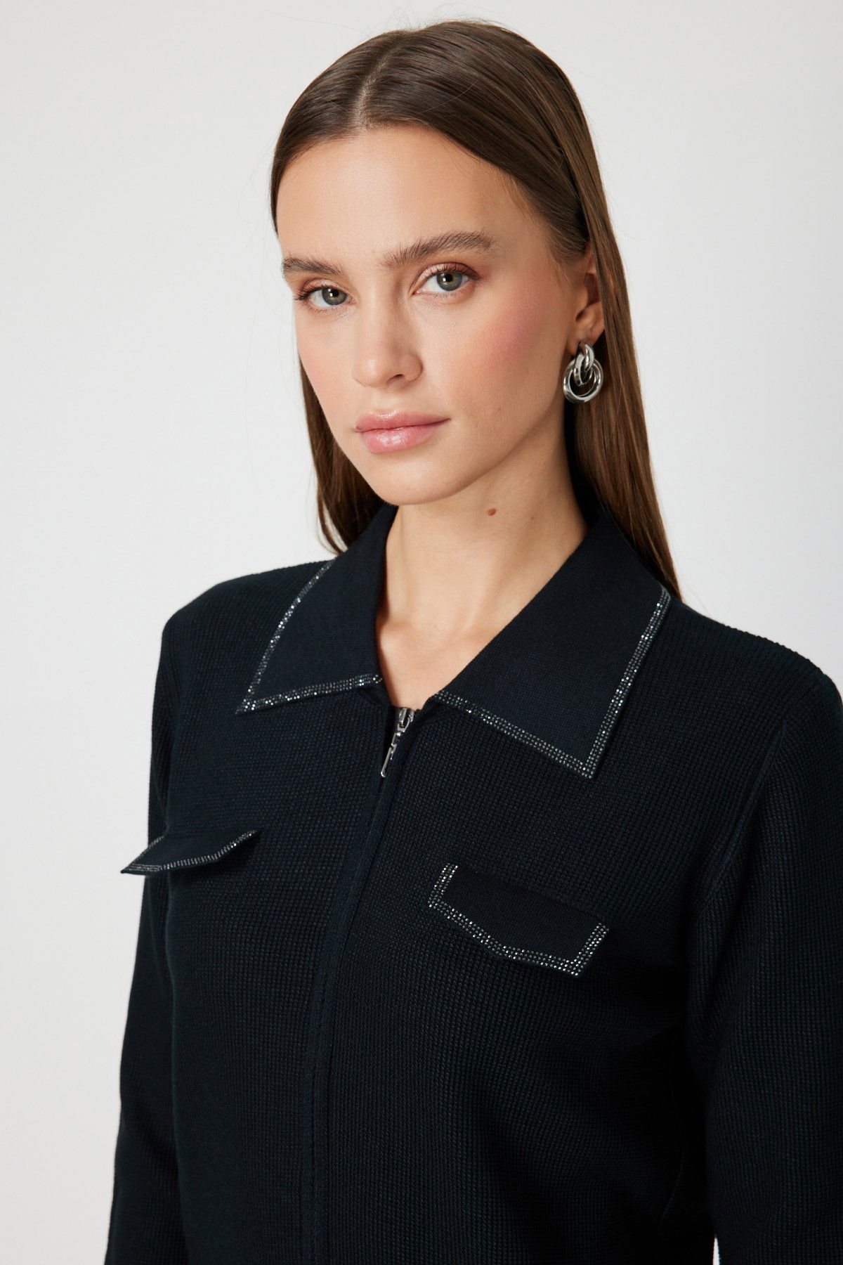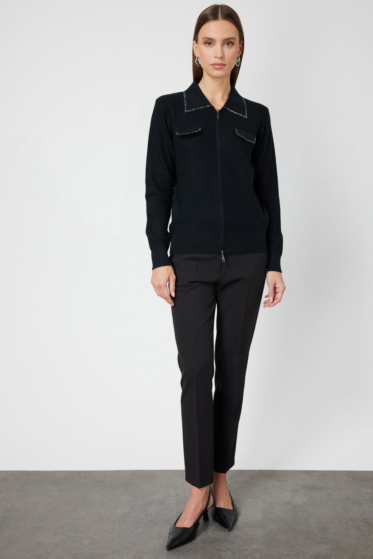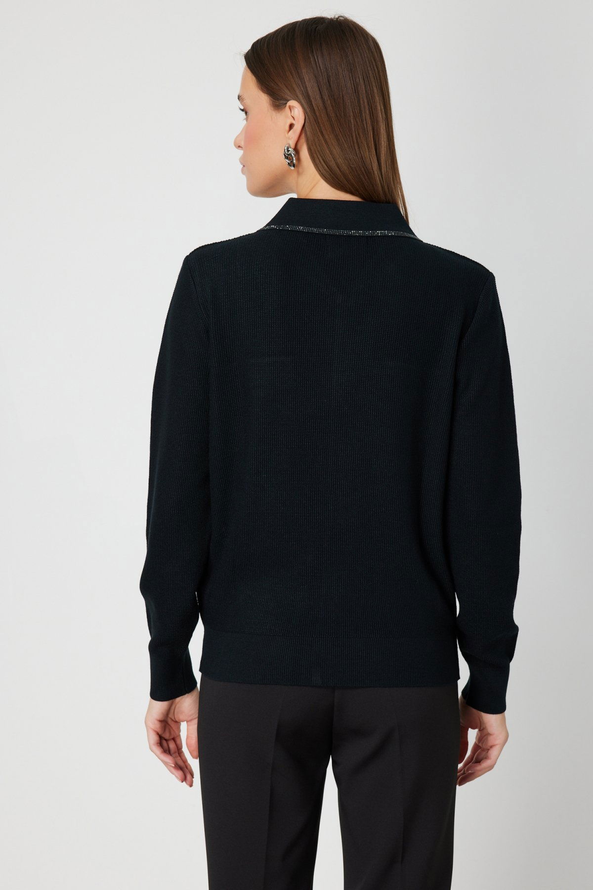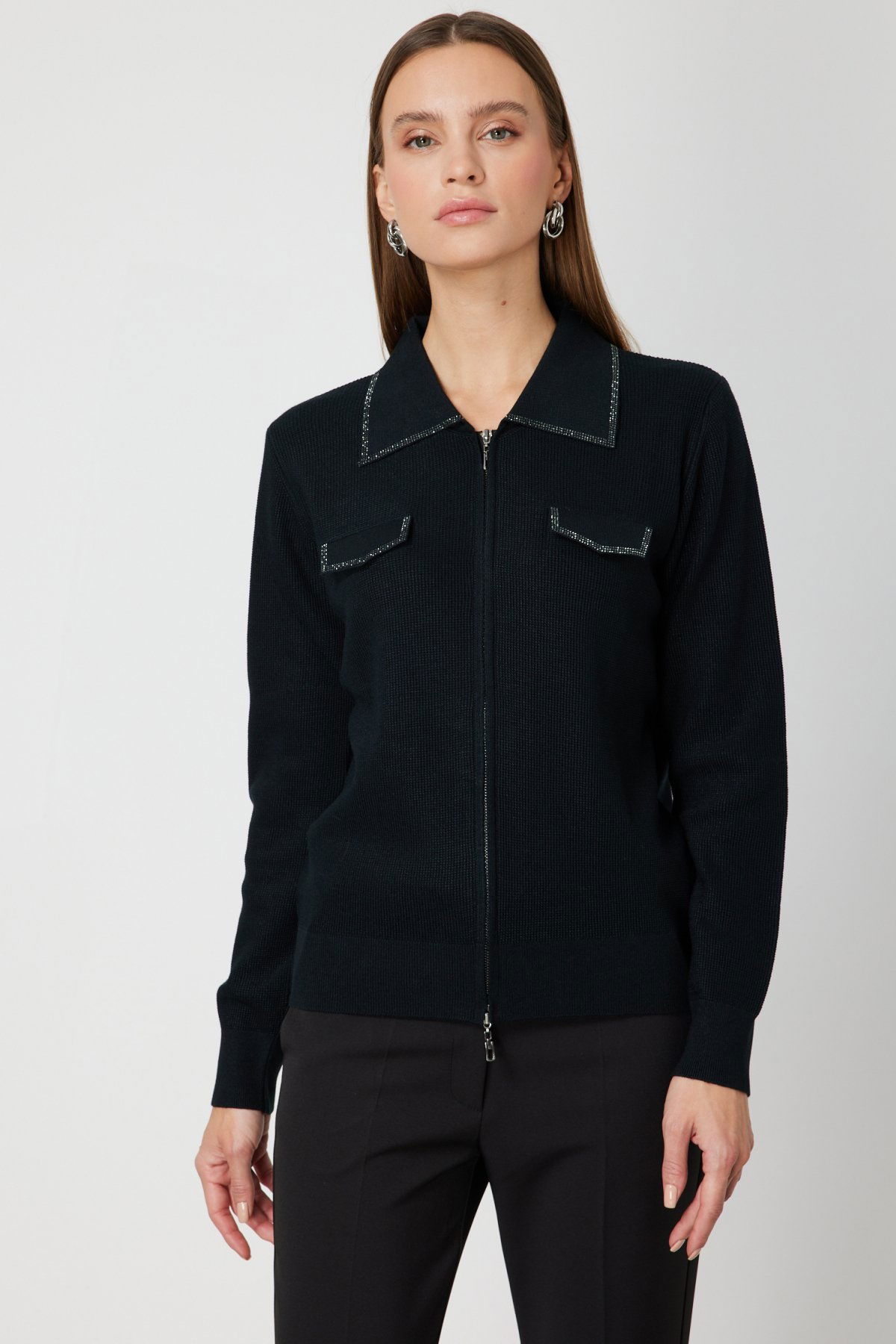 On Kadın Taş İşlemeli Triko Hırka 65926 Siyah