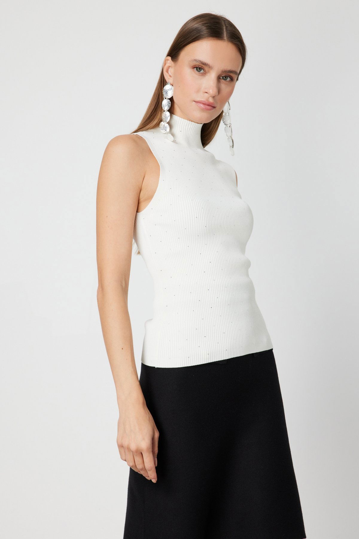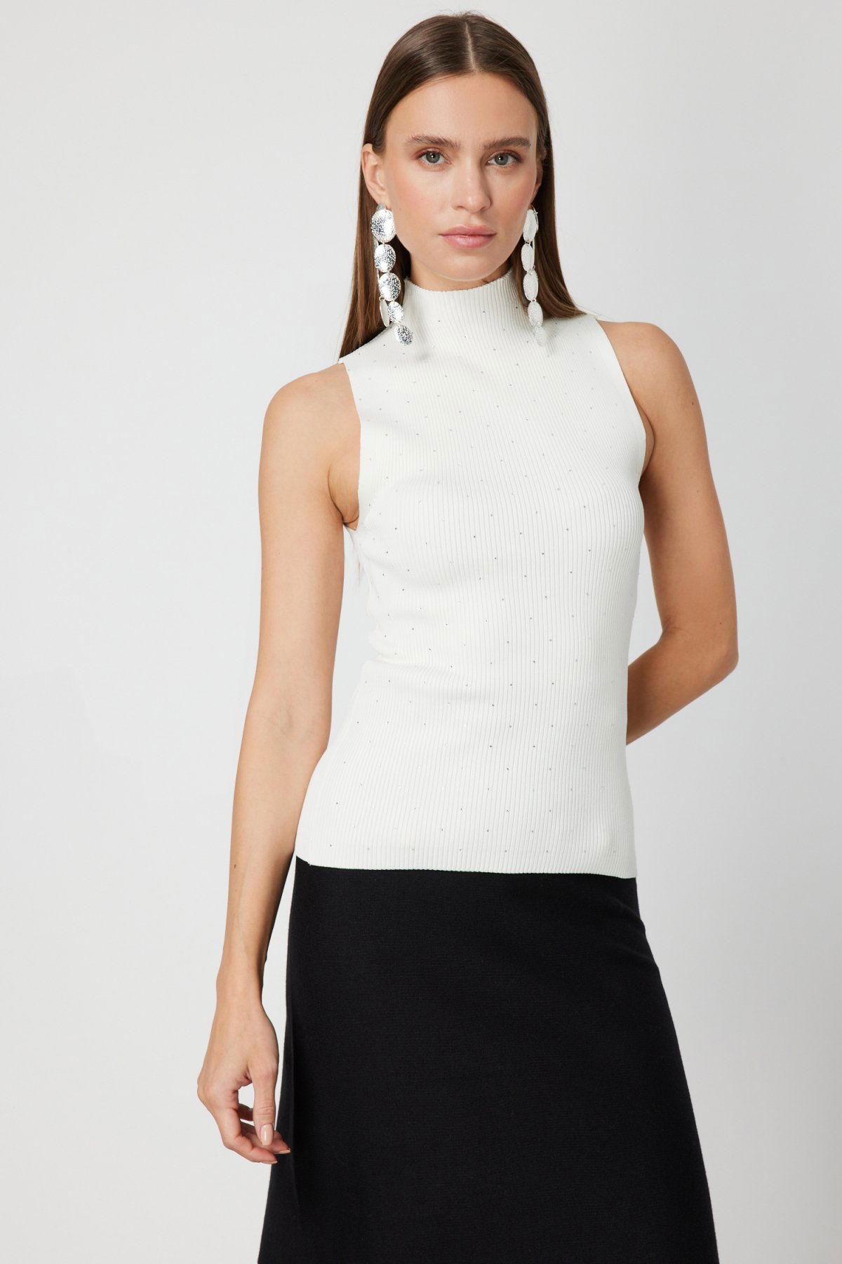 On Kadın Taşlı Kolsuz Triko Bluz 66375 Krem