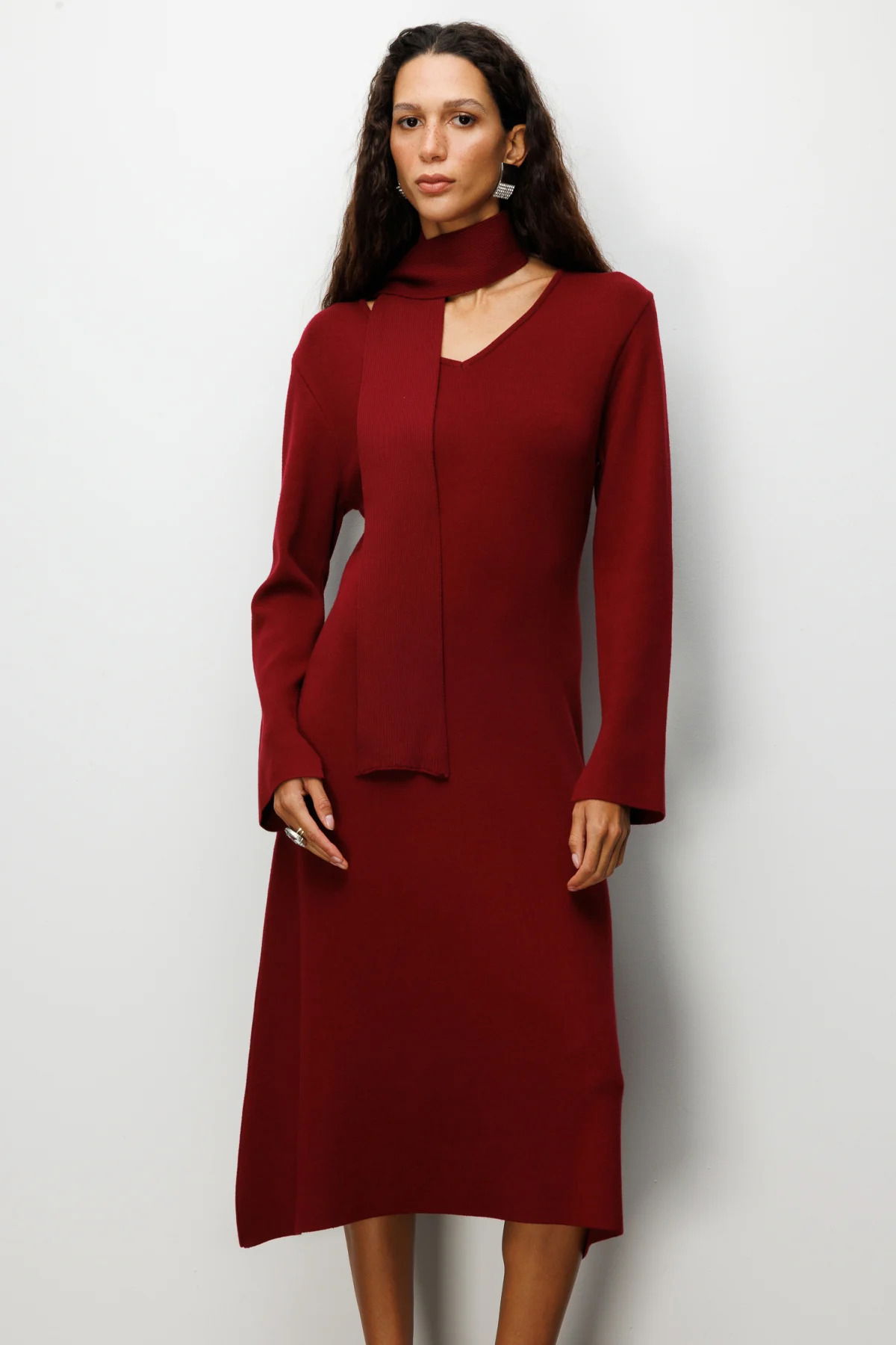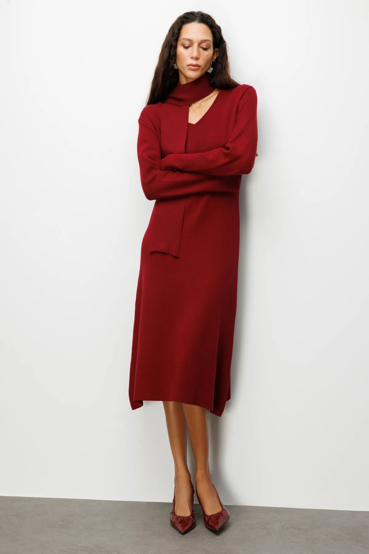 Detay: Triko kumaşlı, astarsız ve V yaka tasarımıyla öne çıkan uzun kollu kuşaklı elbise, şıklığı ve rahatlığı bir arada sunar. Bel hattını vurgulayan kuşak detayı sayesinde zarif bir siluet oluştururken, triko dokusu konforlu bir kullanım sağlar. Modern ve feminen tarzı ile kuşaklı triko elbise, günlük kombinlerden özel davetlere kadar her ortamda stilinizi tamamlar;