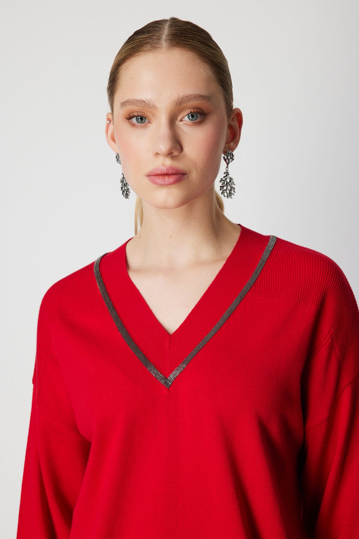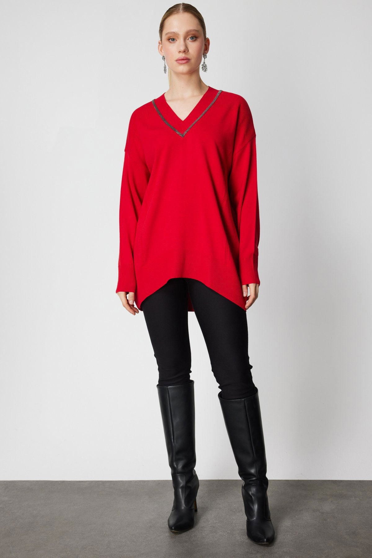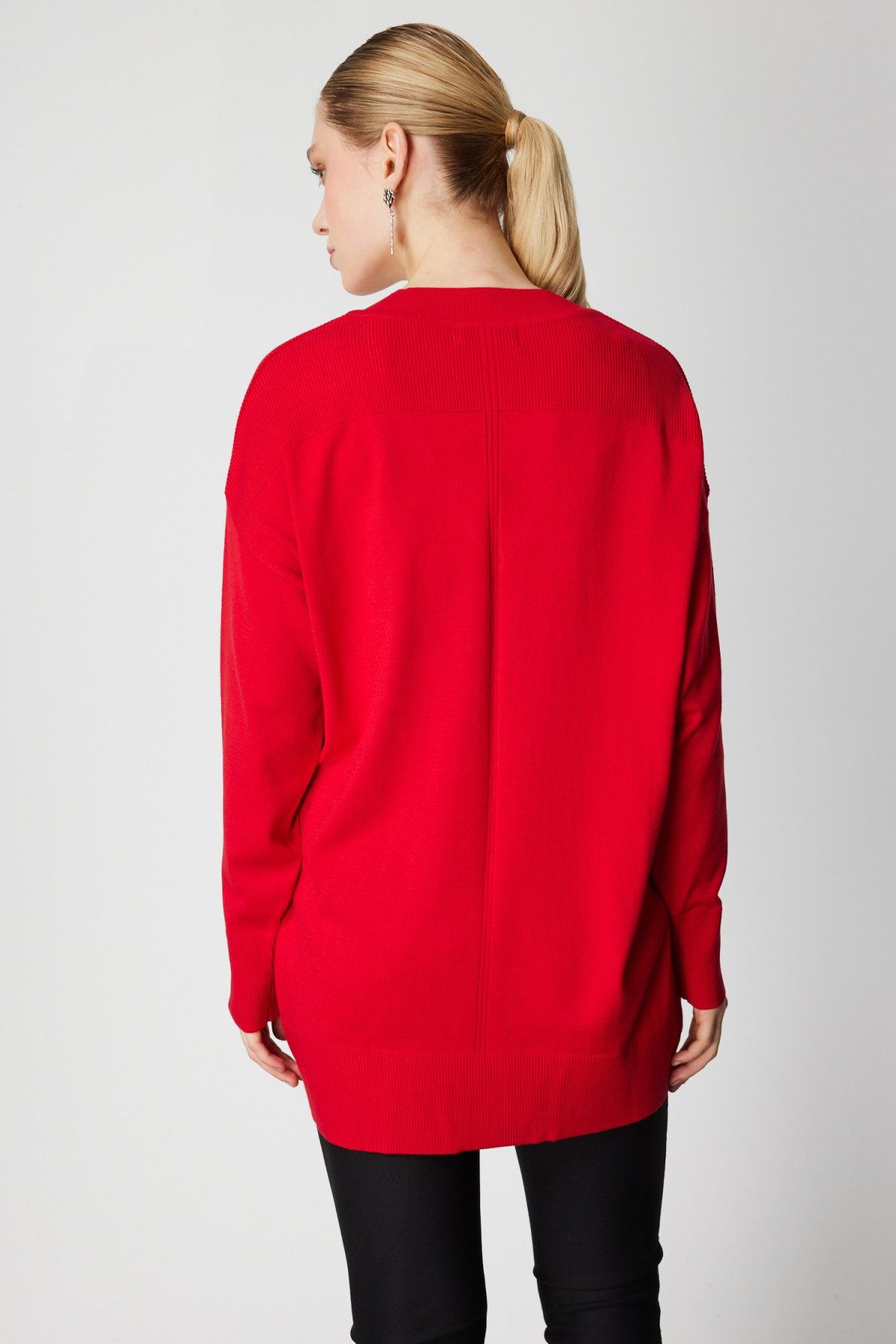 Detay: V yaka detayıyla zarif bir görünüm sunan bu uzun kollu triko parça, astarsız yapısıyla hafiflik ve rahatlık sağlar. Yumuşak dokusu sayesinde gün boyu konfor sunarken, sade şıklığıyla günlük stilinize modern bir dokunuş katar;