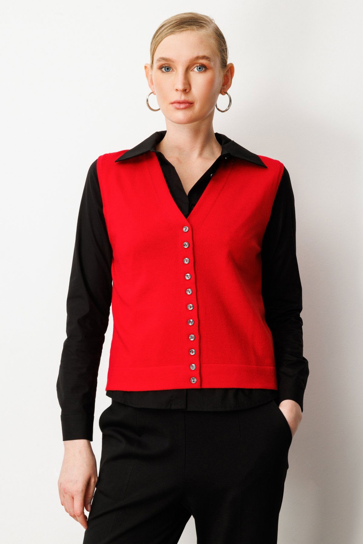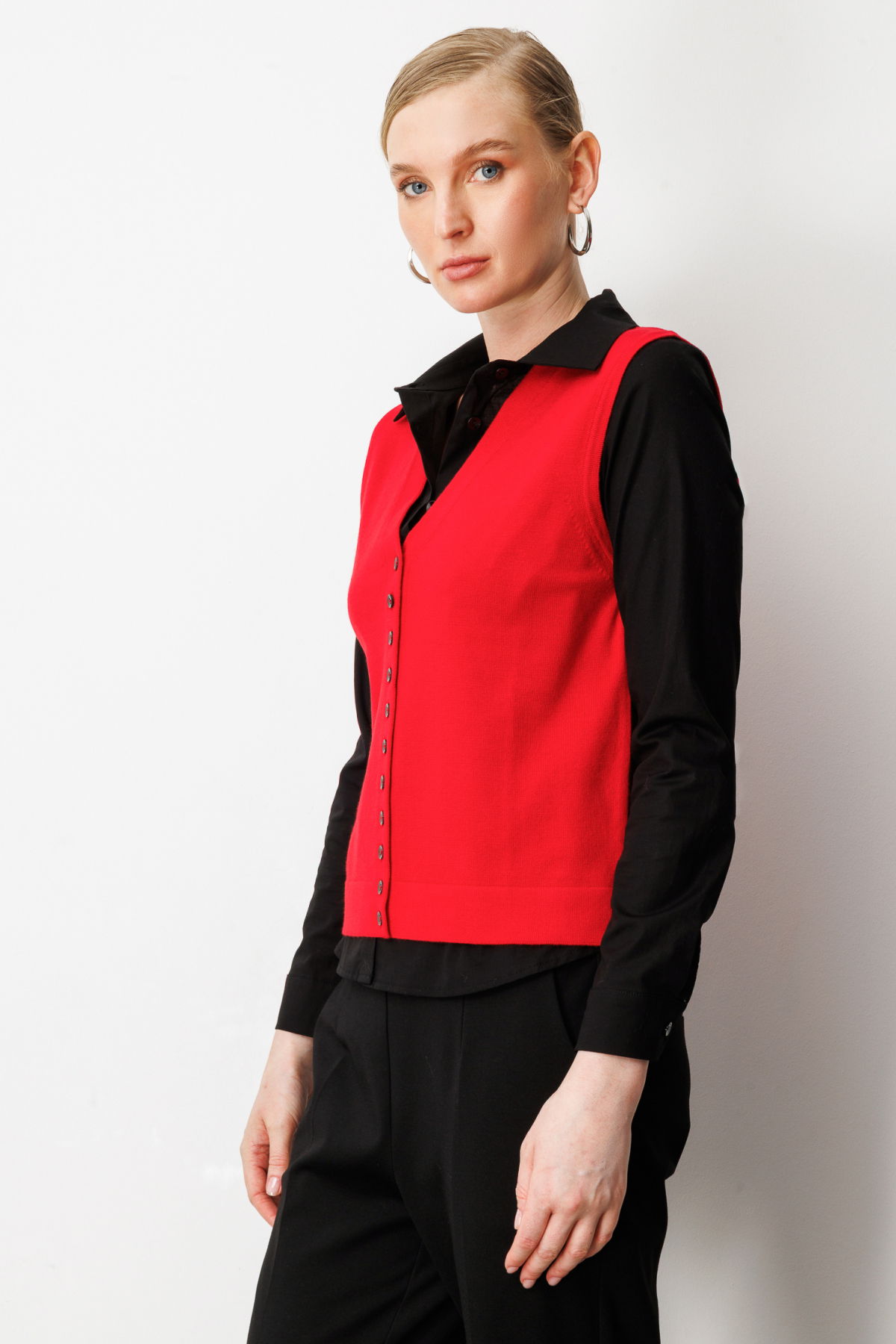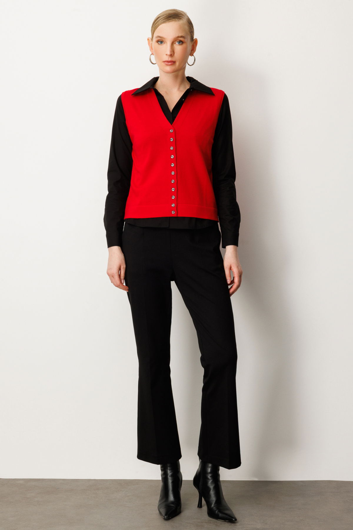 Detay: Astarsız triko kumaştan tasarlanmış bu kolsuz kol yelek, V yaka detayıyla feminen ve zarif bir duruş sergiliyor. Düğmeli kapama özelliğiyle klasik bir görünüm sunarken, hafif ve esnek triko dokusu sayesinde gün boyu konforlu bir kullanım sağlıyor. Minimal tasarımıyla hem günlük kombinlere hem de katmanlı giyime kolayca uyum sağlayan bu yelek, mevsim geçişlerinde stilinize şıklık katmak için ideal bir parça;