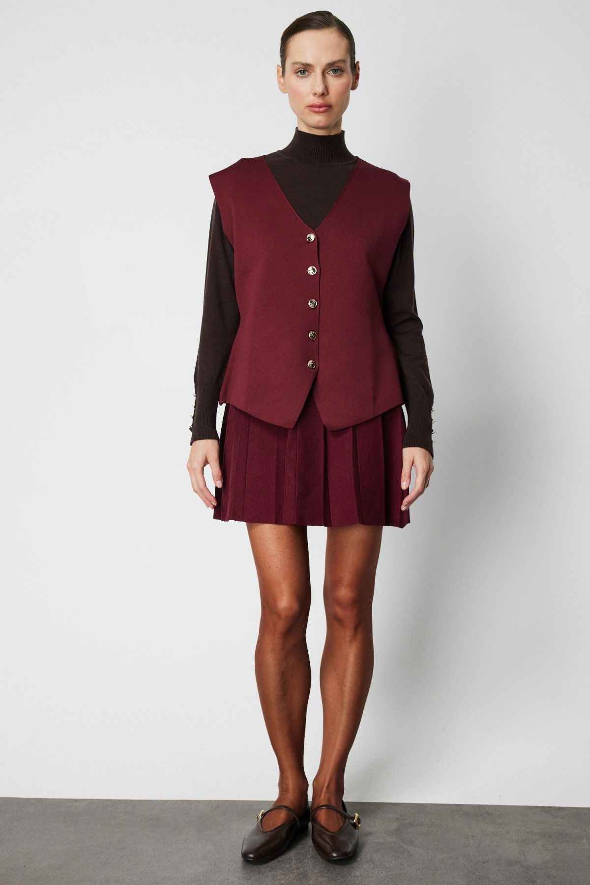 On Kadın V Yaka Triko Yelek 66915 Bordo