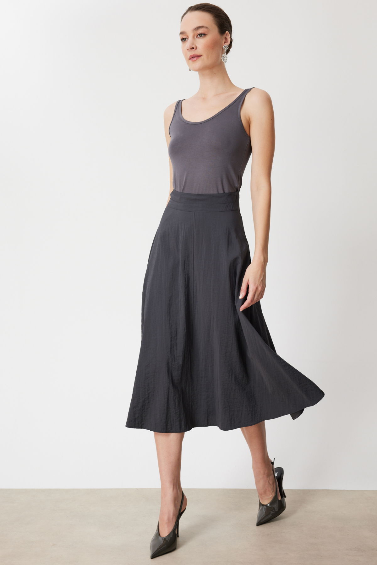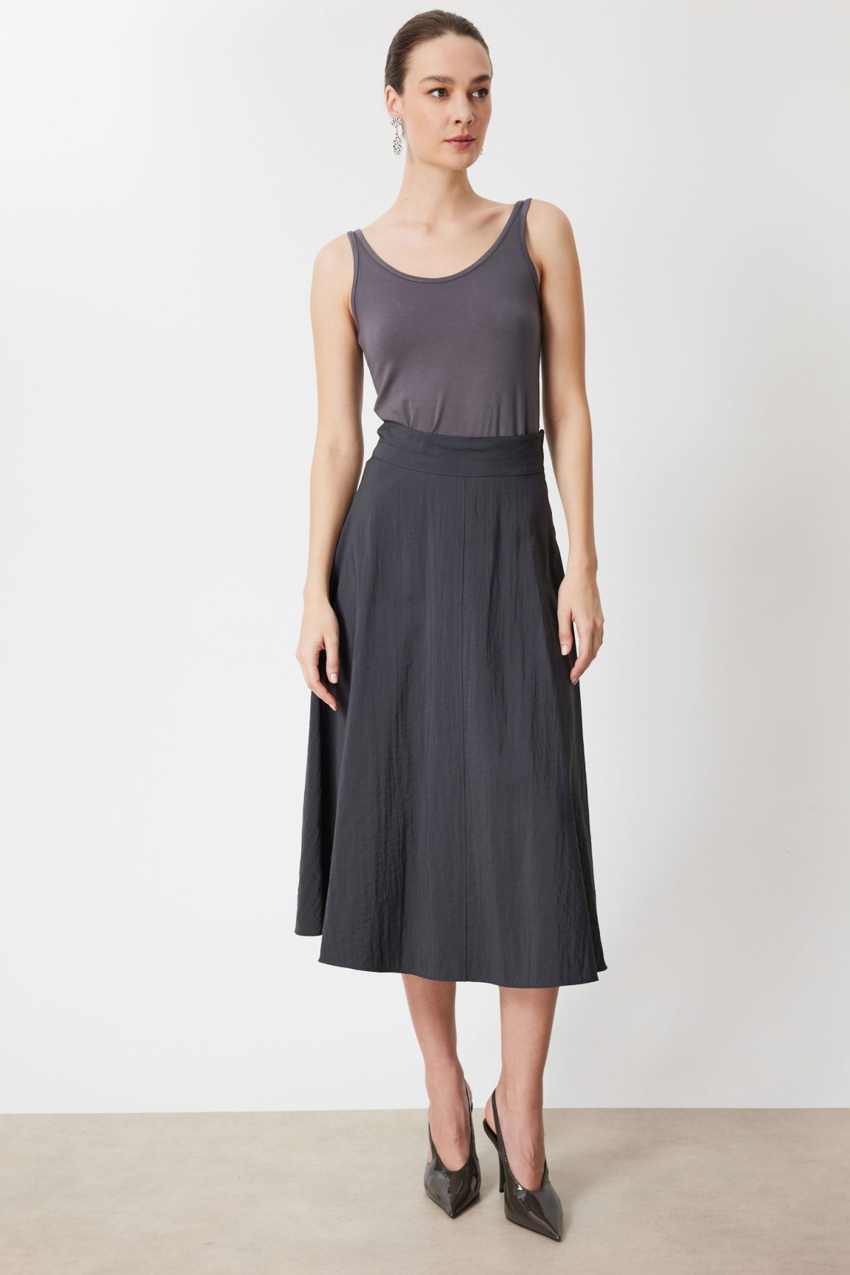 Detay: Dokuma kumaştan üretilen bu maxi etek, astarsız yapısıyla hafif ve rahat bir kullanım sunar. Fermuarlı kapama detayı pratiklik sağlarken modern bir görünüm kazandırır. Maxi boyu ise feminen ve zarif bir duruş oluşturur. Günlük kombinlerden özel davetlere kadar şıklığınızı tamamlayacak sofistike bir parça olarak öne çıkar;
