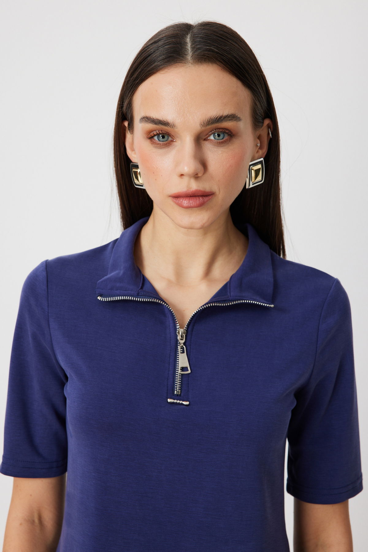 On Kadın Yakası Fermuarlı Kısa Kollu Bluz 76305 Indigo