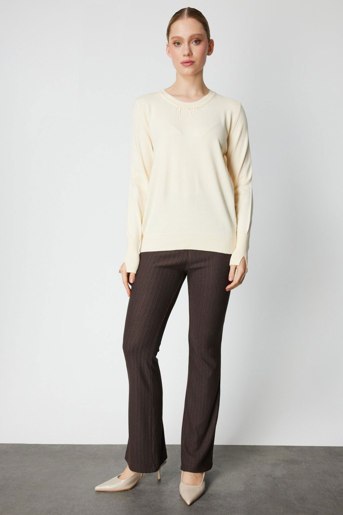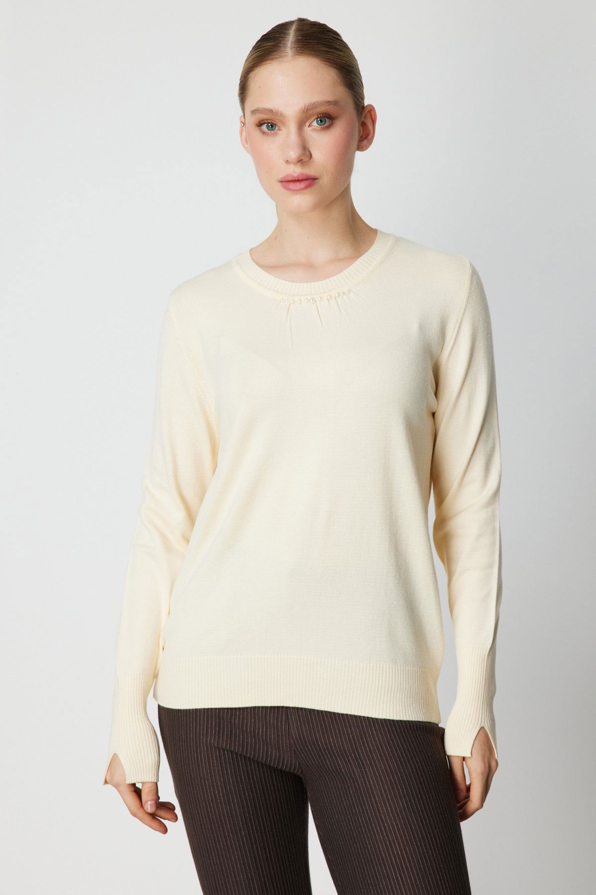 Detay: Sıfır yaka tasarımıyla sade ve modern bir görünüm sunan bu uzun kollu triko kazak, astarsız yapısıyla hafiflik ve gün boyu konfor sağlar. Yumuşak dokusu sayesinde mevsim geçişlerinde ideal bir tercih olan bu parça, günlük stilinize zarif bir dokunuş katar;