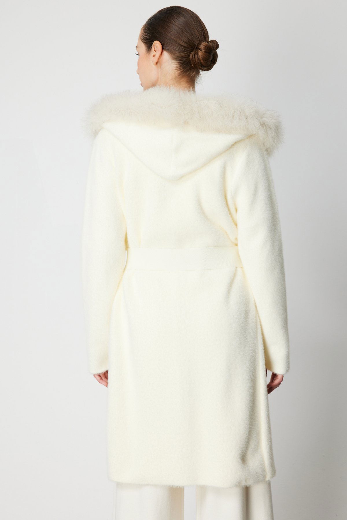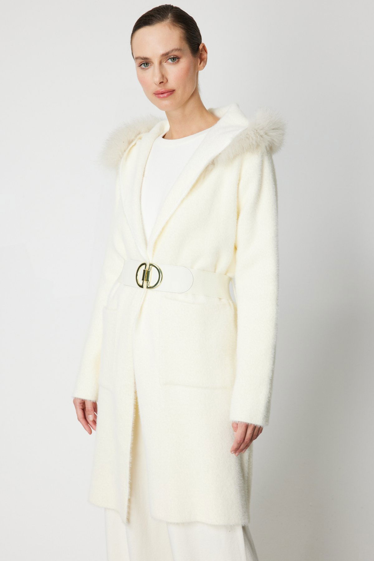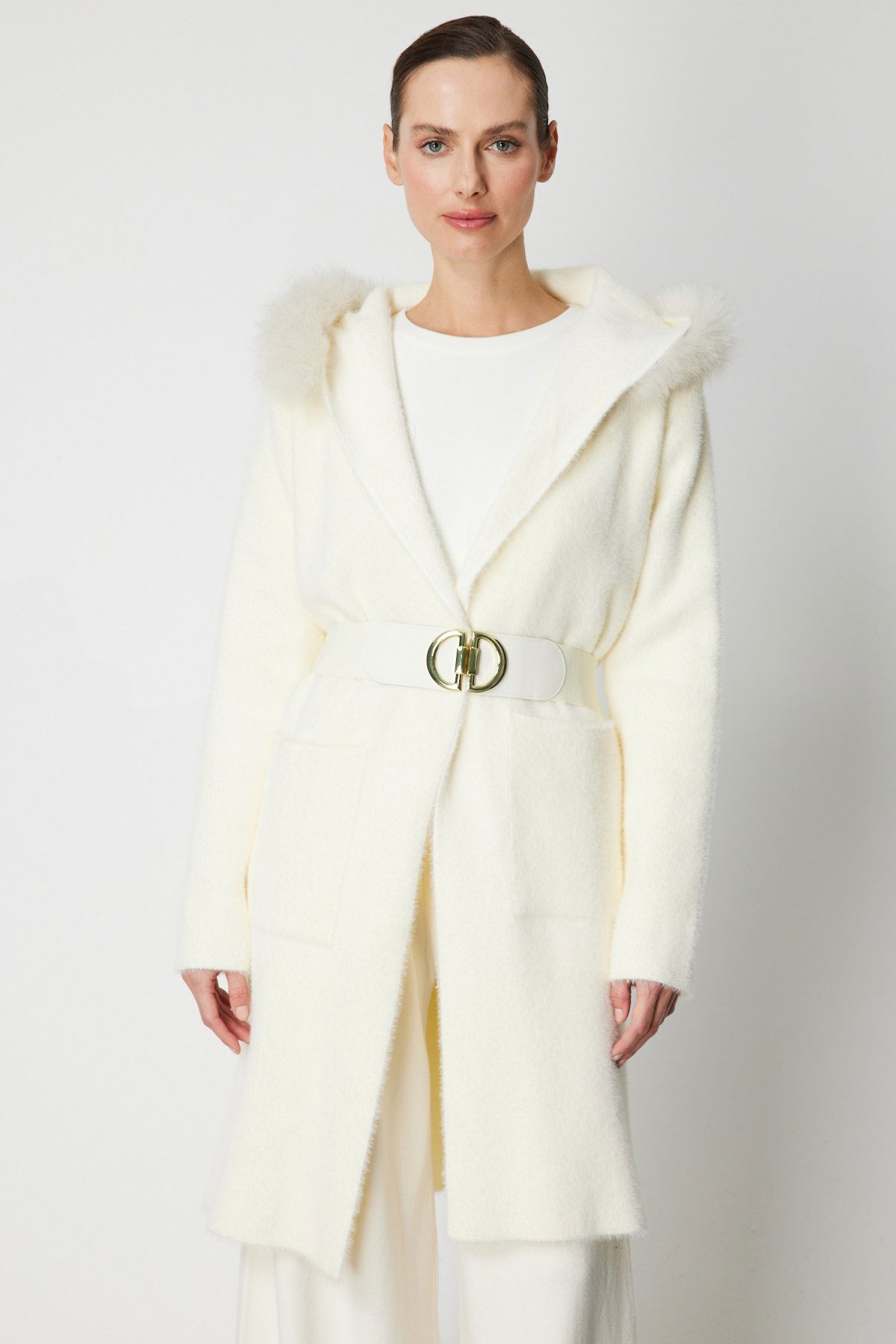 Detay: Yumuşacık peluş dokusuyla sıcaklık ve konforu bir araya getiren bu uzun hırka, çıkarılabilir yaka detayıyla farklı stillere uyum sağlayan çok yönlü bir tasarım sunar. Astarsız yapısı sayesinde hafif bir kullanım sağlarken, uzun kolları ve torba cep detaylarıyla fonksiyonelliği artırır. Kapamasız formu ve beldeki kemer detayıyla vücuda zarif bir siluet kazandıran bu model, soğuk günlerde hem şık hem de rahat bir görünüm arayanlar için ideal bir tercihtir;