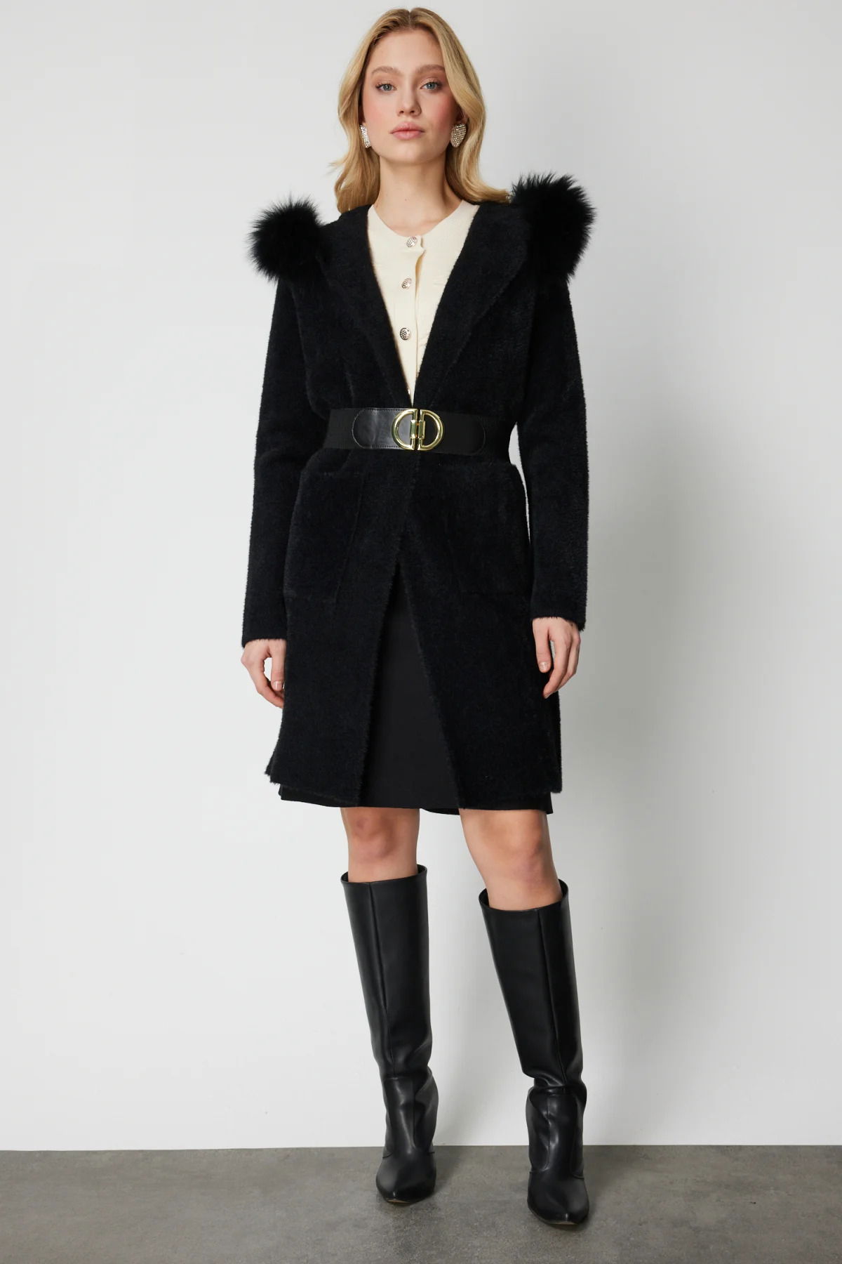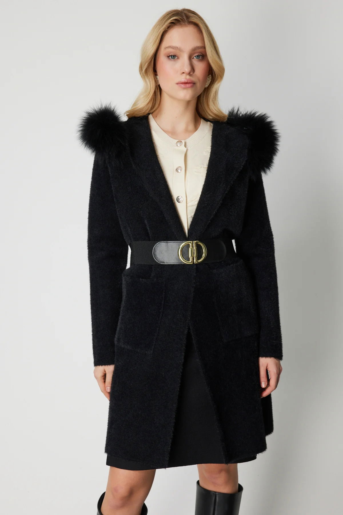 Detay: Yumuşacık peluş dokusuyla sıcaklık ve konforu bir araya getiren bu uzun hırka, çıkarılabilir yaka detayıyla farklı stillere uyum sağlayan çok yönlü bir tasarım sunar. Astarsız yapısı sayesinde hafif bir kullanım sağlarken, uzun kolları ve torba cep detaylarıyla fonksiyonelliği artırır. Kapamasız formu ve beldeki kemer detayıyla vücuda zarif bir siluet kazandıran bu model, soğuk günlerde hem şık hem de rahat bir görünüm arayanlar için ideal bir tercihtir;
