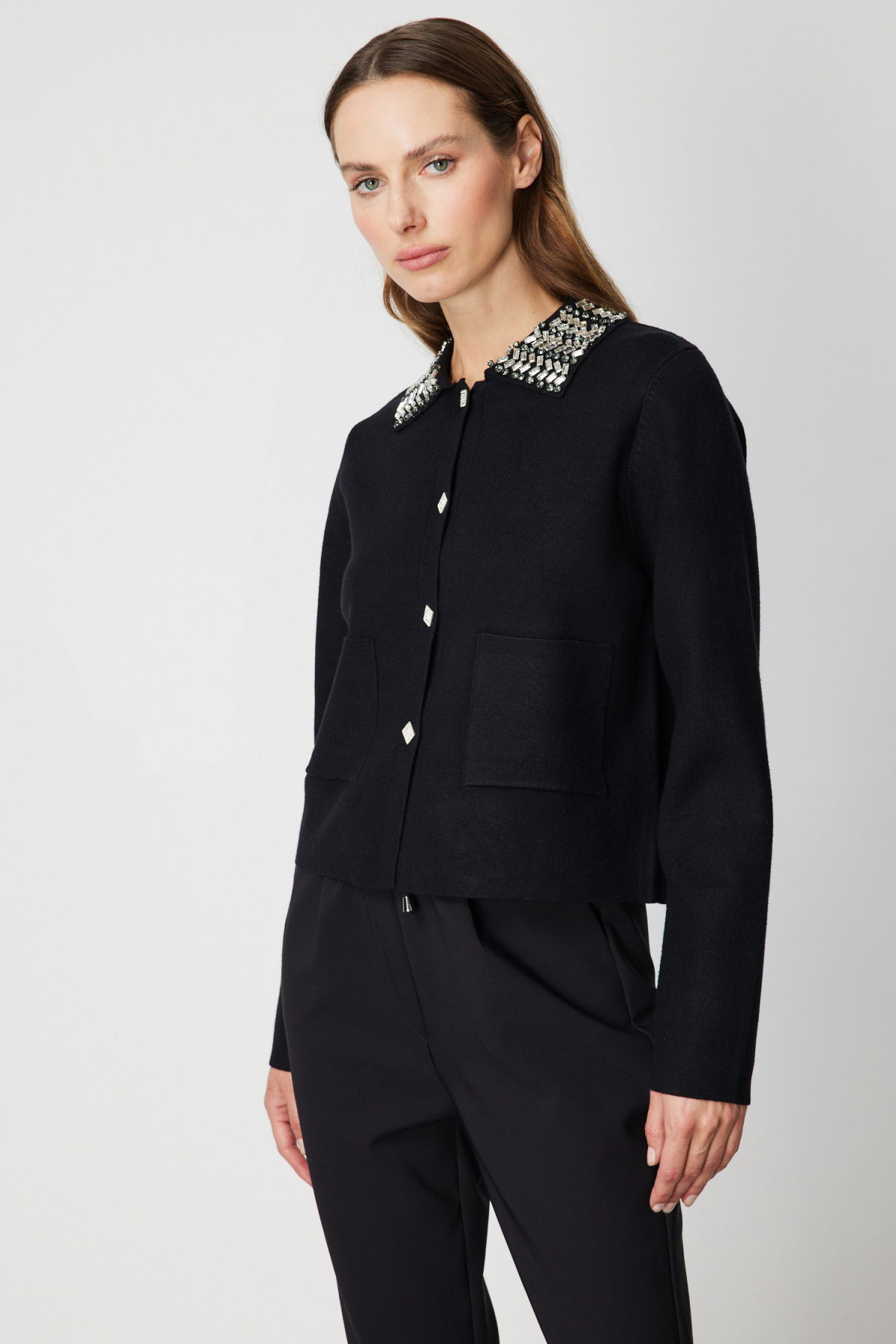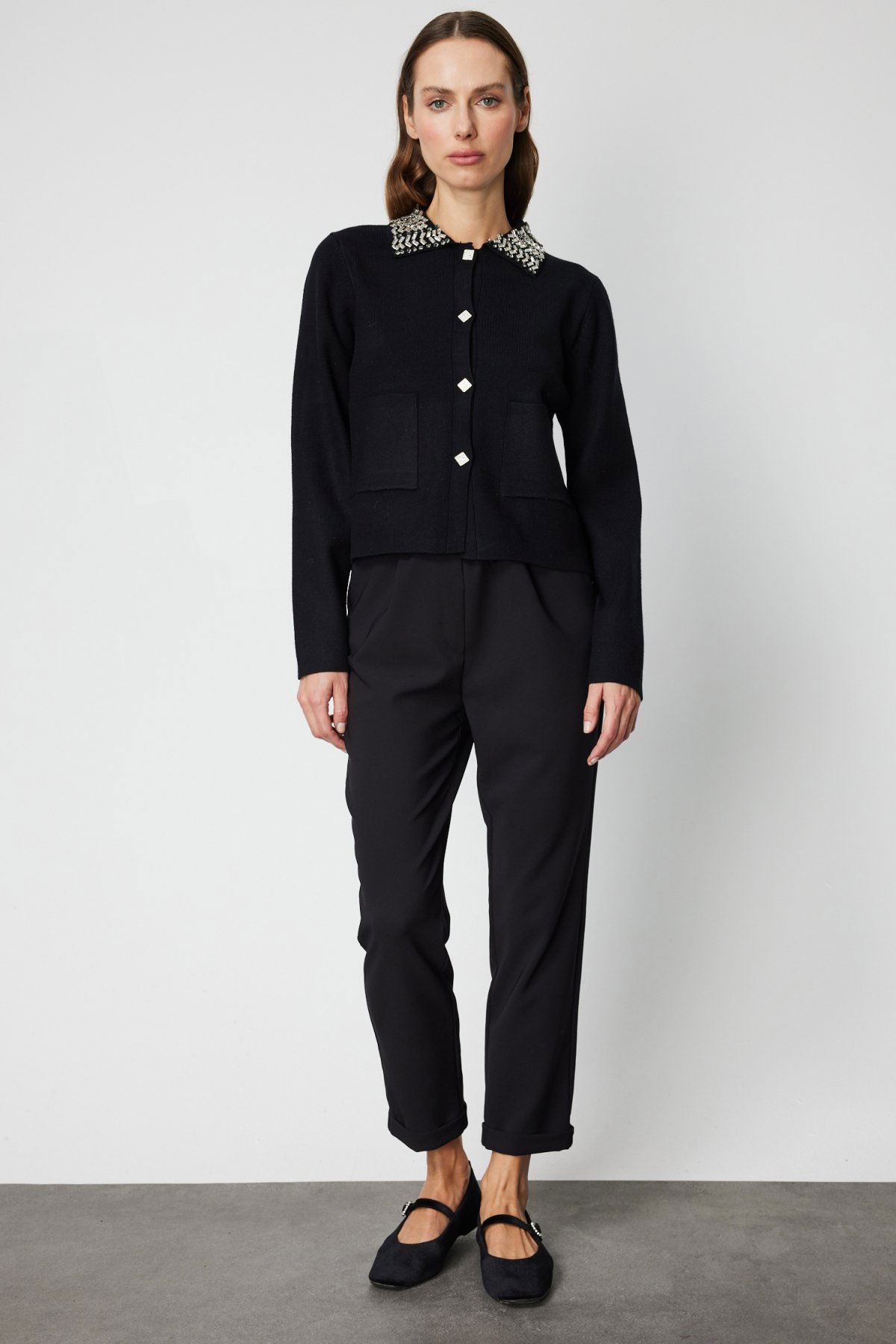 Detay: Gömlek yaka detayıyla klasik bir şıklık sunan bu triko hırka, düğmeli kapama şekli ve torba cep tasarımıyla hem işlevsel hem de stil sahibi bir görünüm kazandırır. Astarsız yapısı ve yumuşak triko kumaşı sayesinde hafif ve konforlu bir kullanım sunarken, uzun kollu formu serin havalarda ideal bir tamamlayıcı olur. Günlükten ofise kadar geniş bir kullanım alanına sahip, zamansız bir gardırop parçasıdır;