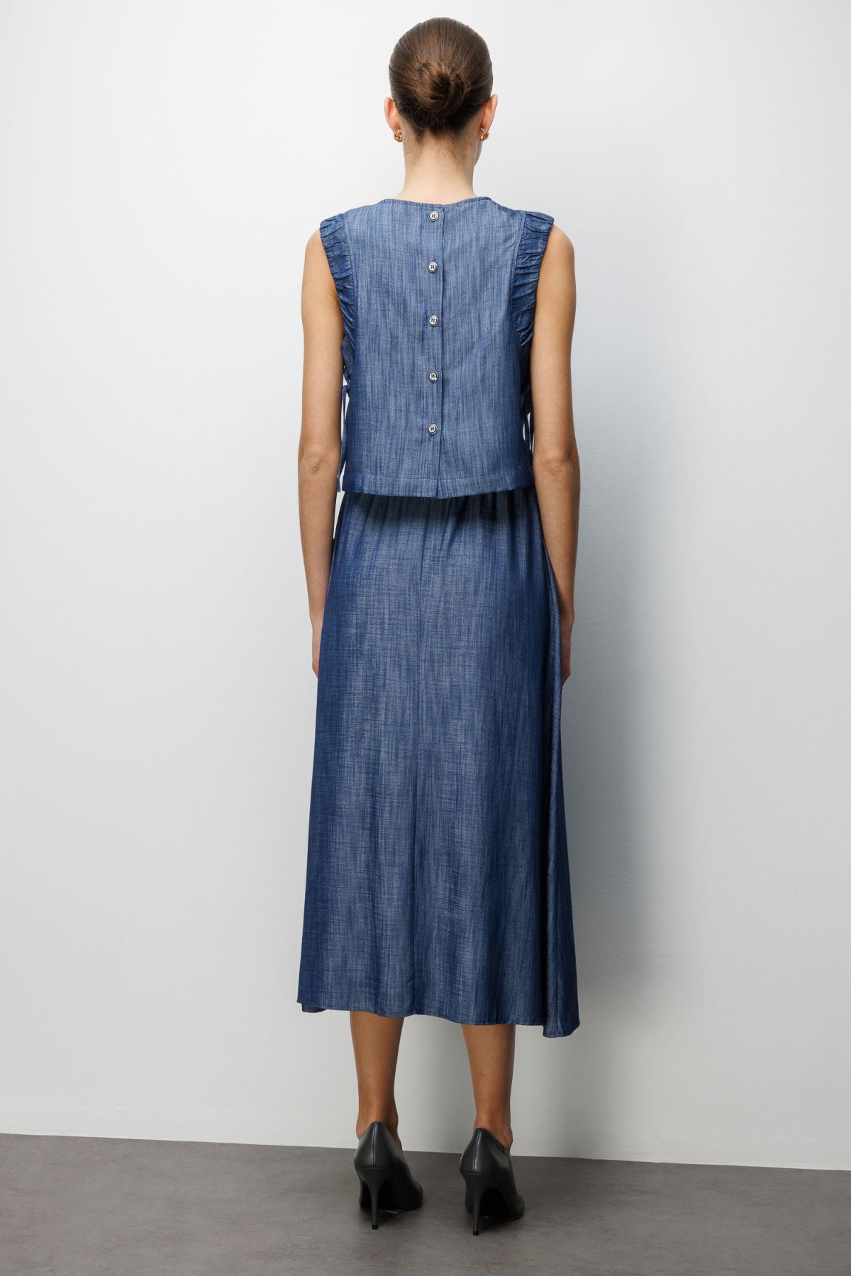 Detay: Dokuma kumaştan üretilen bu bluz, astarlı yapısıyla konforlu bir kullanım sunar. Sıfır yaka detayı modern bir görünüm kazandırırken kolsuz tasarımı özgür hareket imkânı sağlar. Düğmeli kapama şekli ise hem pratiklik hem de şıklık sunarak günlük kombinlerden özel davetlere kadar zarif bir tercih haline getirir;