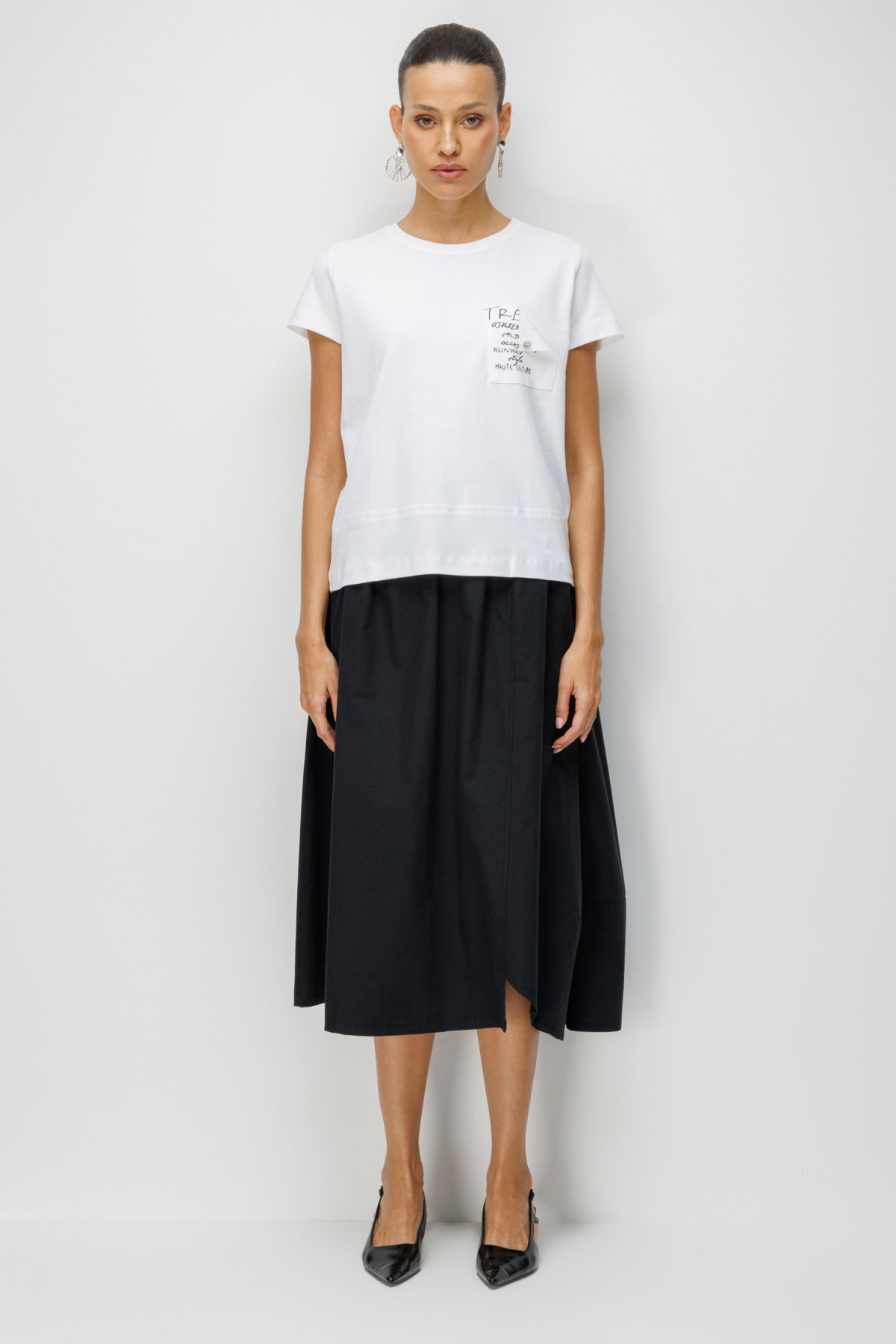 Detay: Dokuma kumaştan üretilen, astarsız, sıfır yaka ve kısa kollu tasarımıyla öne çıkan bu T-shirt sade ve modern bir görünüm sunar. Dayanıklı dokuma kumaş şıklık sağlarken astarsız formu hafiflik ve rahat kullanım imkânı verir. Minimal sıfır yaka detayı ve kısa kollu tasarımıyla günlük kombinlerde hem pratik hem de zarif bir tercih olarak dikkat çeker;