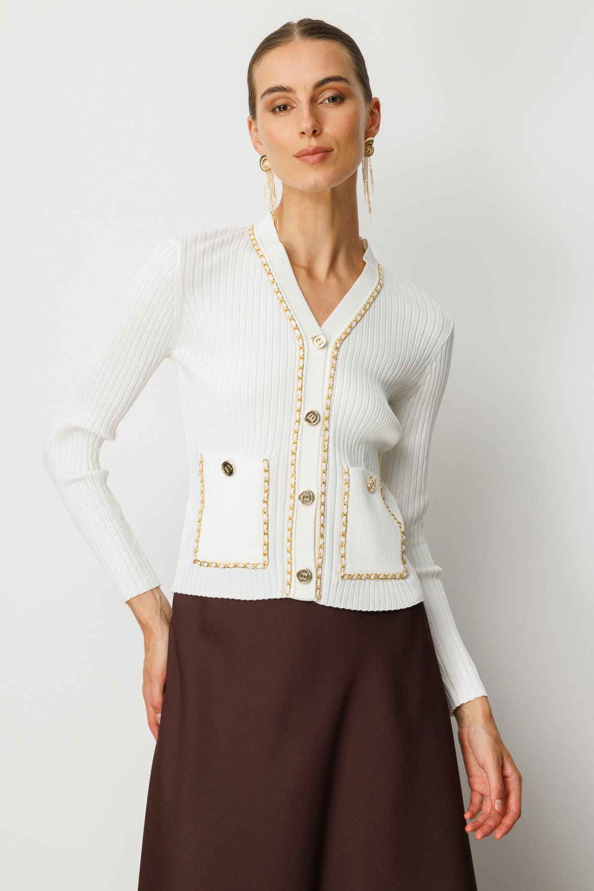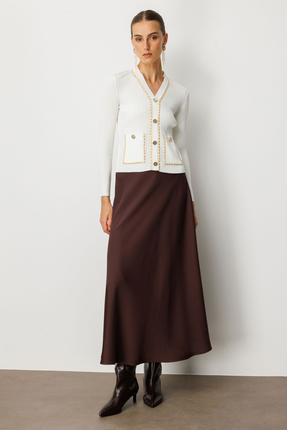 Detay: Astarsız triko kumaştan üretilen uzun kollu V yaka hırka, düğmeli kol detayıyla klasik şıklığı modern dokunuşlarla buluşturur. Torba cepli tasarımı sayesinde hem fonksiyonel hem de stil sahibi bir görünüm sunar. Mevsim geçişlerinde rahatlıkla kullanılabilen bu hırka, günlük kombinlerin vazgeçilmez parçası haline gelir;