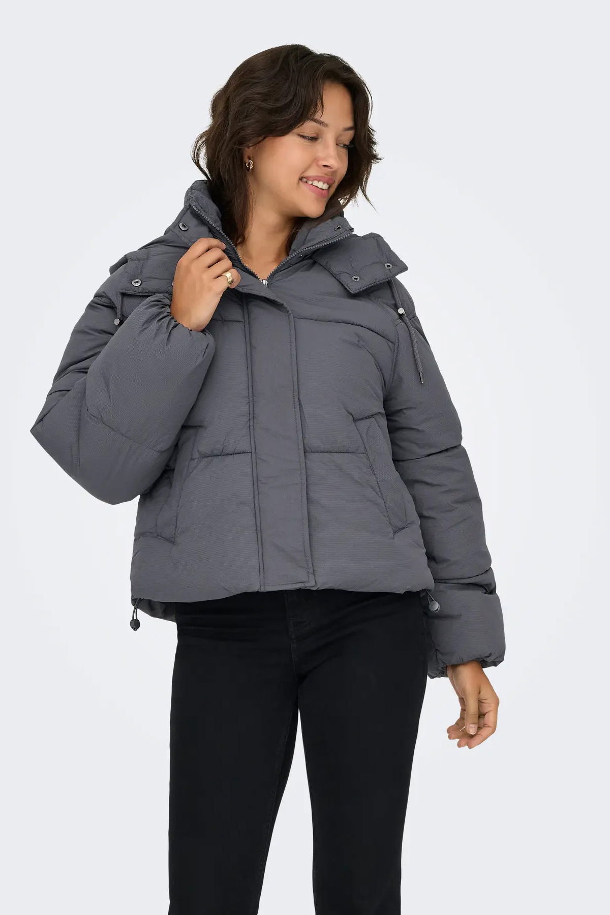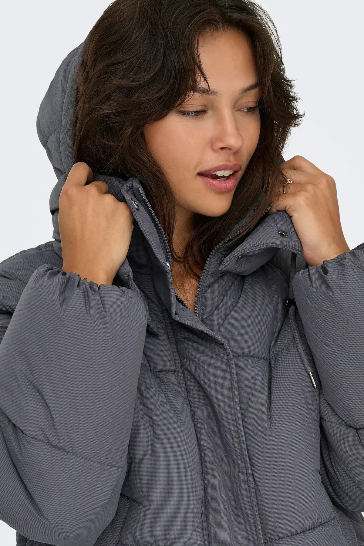 Only Kadın Kapüşonlu Çift Cepli Şişme Mont 15322013 Gri