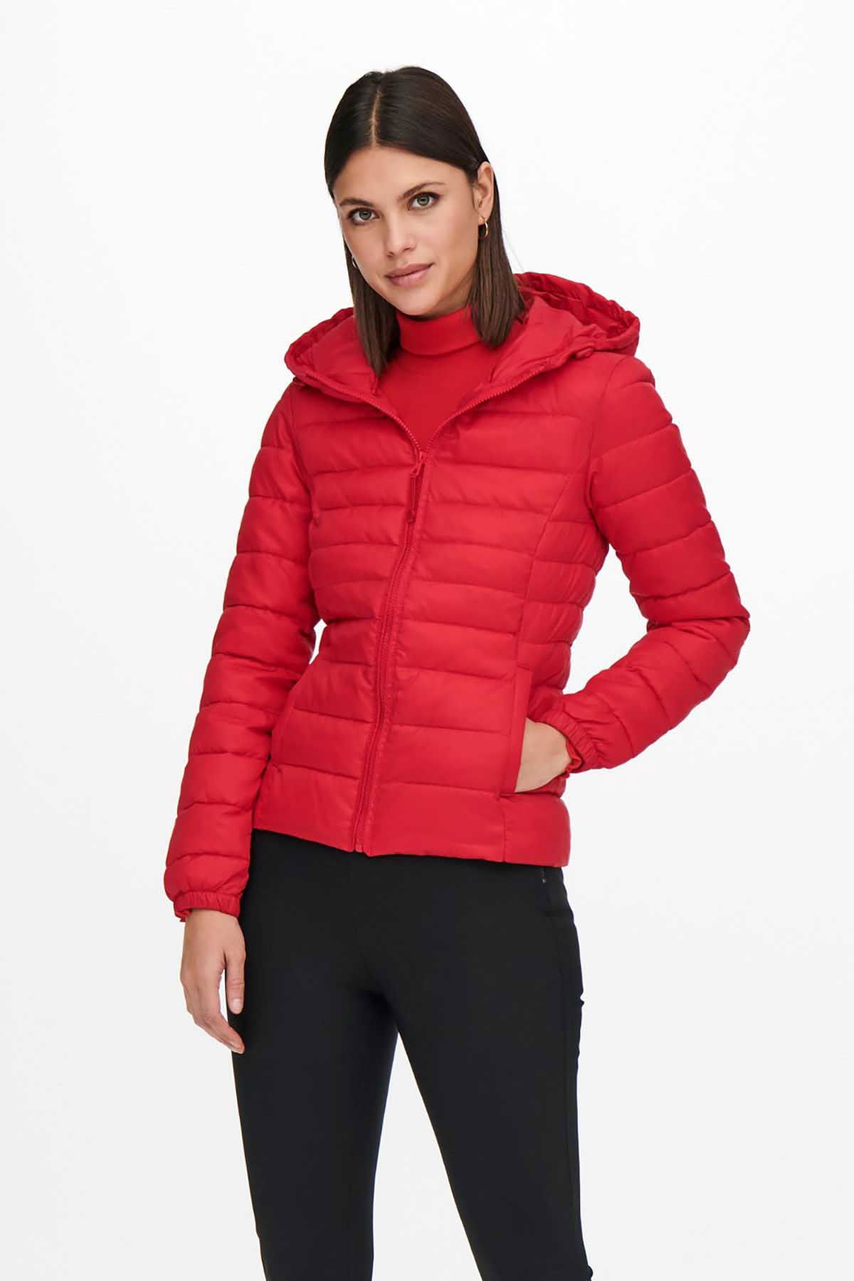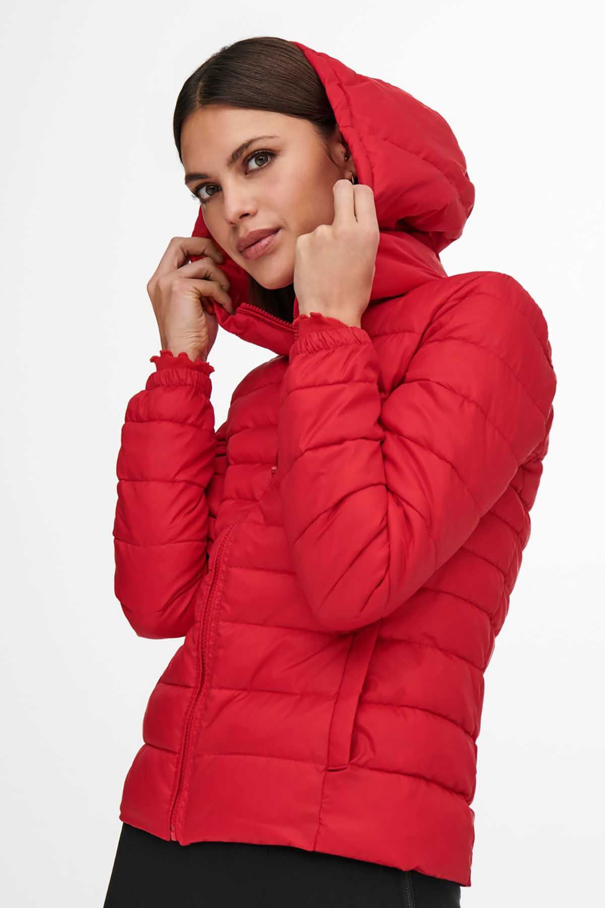 Detay: Kapüşonlu, fermuarlı kısa mont;