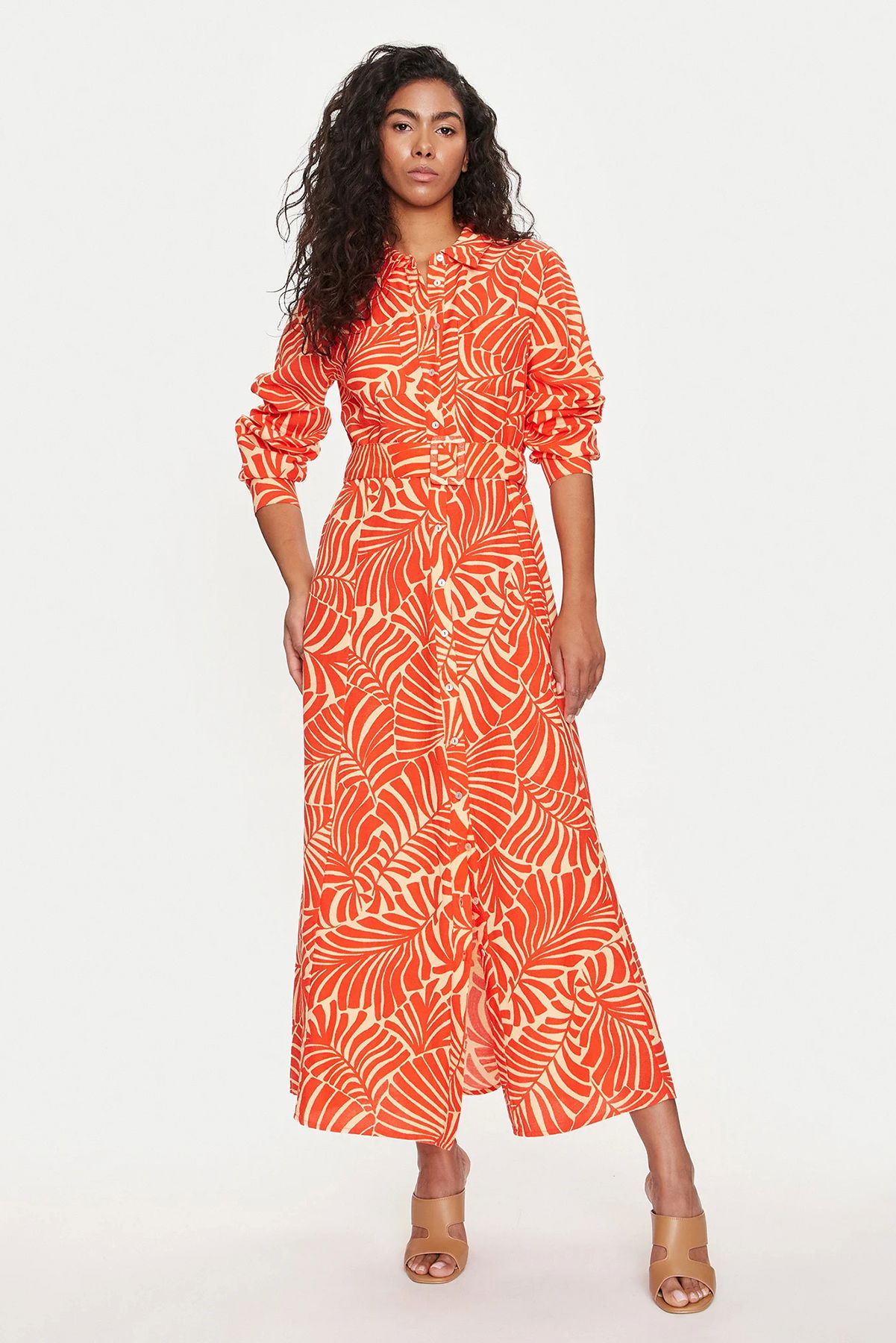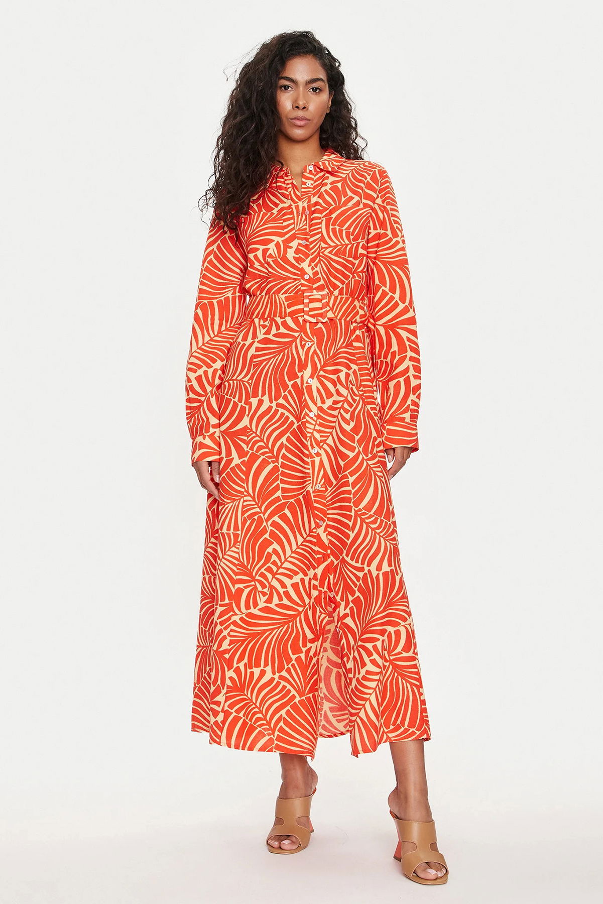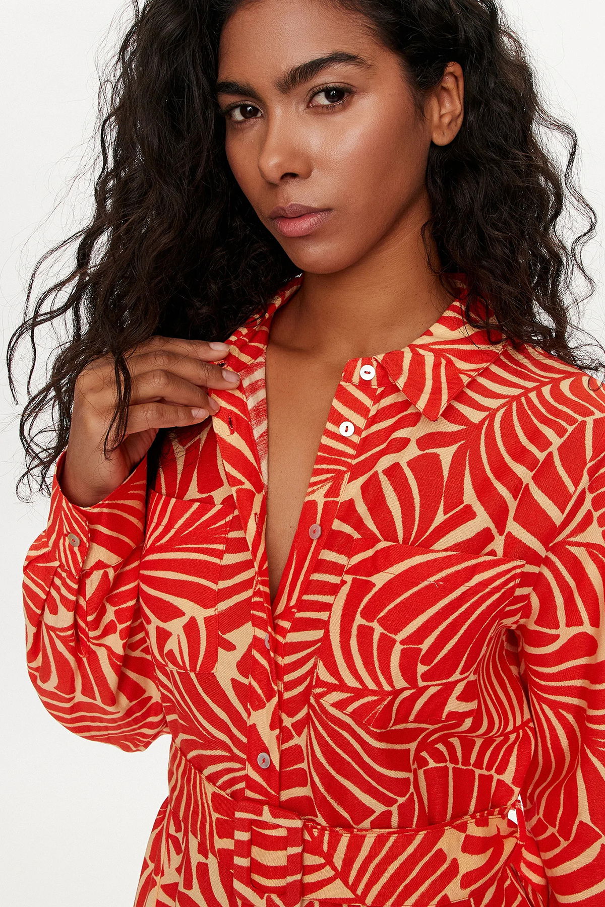 Detay: Desenli, uzun kollu, gömlek yaka elbise ;