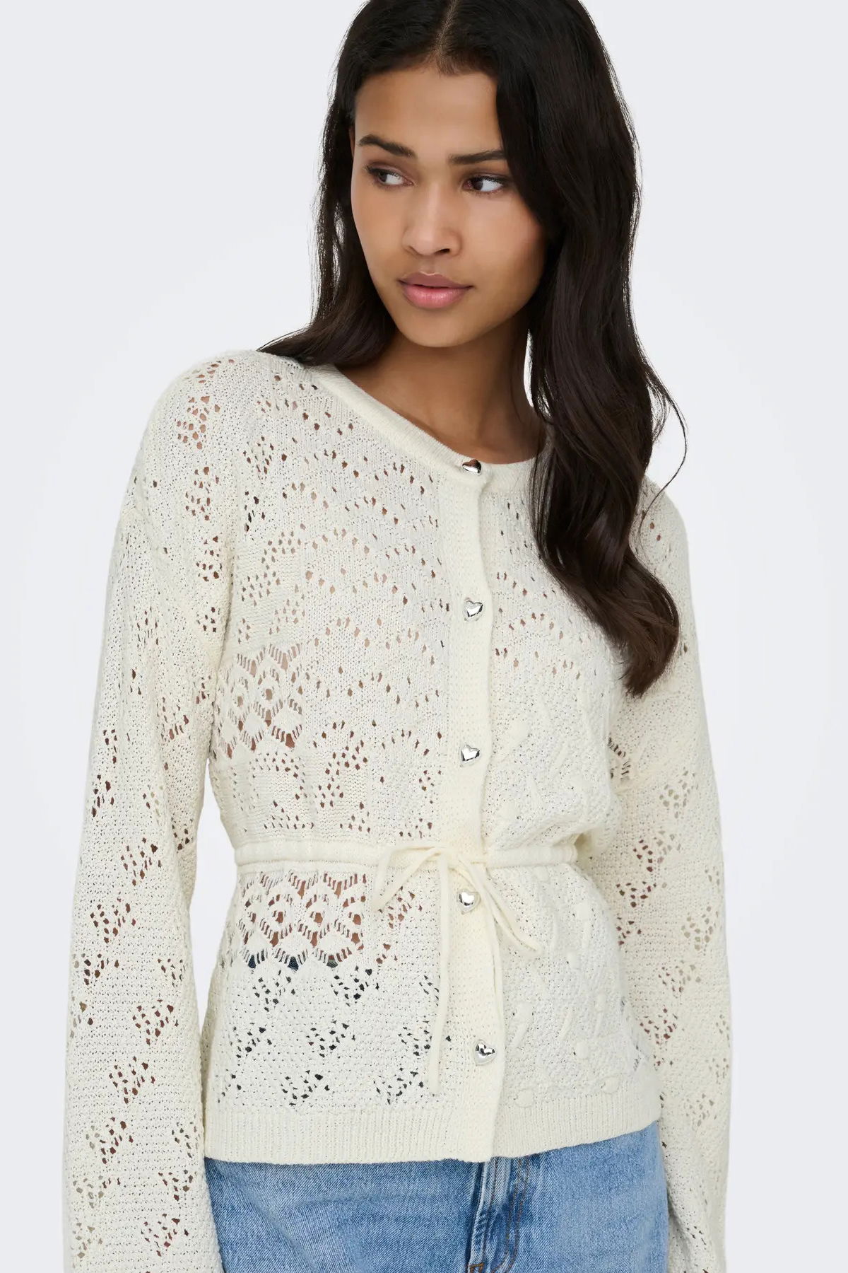 Detay: Triko kumaştan üretilen bu hırka modeli, bisiklet yaka tasarımıyla sade ve modern bir görünüm sunar. Uzun kollu yapısı soğuk havalarda konfor sağlarken, metalik renkte kalp şeklindeki düğmeleri romantik ve dikkat çekici bir detay oluşturur. Belden bağlamalı tasarımı ise hem şıklığı hem de vücuda uyumlu bir duruşu bir arada sunarak günlük kombinlere zarif bir dokunuş katar;