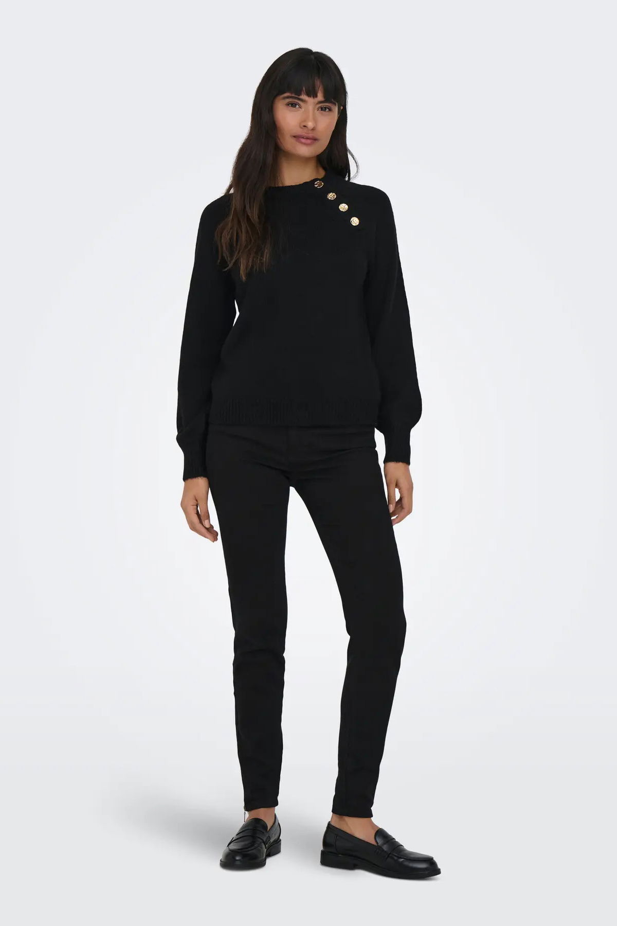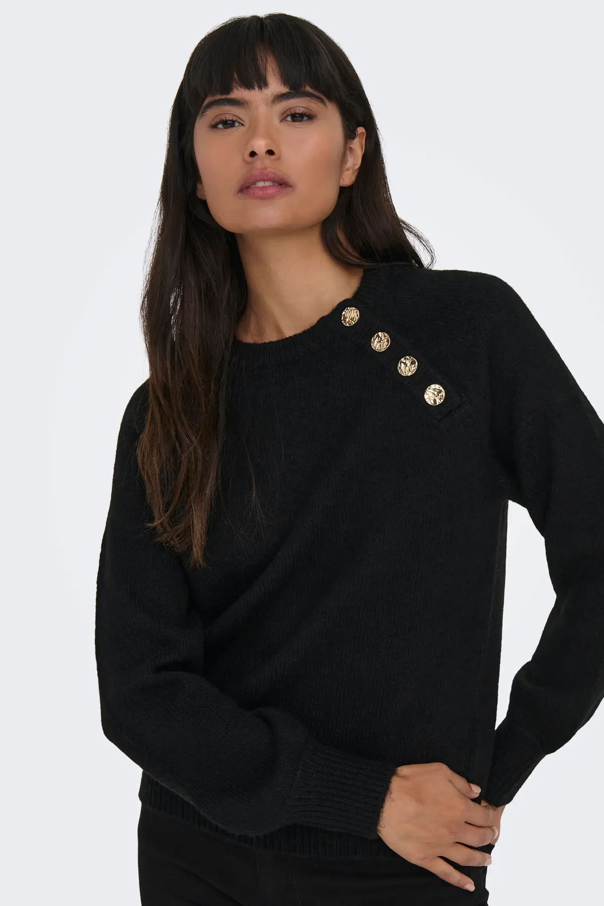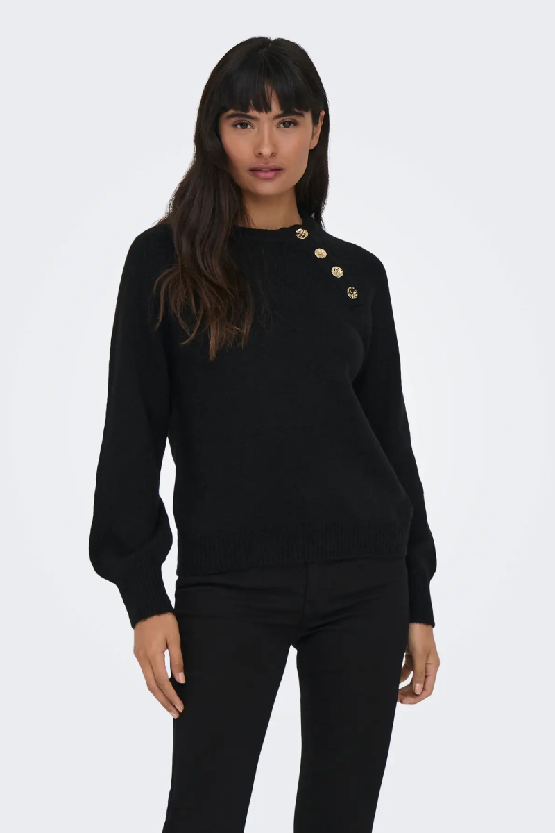 Only Kadın Onlemma Omuzdan Düğme Kapamalı Örme Kazak 15302253 Siyah