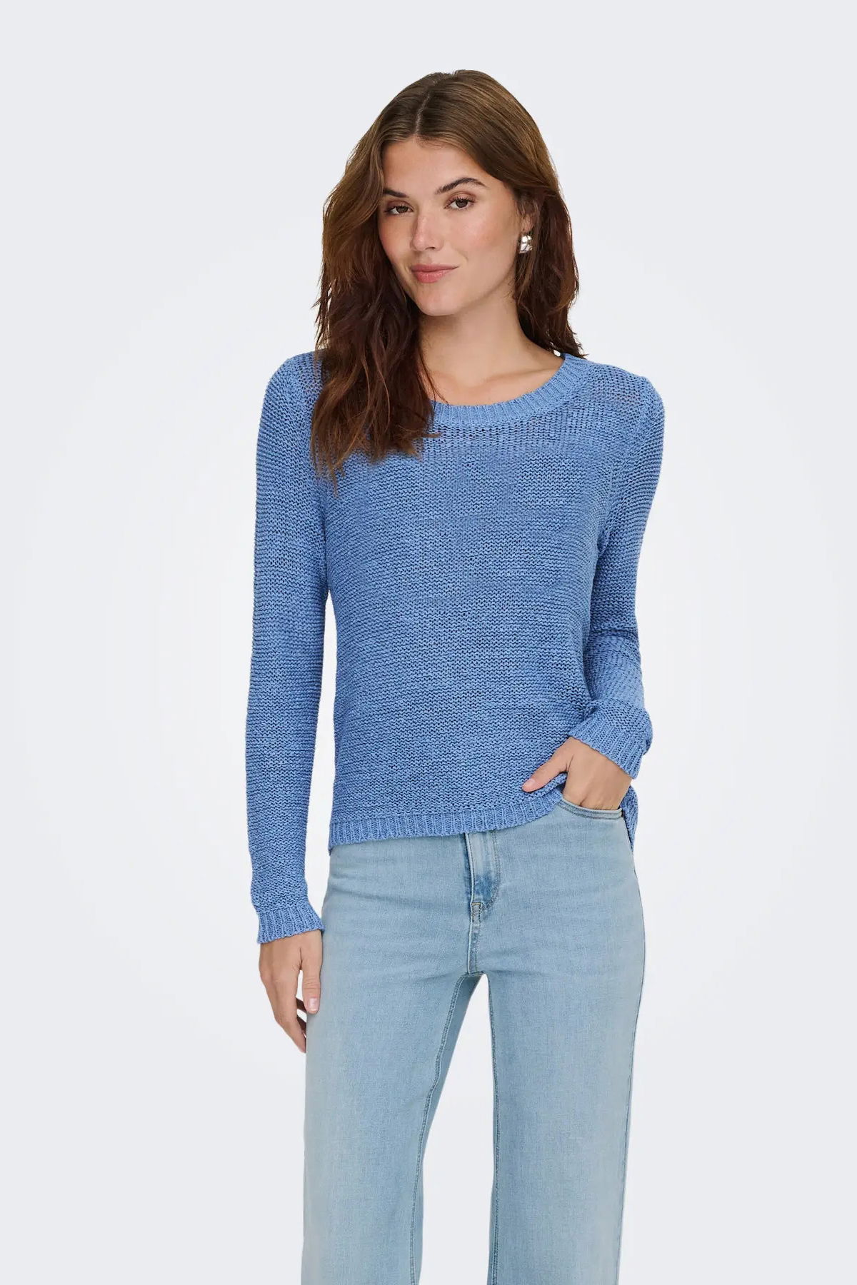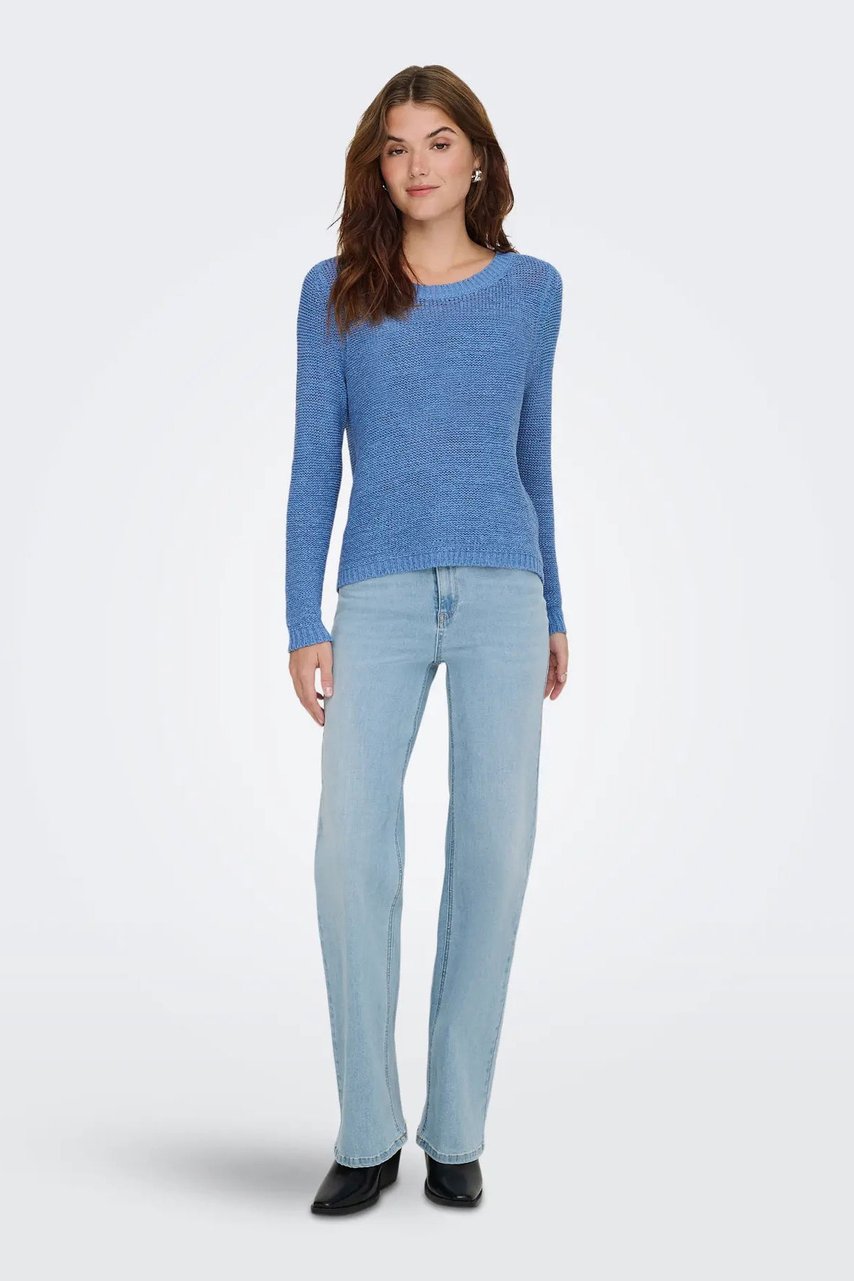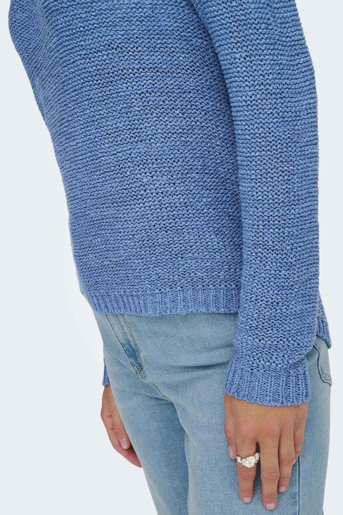 Detay: Uzun kollu, O yaka, örme kazak;