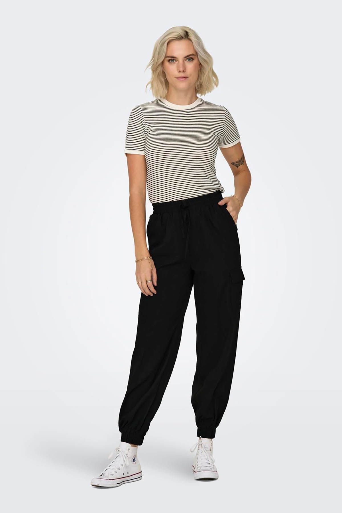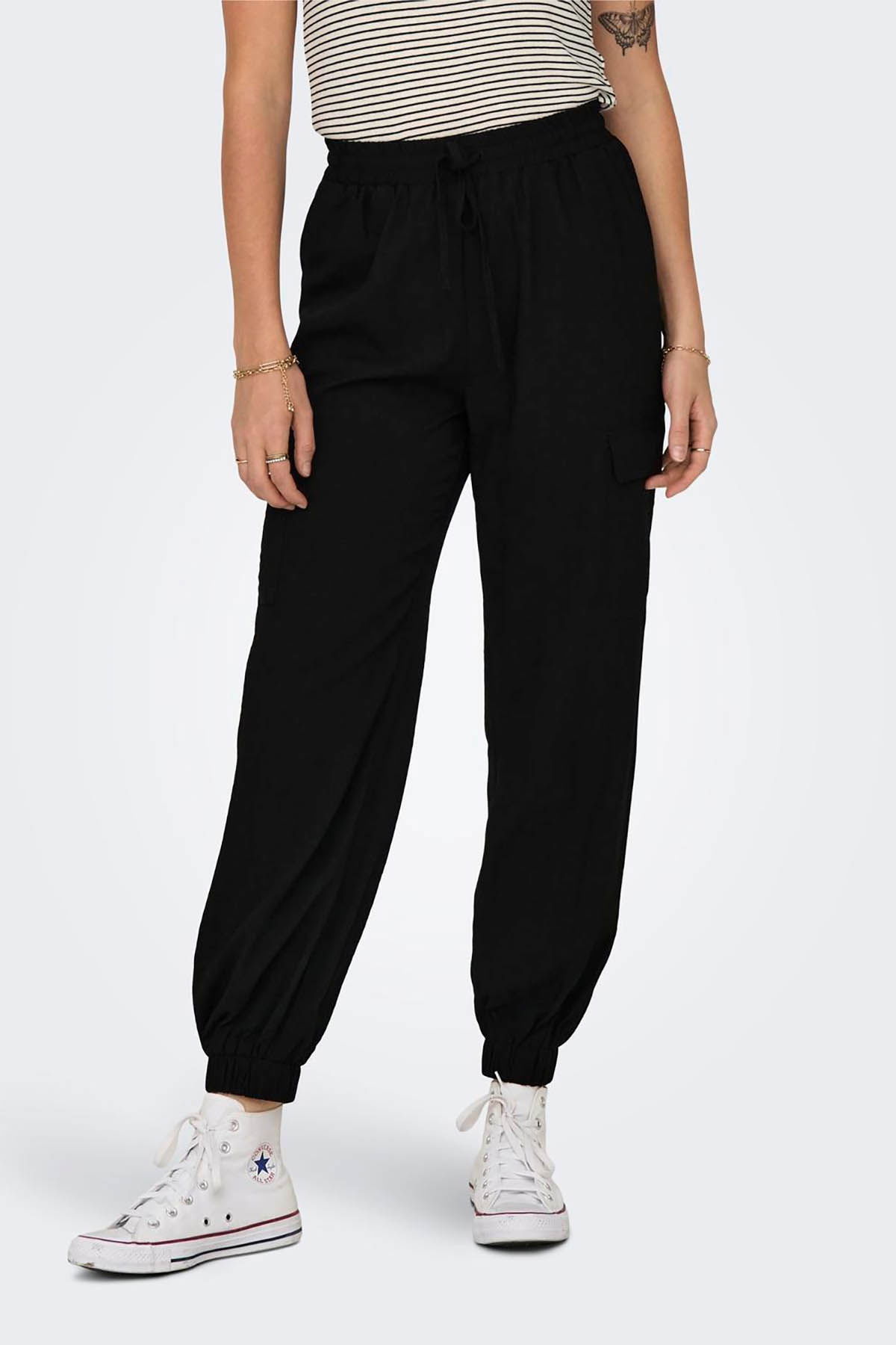 Detay: Paçaları lastikli, normal bel, kargo pantolon;