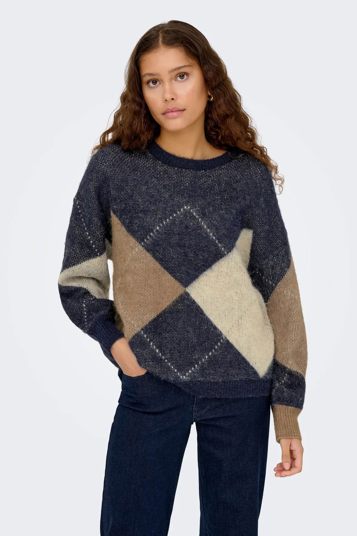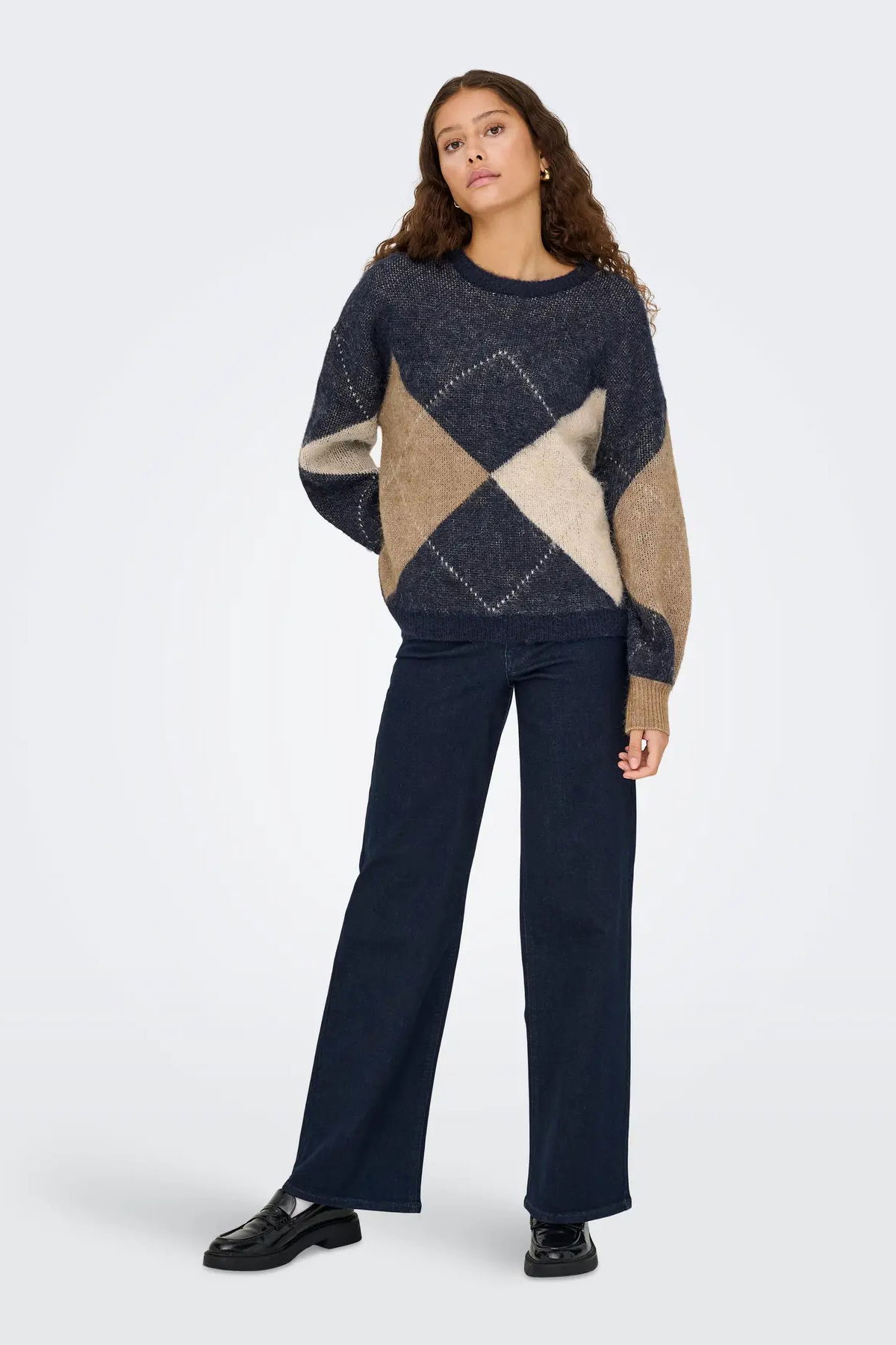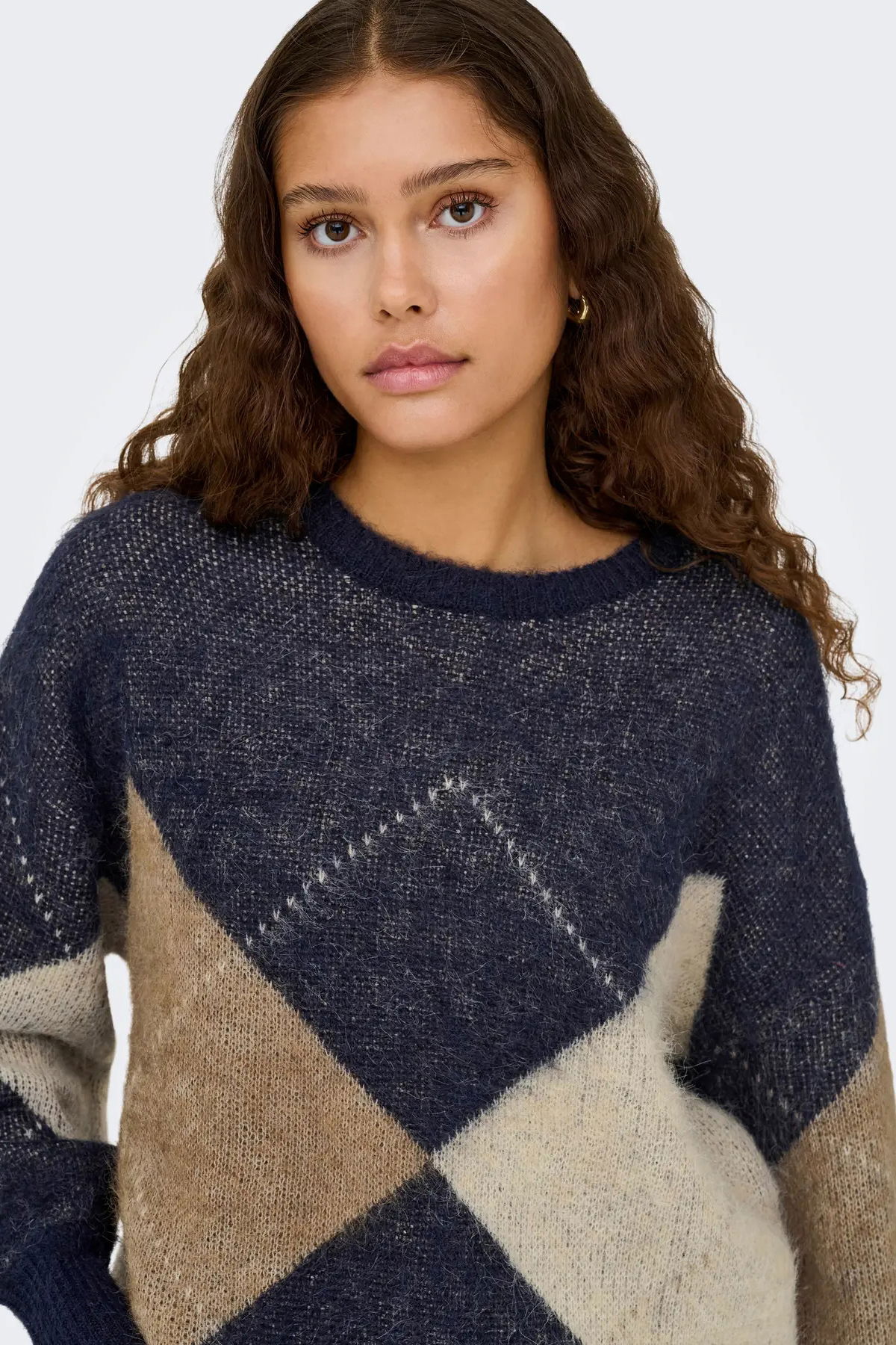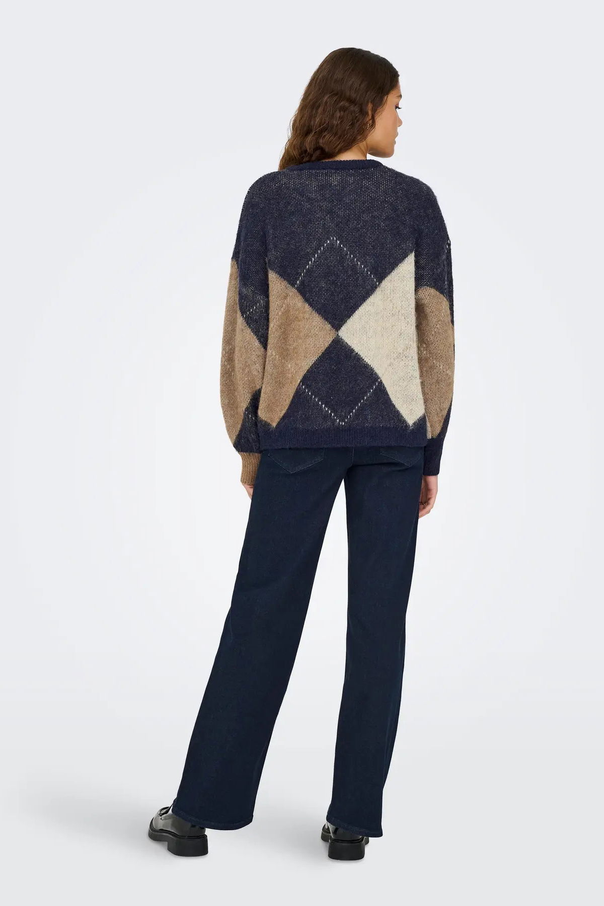 Only Kadın Onlnoeme Desenli Bisiklet Yaka Yünlü Kazak 15353226 Krem