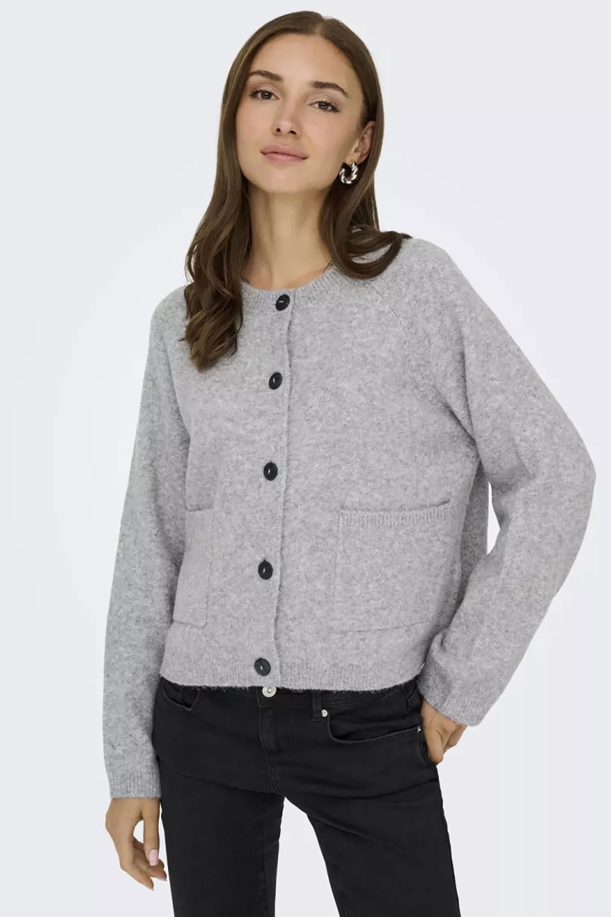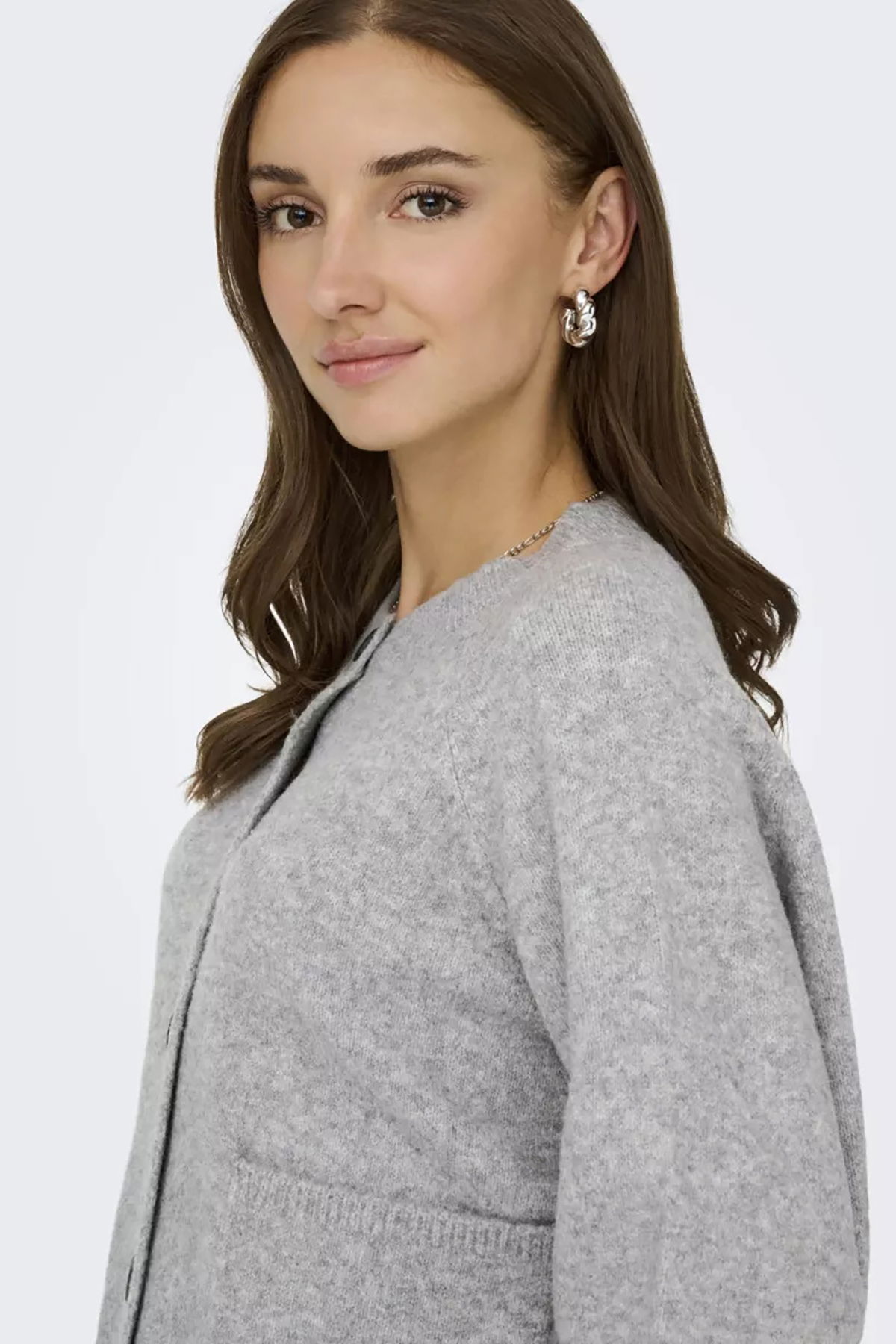 Only Kadın Onlpıemonte Sıfır Yaka Torba Cepli Yünlü Hırka 15344118 Açık Gri